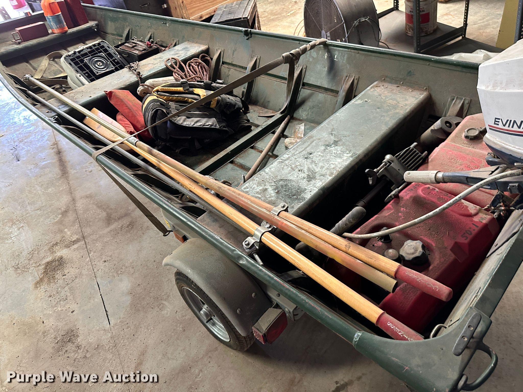 Boat. Length: 13' 10", Hull ID: KA1064GMA. Engine Engine type: Outboard, Evinrude, Cylinders: 2, Fuel type: Gas. Trailer 2008 Bear Trailers , VIN: 41YEB161481033635, Overall length: 15', Overall width: 56", Ball hitch size: 2", Axles: Single, Tire size: 4.80-12. Notes Unknown operating condition. Transfer of ownership documentation will be a bill of sale. Montgomery County Sheriff Department. Independence, KS 67301