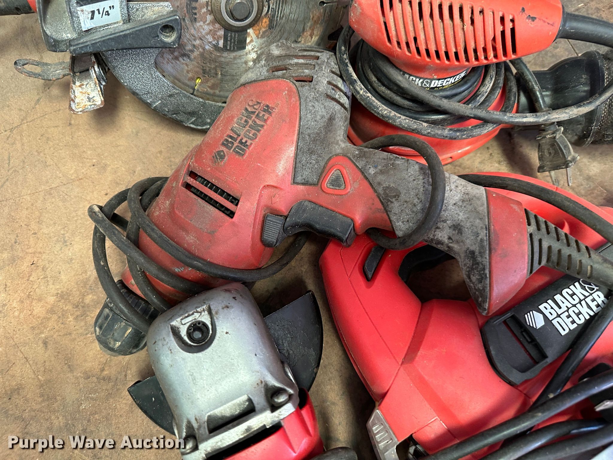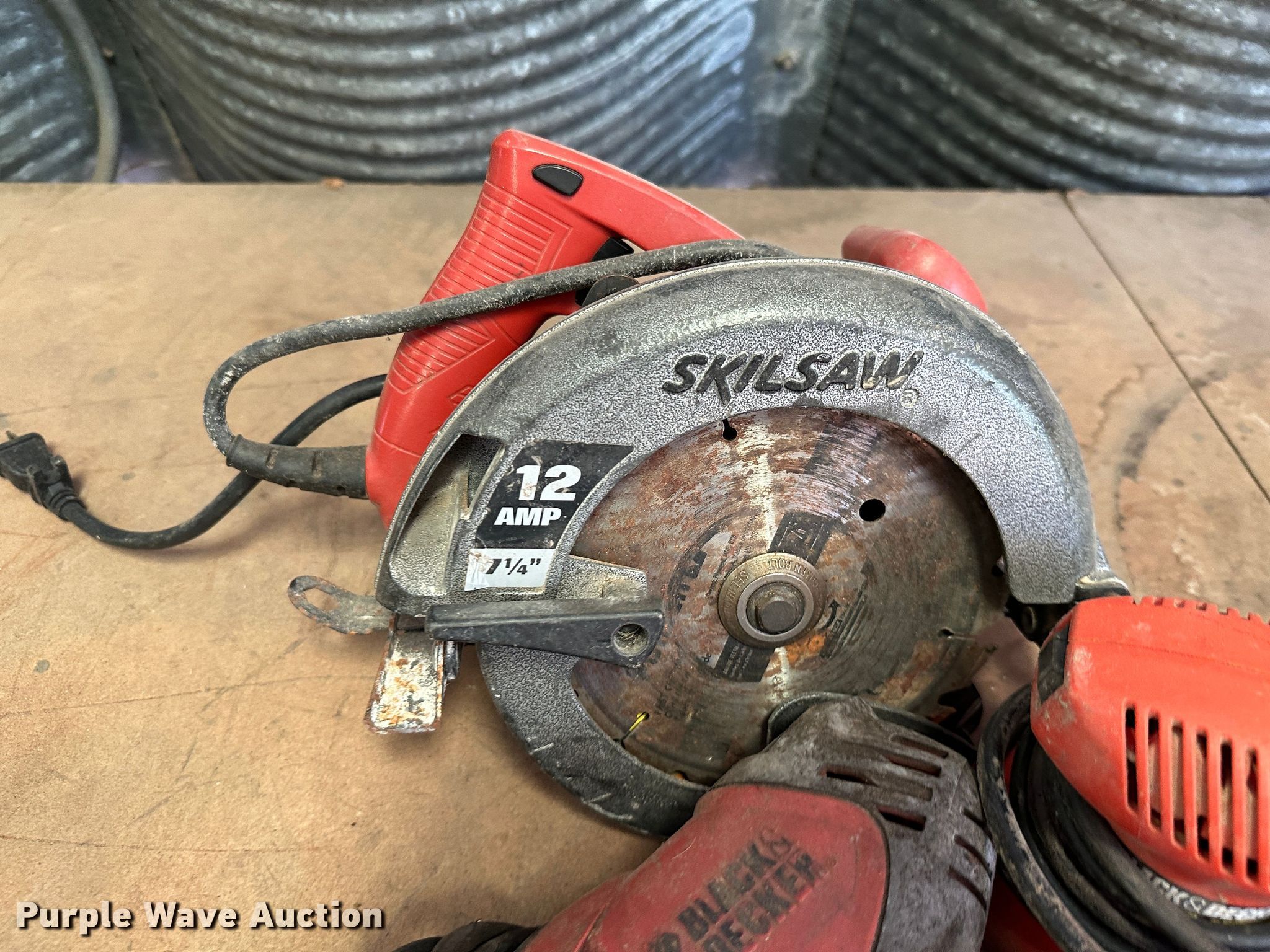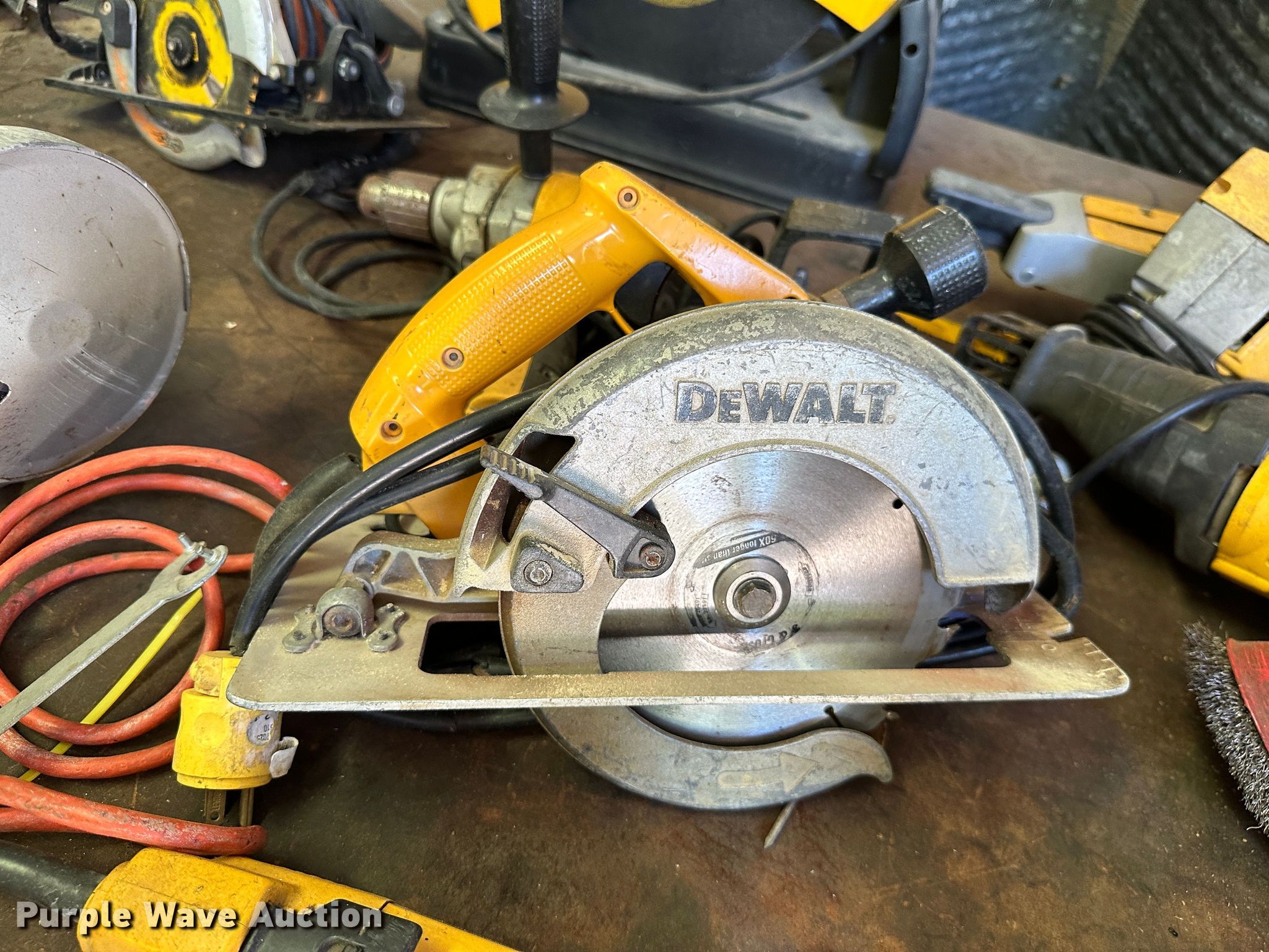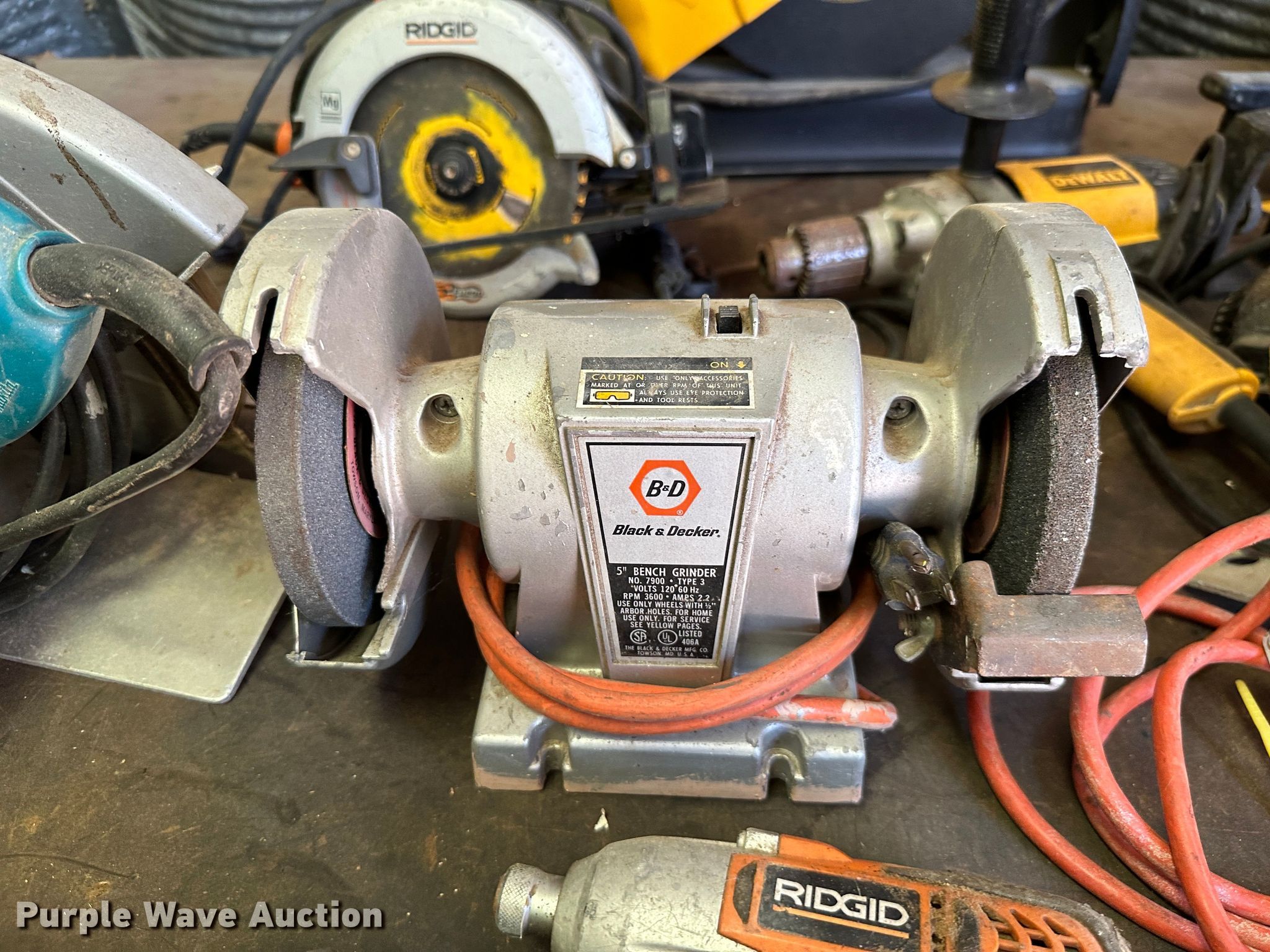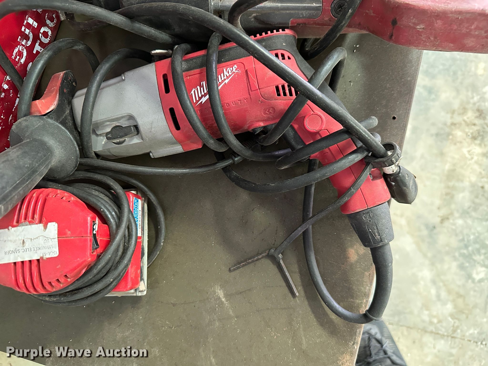 Purple Wave is selling a used Tools in Kansas. This item is a Tools with the following: Milwaukee Sawzall, Milwaukee hammer drill, (2) Milwaukee electric sander, Milwaukee drill, Craftsmen 9 in buffer, Craftsman grinder, Craftsman drill, Craftsman 19.2V saw, Craftsman impact drill, (3) Black and Decker electric drill, Skilsaw reciprocating saw, (2) Skilsaw circular saw, (2) Black and Decker electric sander, Black and Decker impact drill, Black and Decker grinder, Black and Decker 5" bench grinder, (2) Ridgid impact drill, (2) Ridgid electric sander, Makita circular saw, Ridgid reciprocating saw, (2) Dewalt circular saw, Dewalt electric drill, (2) Dewalt grinder, Dewalt miter saw, Dewalt reciprocating saw, Dewalt electric sander, Dewalt hammer drill, Batteries, Chargers, Table, Workbench not included
