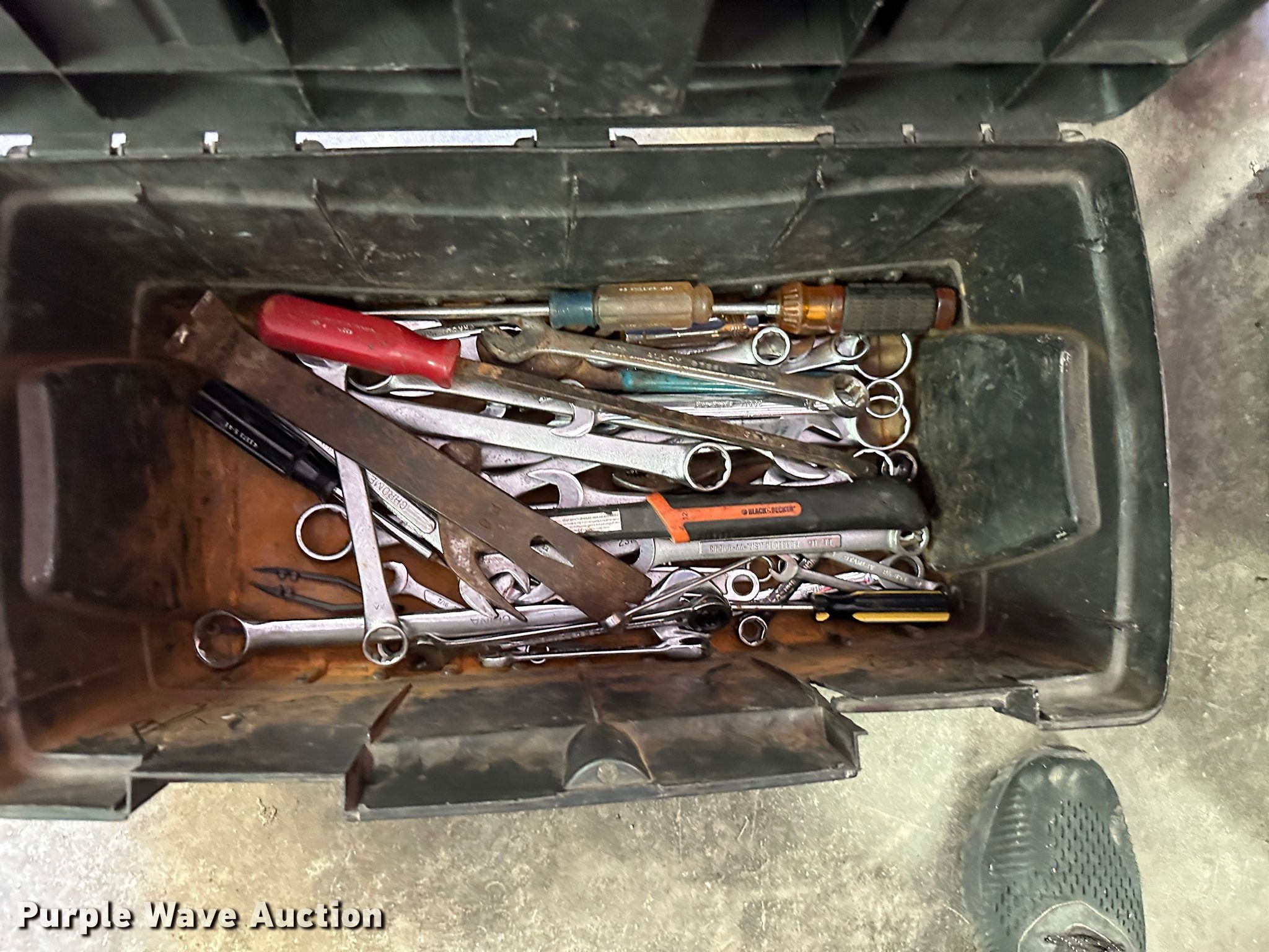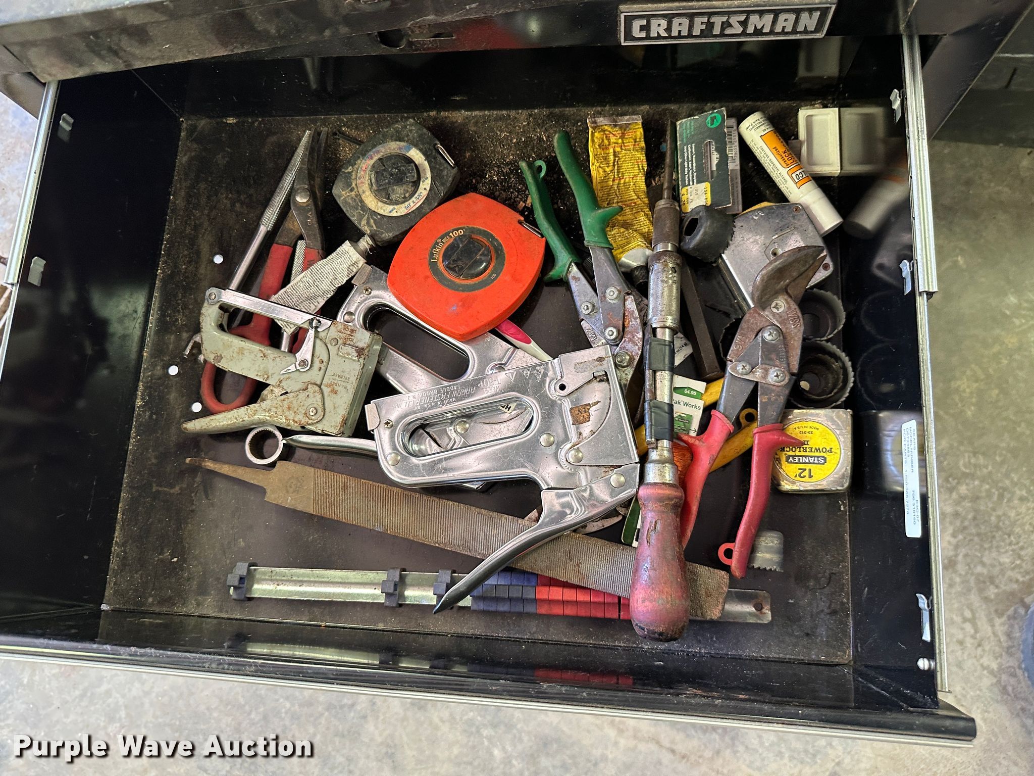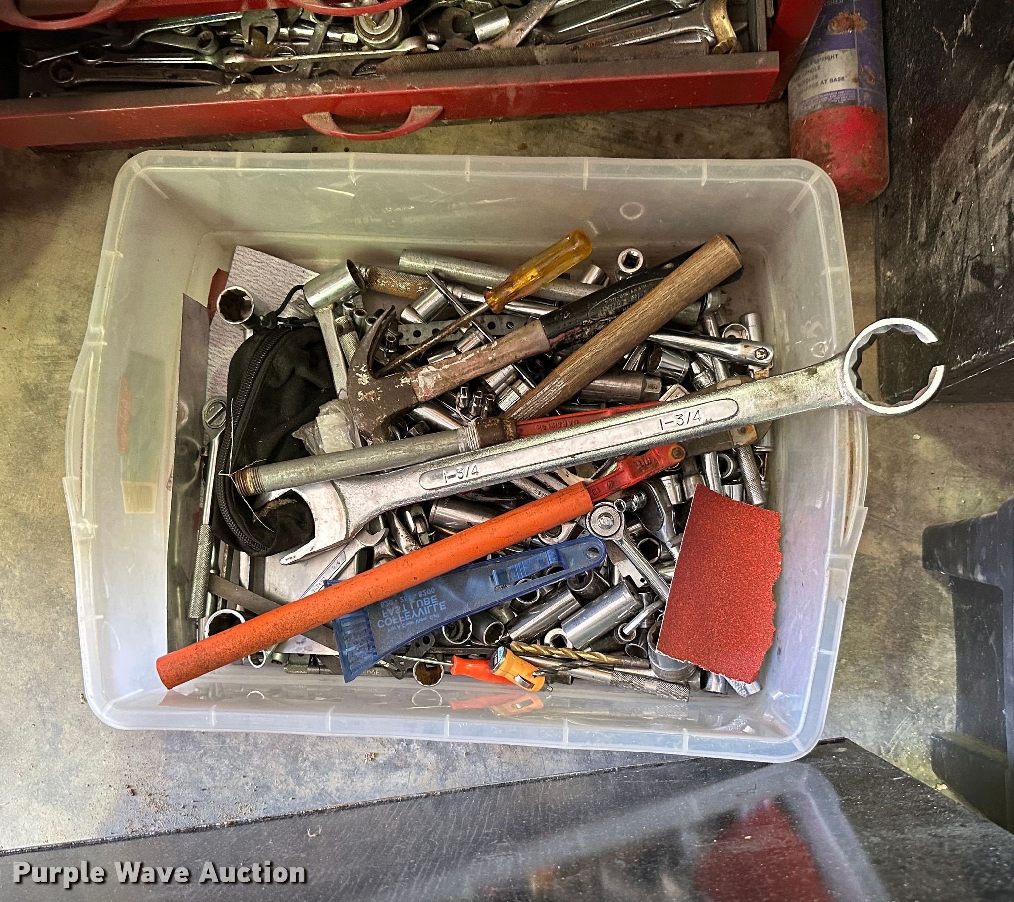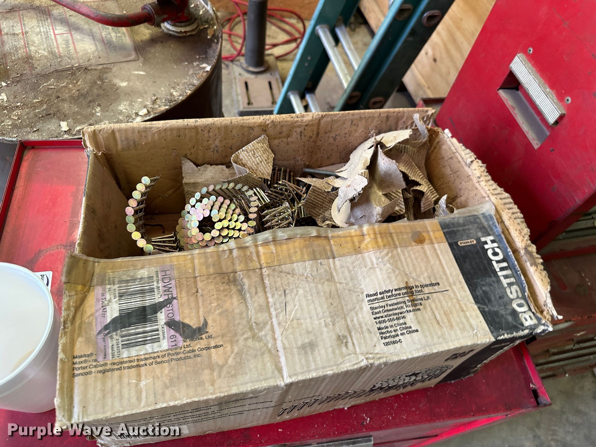 Purple Wave is selling a used Tools in Kansas. This item is a (9) toolboxes with the following: Tools, 55 gallon drum with pump