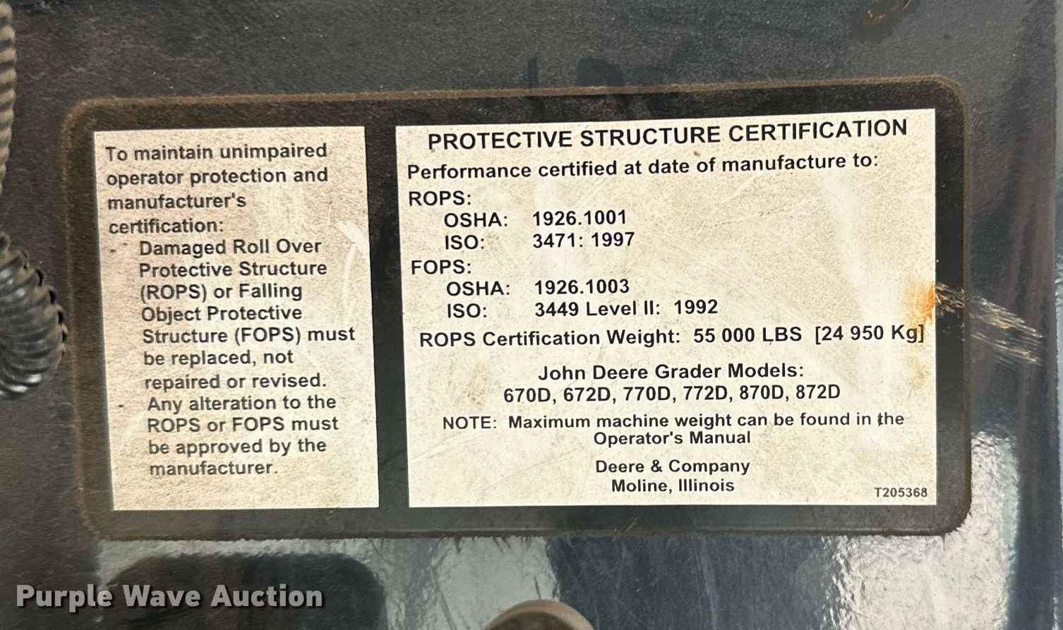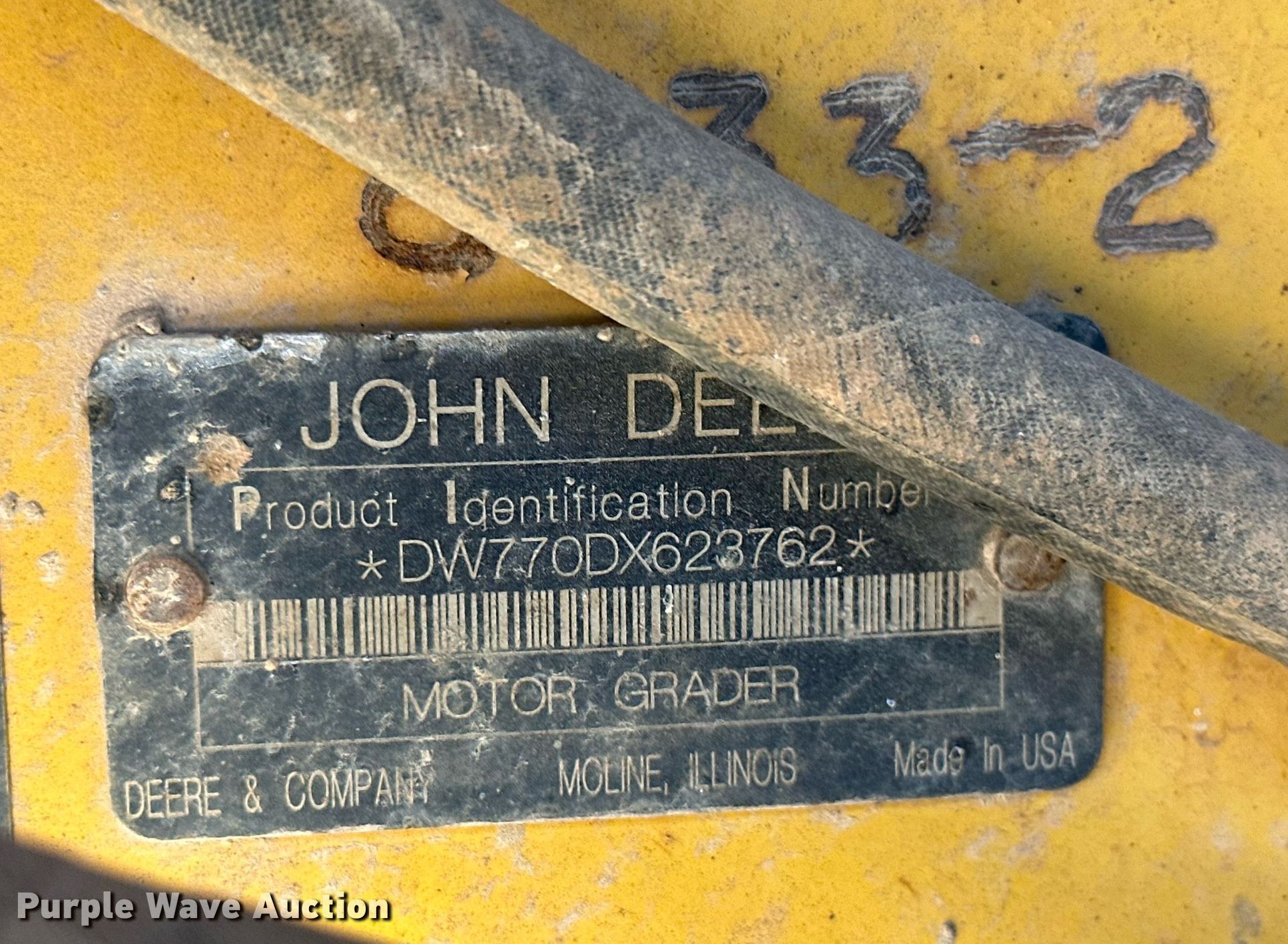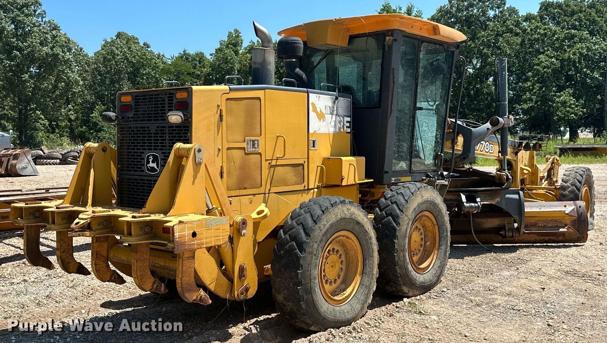 Purple Wave is selling a used Motor Grader in Oklahoma. This item is a 2009 John Deere 770D motor grader with the following: Hours: Unknown, Serial: DW770DX623762