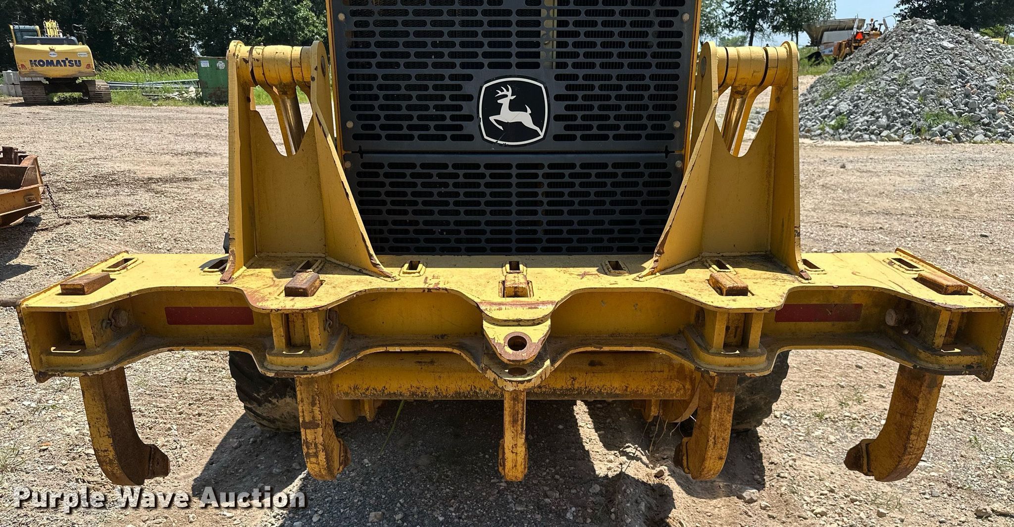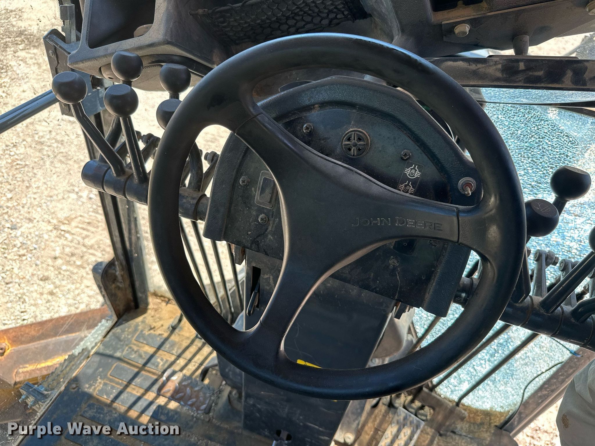2009 John Deere 770D motor grader. Hours: Unknown, Serial: DW770DX623762. Engine Cylinders: 6, Fuel type: Diesel. Transmission Powershift, 8F - 8R. Operators station EROPS, Hydraulic control valves: 10. Features Moldboard: Side shift, Scarifier Scarifier type: Front-mounted, Rear ripper Scarifier teeth: 5. Tires Size: 14.00R24. Notes Glass cracked, Non-operational unit. Delaware County Dist. #3. Kansas, OK 74347