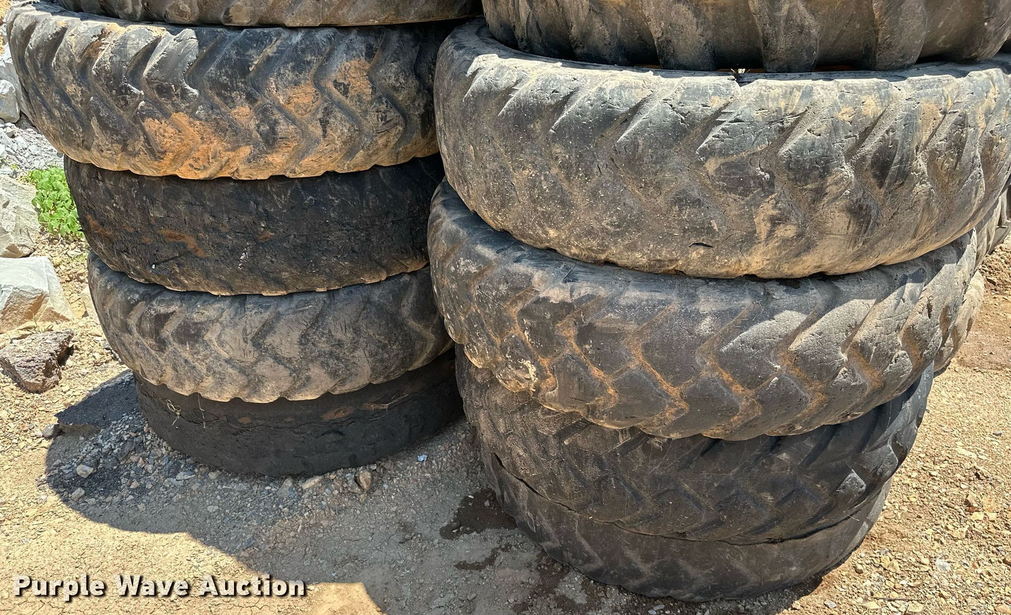 Purple Wave is selling a used Industrial Tires or Tracks in Oklahoma. This item is a Wheels and tires with the following: (11) 14.00R24 tires, (11) 14.00R24 wheels and tires, 24" wheel, 22.5" wheel, (4) 11R22.5 wheels and tires, (4) 285/75R24.5 wheels and tires