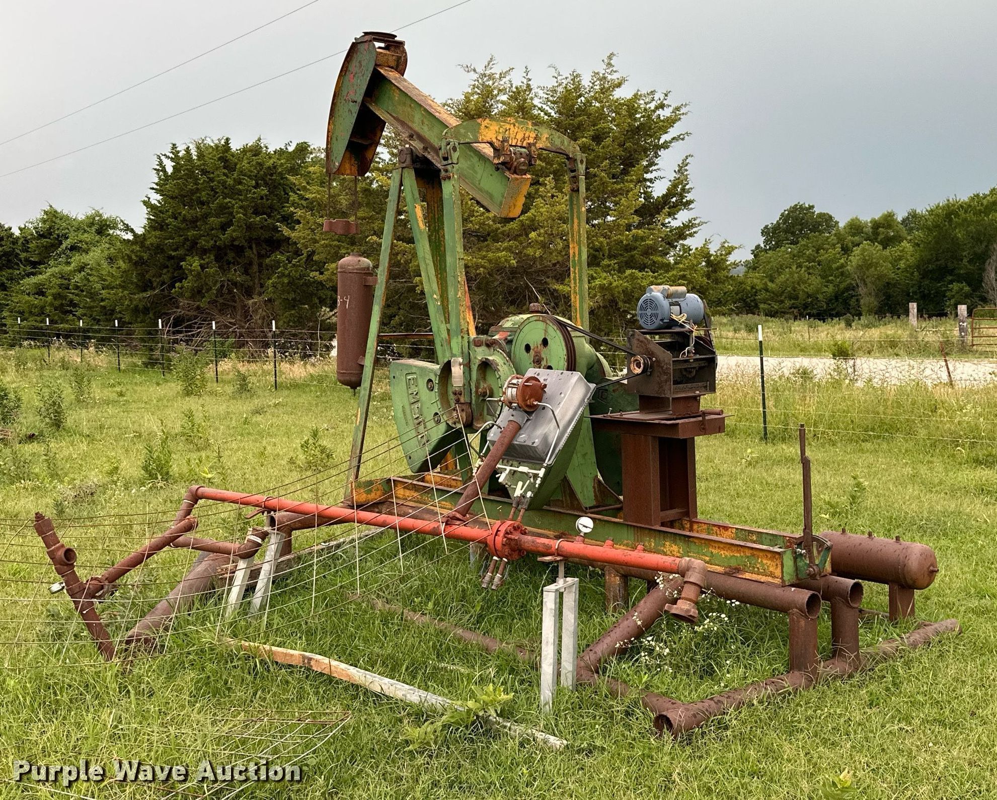 Purple Wave is selling a used Other Industrial or Business in Kansas. This item is a Oilfield equipment with the following: Approx. 42 pipes, 25'L x 3/4" diameter, Approx. 32 joints of 30'L x 2 7/8" diameter pipes, (4) 16' wire panels, Meter run, Stuffing box, Pump, Emsco pump jack, Unit #: 2023FP3-02 - Gourchenour