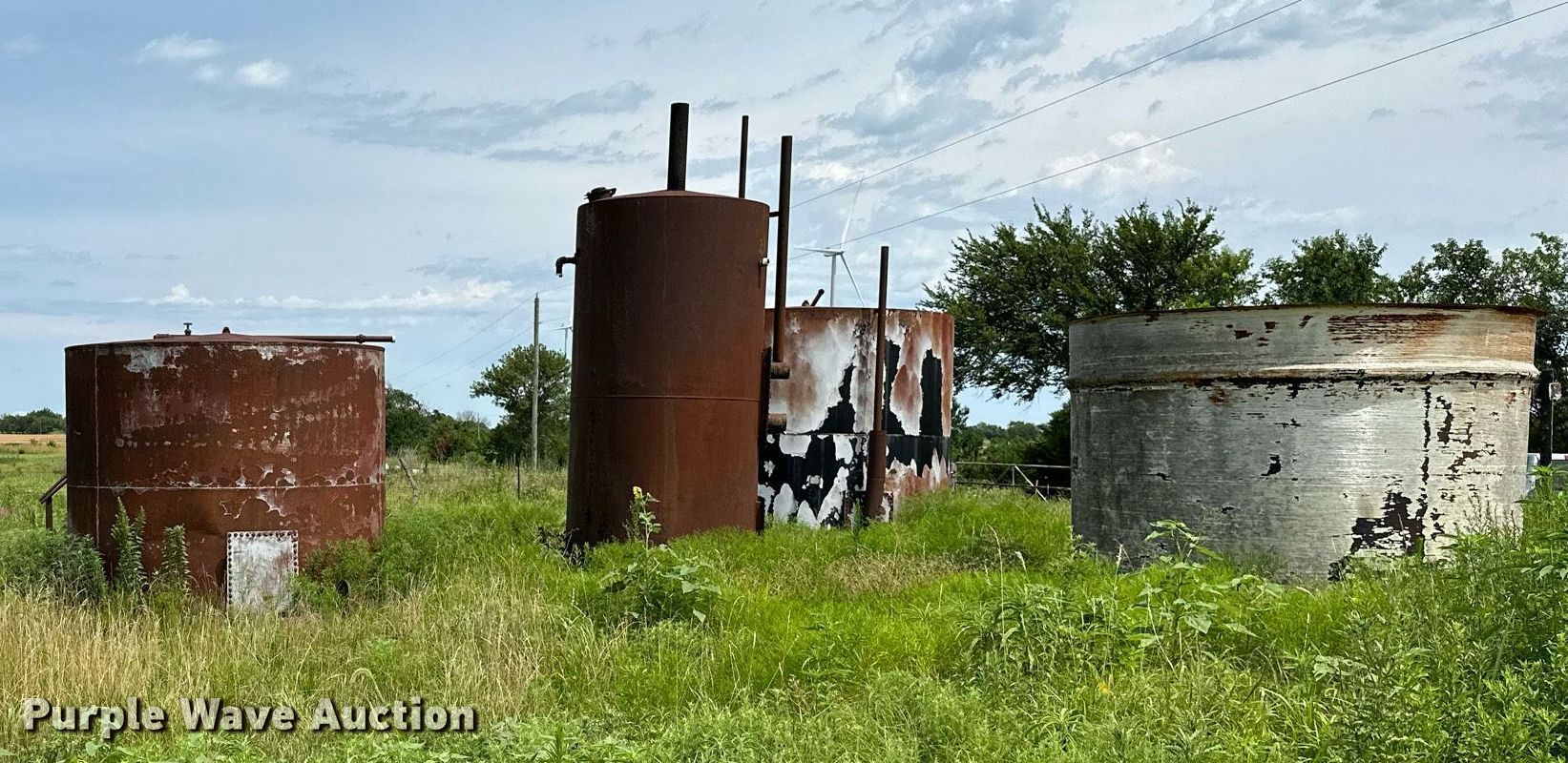 Purple Wave is selling a used Other Industrial or Business in Kansas. This item is a Oilfield equipment with the following: Churchill pump jack, Electric motor, (9) pumps, (6) joints of 1" diameter pipes, (4) joint of 2" diameter pipes, Approx. 170 joints of 1" diameter pipes, Steel barrel, Capacity: approx. 100 BBL, 12' x 10' steel tank, Capacity: 200 BBL, Fiberglass tank, Capacity: 100 BBL, Steel tank, Capacity: 100 BBL, Unit #: 2023FP3-03 - Heilman