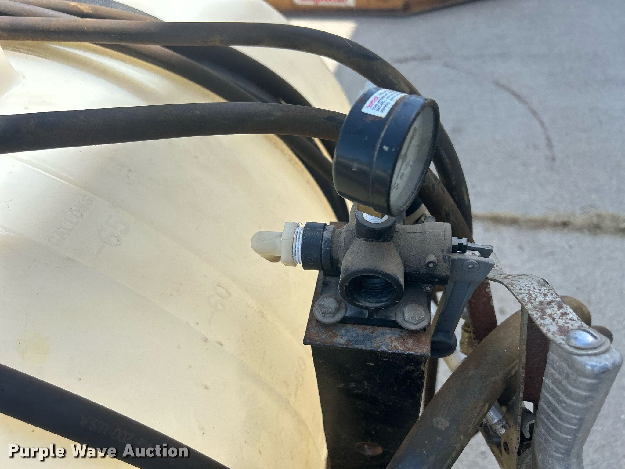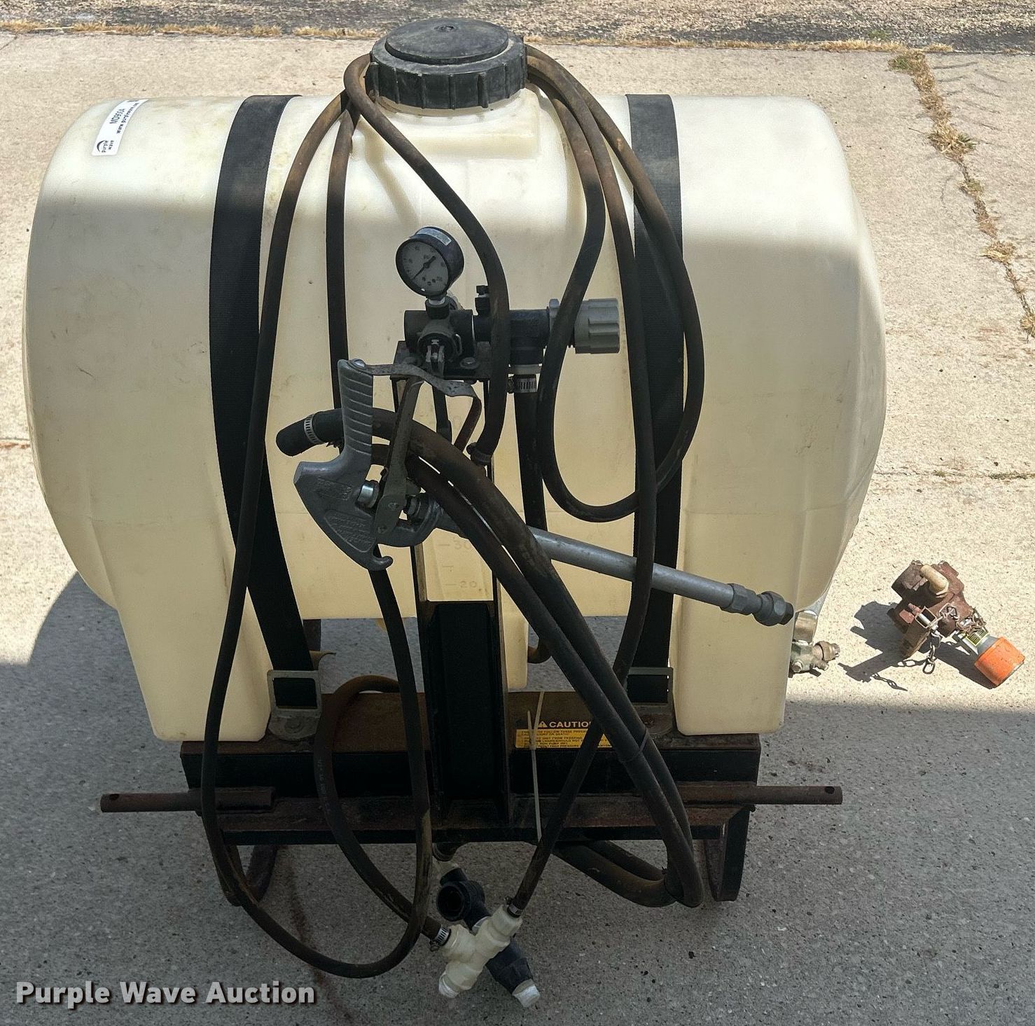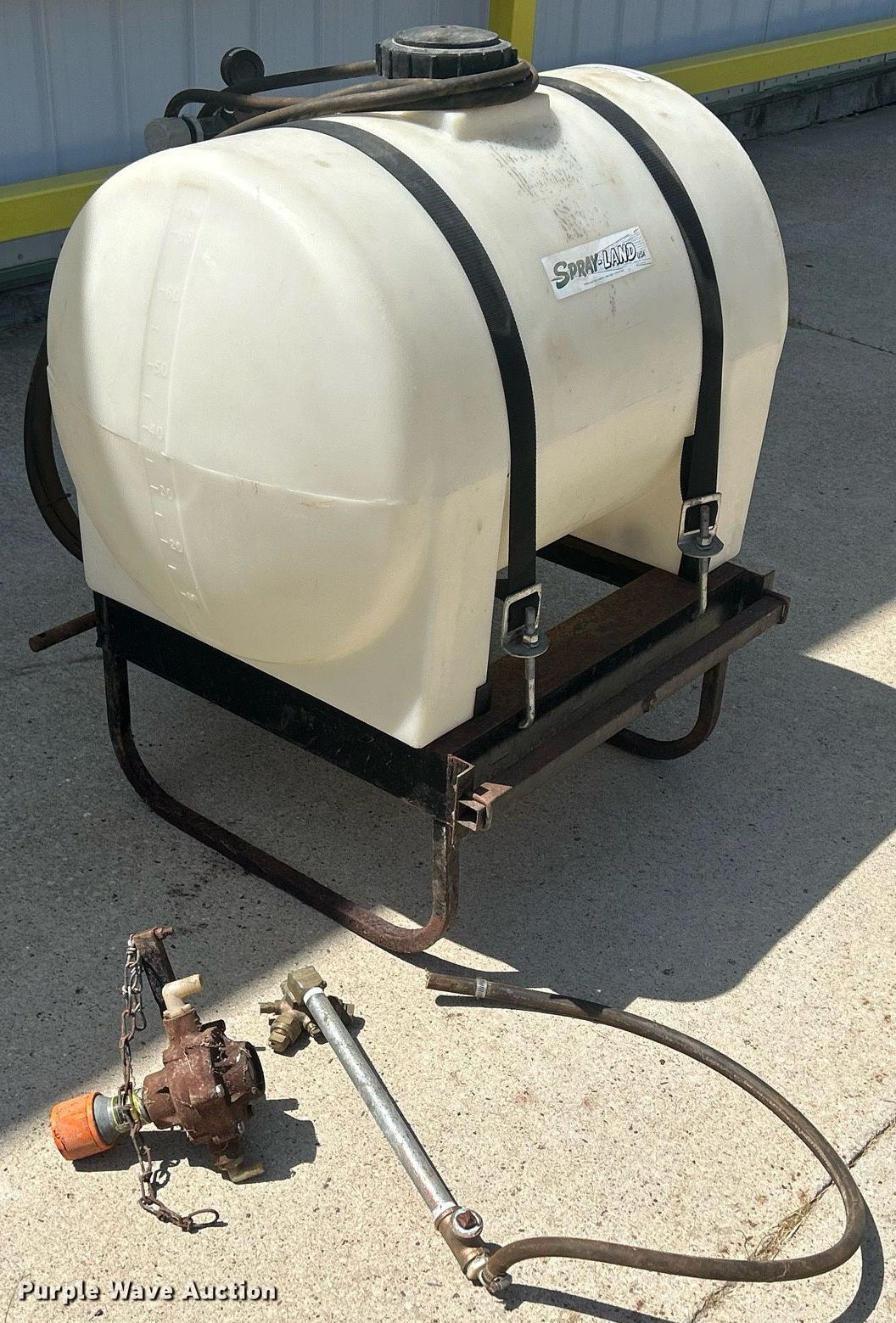 Purple Wave is selling a used Turf Sprayer in Iowa. This item is a Spray Land turf sprayer with the following: Poly tank, Capacity: 65 gallons, Wand, Pump, PTO: 540, Hitch: Three point
