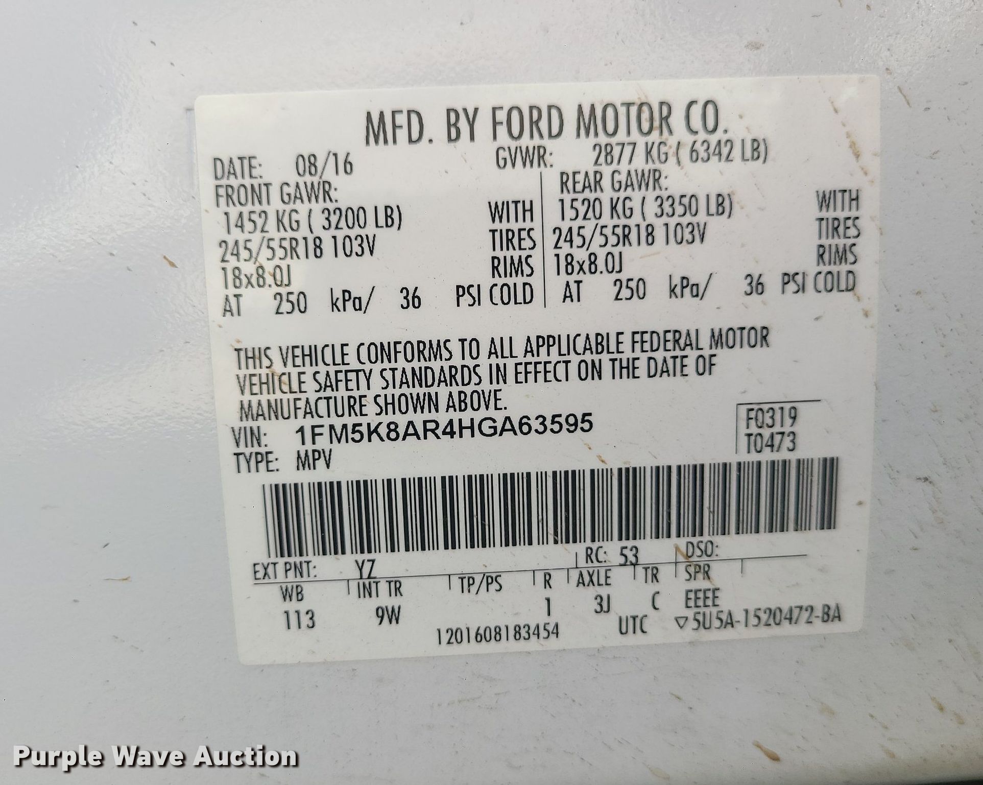 Purple Wave is selling a used Passenger Vehicle in Missouri. This item is a 2017 Ford Explorer Police Interceptor SUV with the following: Miles: 163,644 on odometer, VIN: 1FM5K8AR4HGA63595