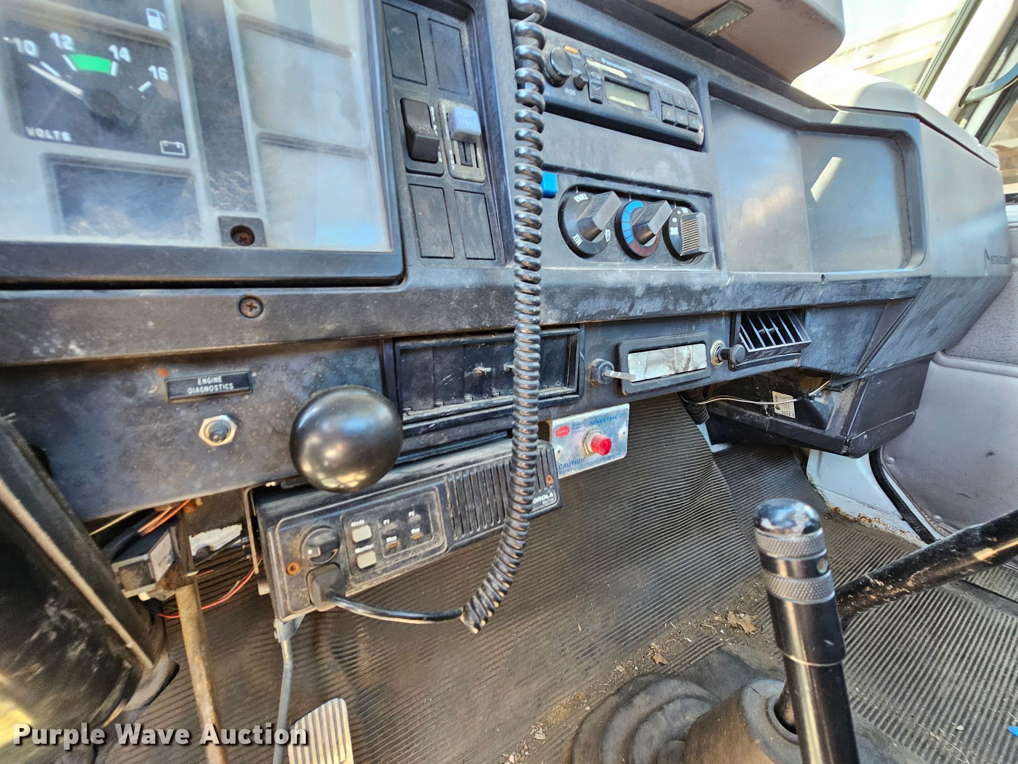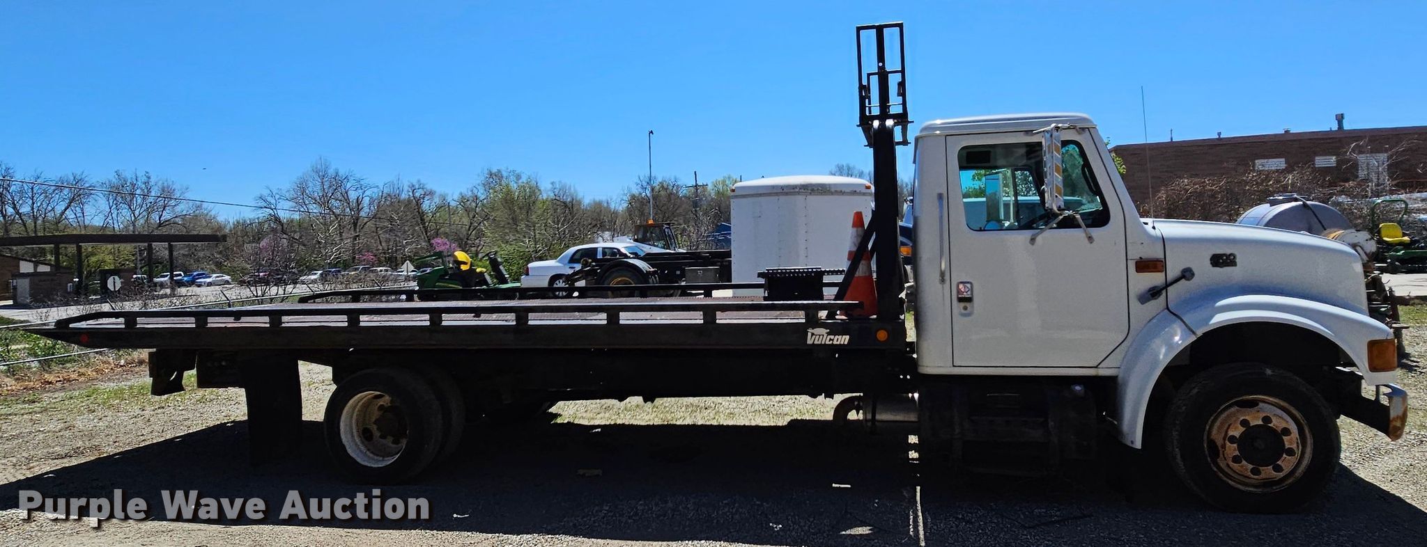 1998 International 4700 rollback truck. Miles: 59,064 on odometer, VIN: 1HTSCABMXWH547652. Engine International T444, Displacement: 7.3L, Cylinders: 8, Fuel type: Diesel. Transmission Spicer, Manual, Speed: 5. Chassis Axles: Single, Suspension: Spring, Brakes: Hydraulic, Wheelbase: 208". Interior AC, Heat. Features Rollback bed Vulcan, 20' 11" L x 8' W, Winch. Tires Size: 225/70R19.5. Notes Dead battery. Missouri title. Seller is a government entity who will be assigning and distributing the title. Please contact the seller for distribution questions. Title distribution may be delayed up to 30 days from verification of funds. City of Lawrence, KS. 6 E 6th St. Lawrence, KS 66044