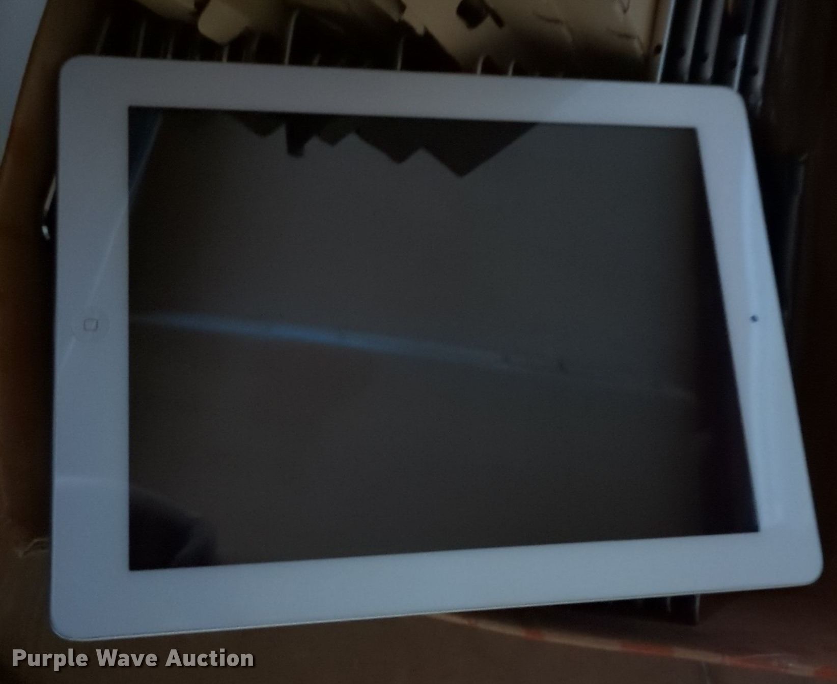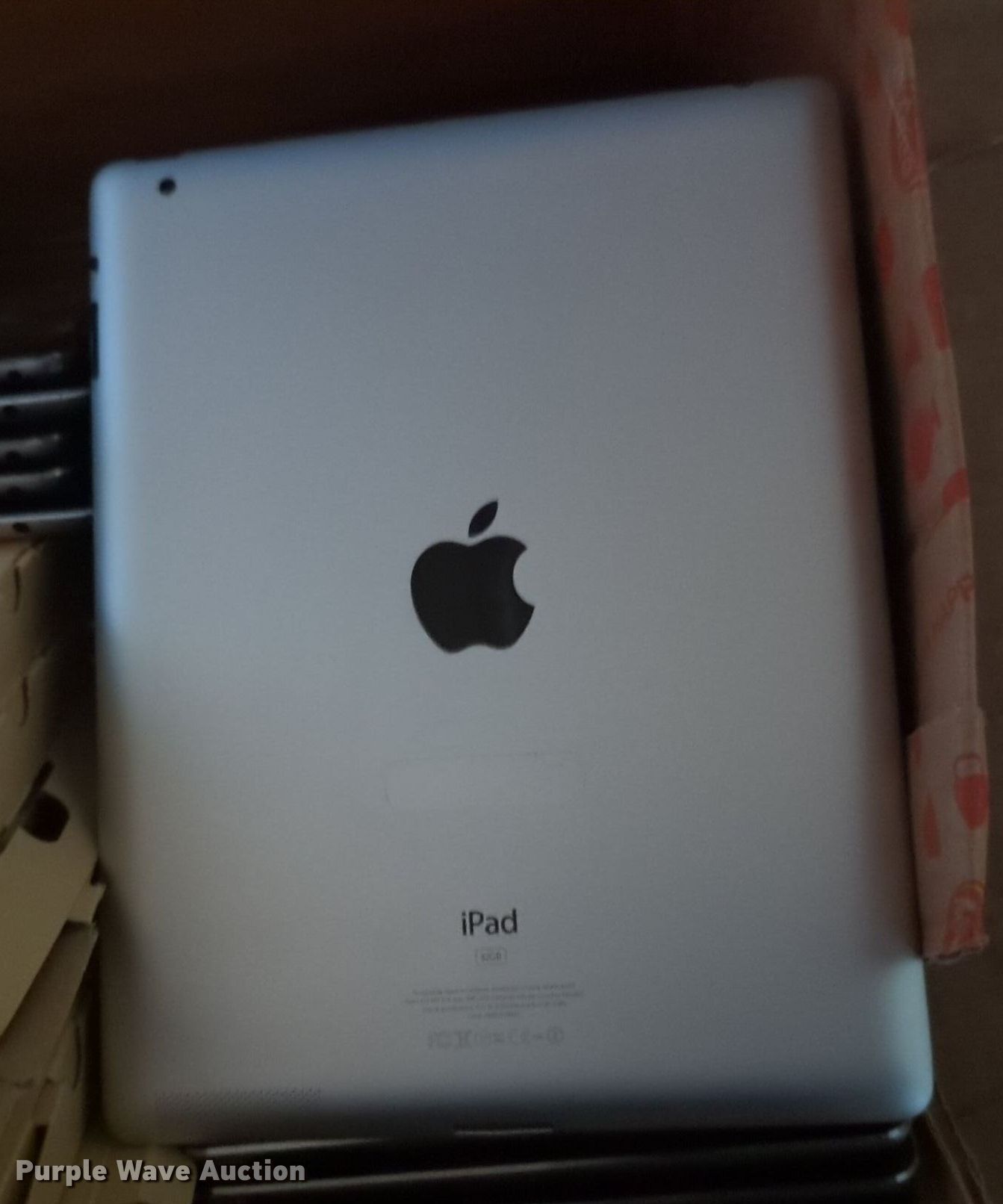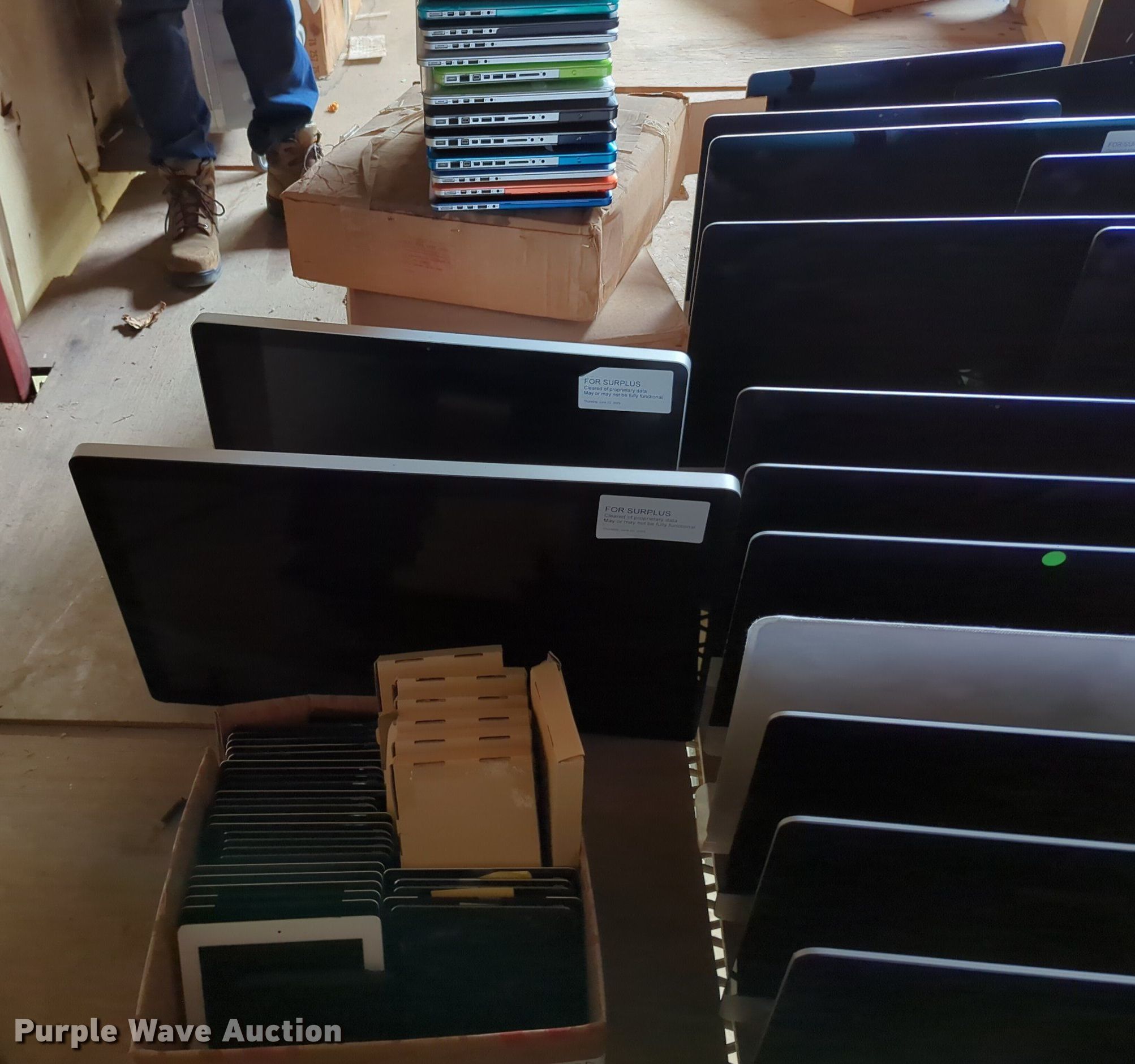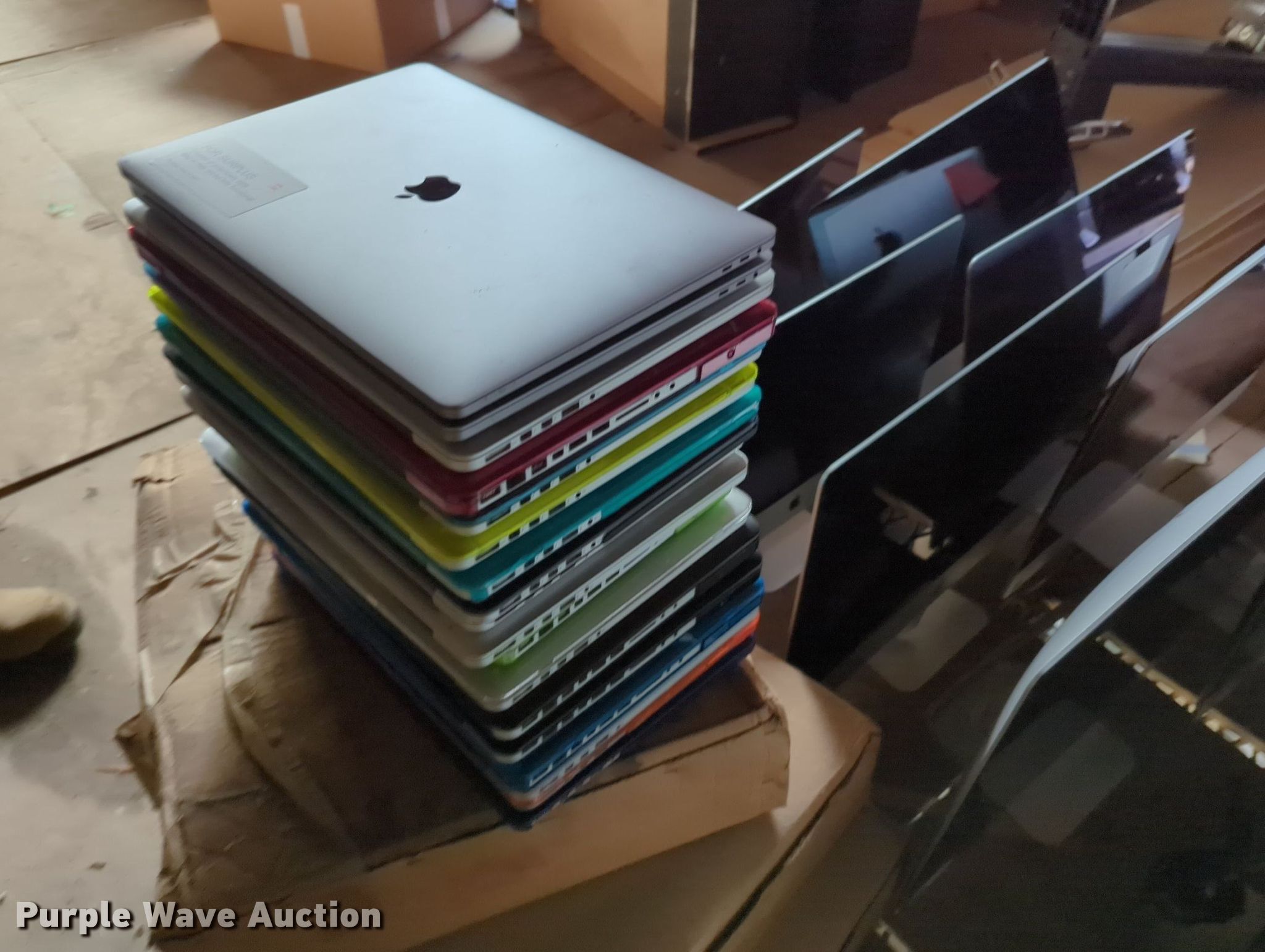 Purple Wave is selling a used Electronics in Oklahoma. This item is a Electronics with the following: (31) Apple MAC CPU, (31) Apple iPads, (7) keypads, (17) Apple MacBooks, Unknown operating condition