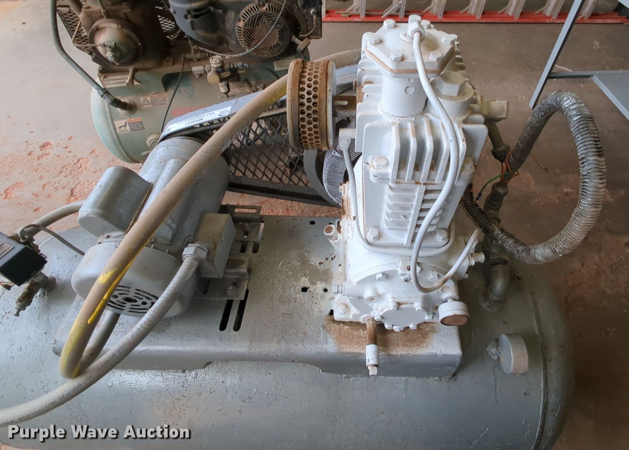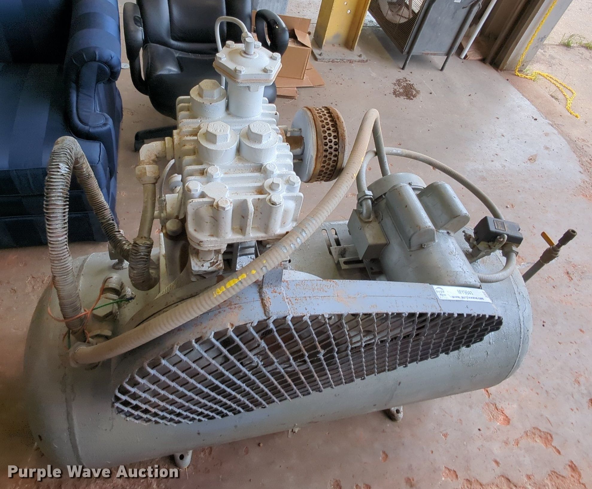 Purple Wave is selling a used Air Compressor in Oklahoma. This item is a Quincy 310 air compressor with the following: Dayton 1K064B, HP: 2, Volts: 115/230, Phase: Single