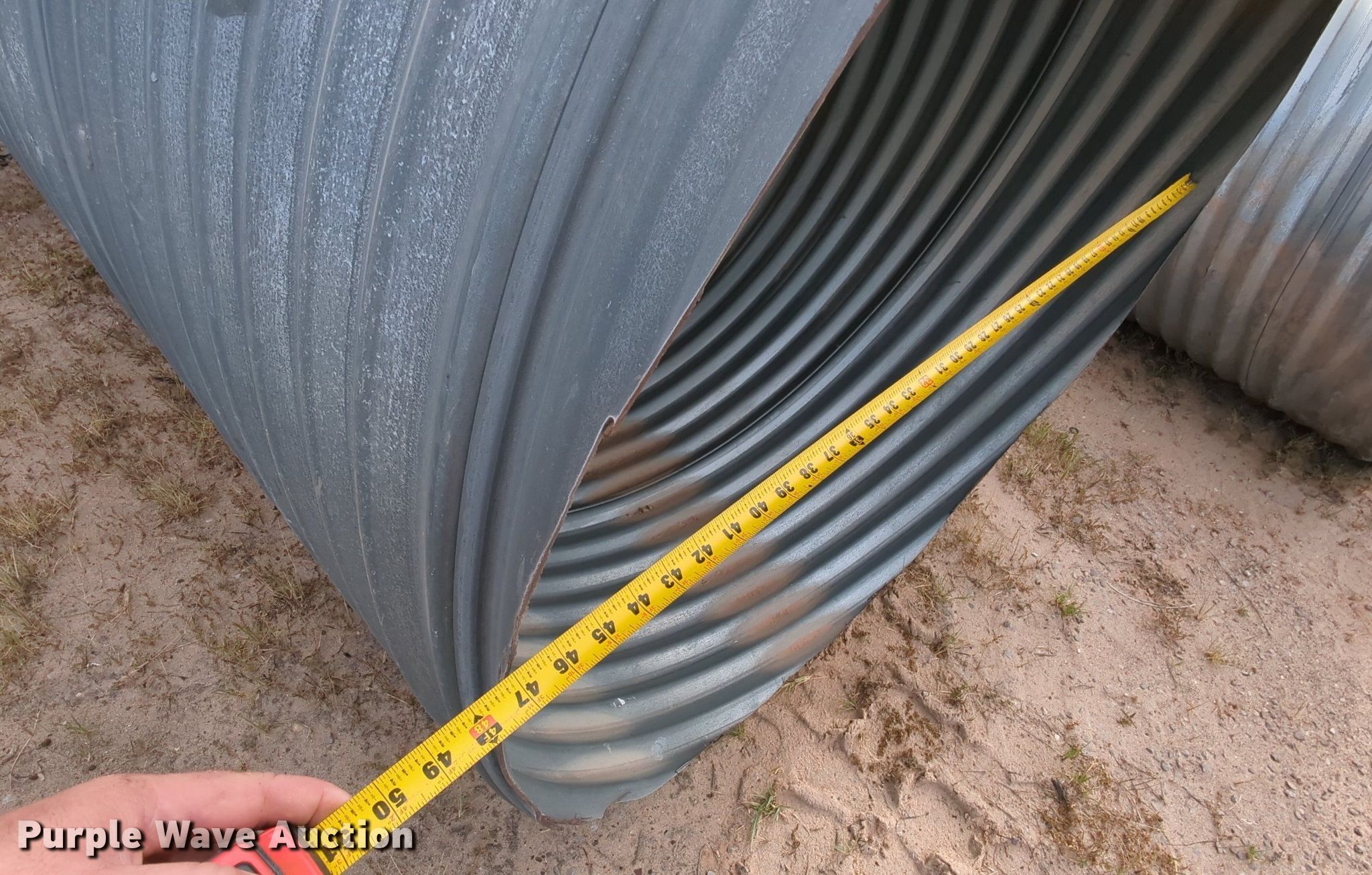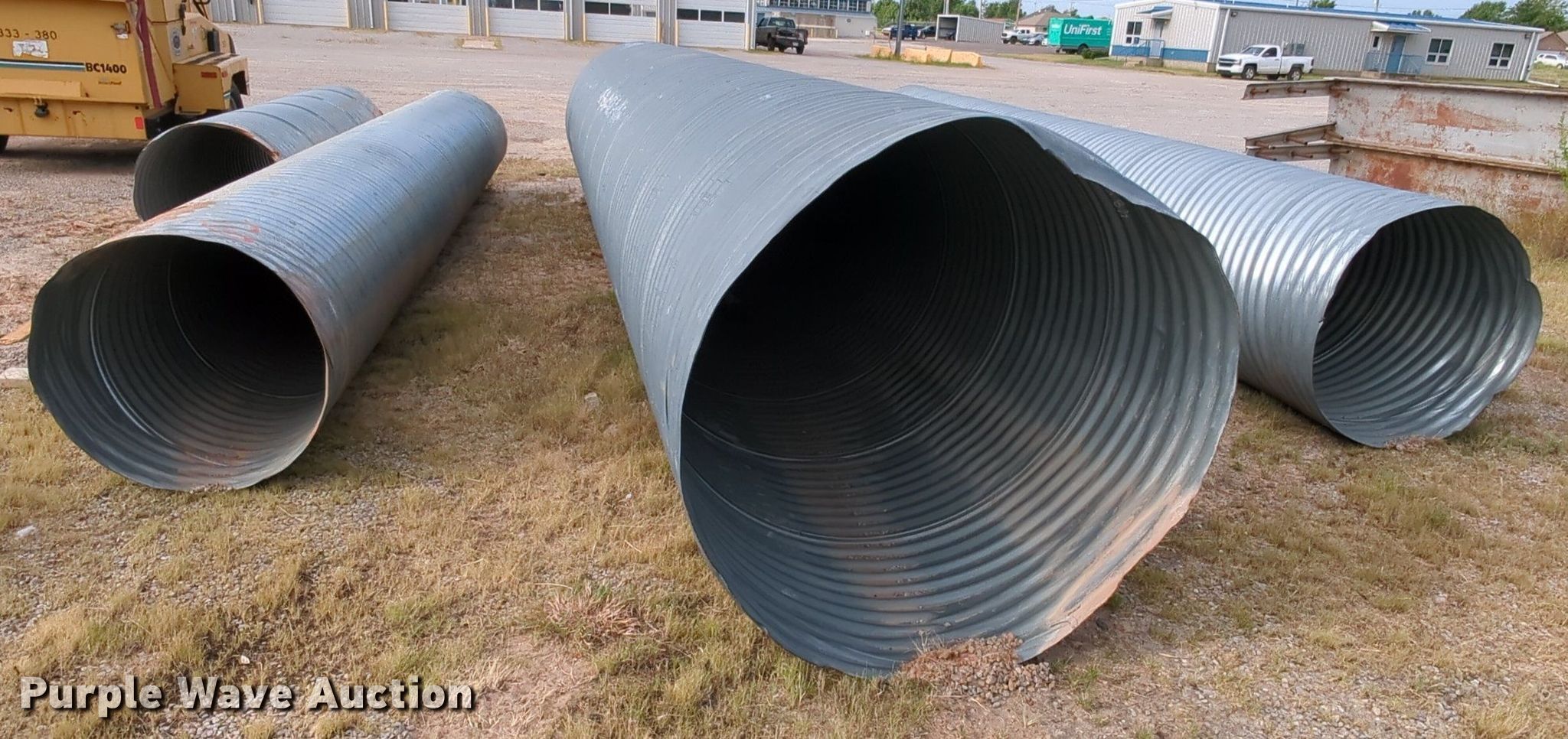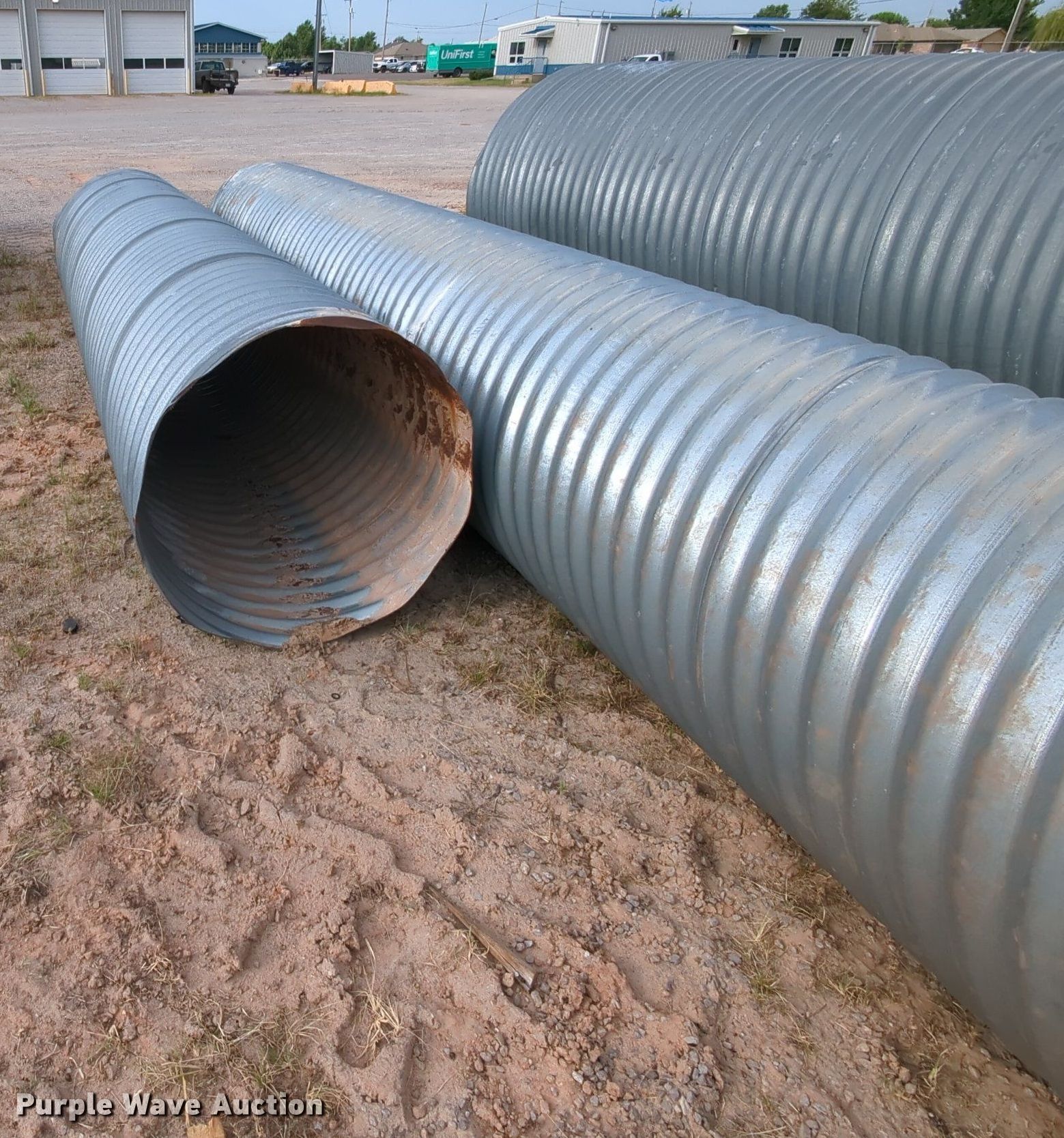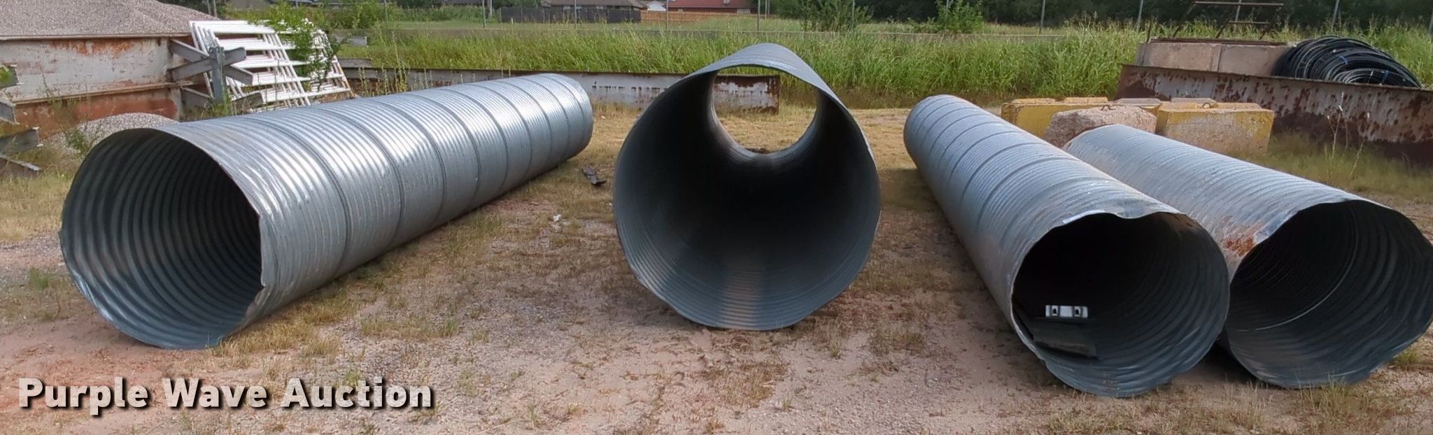 Purple Wave is selling a used Pipe in Oklahoma. This item is a (4) steel culverts with the following: 10' L x 30" diameter, 20' L x 30" diameter, 22' L x 48" diameter, 20' L x 36" diameter