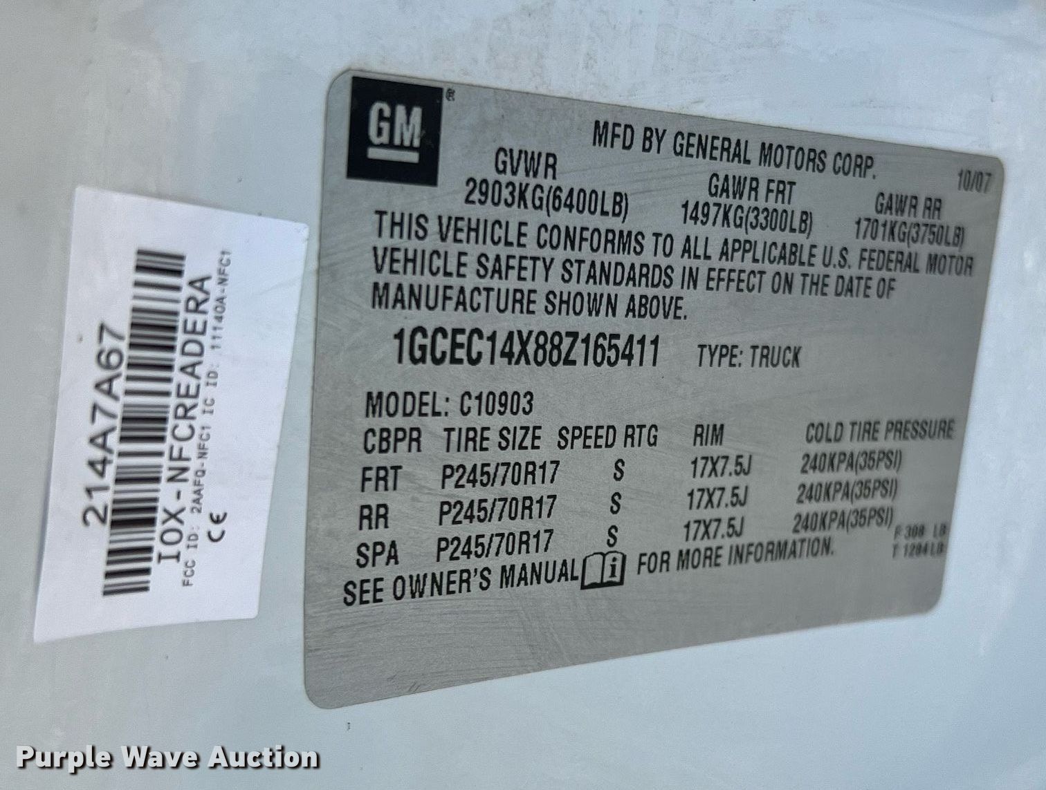 Purple Wave is selling a used 1/2 Ton Pickup or Van in Missouri. This item is a 2008 Chevrolet Silverado1500 pickup truck with the following: Miles: 136,308 on odometer, VIN: 1GCEC14X88Z165411, Unit #: B6594