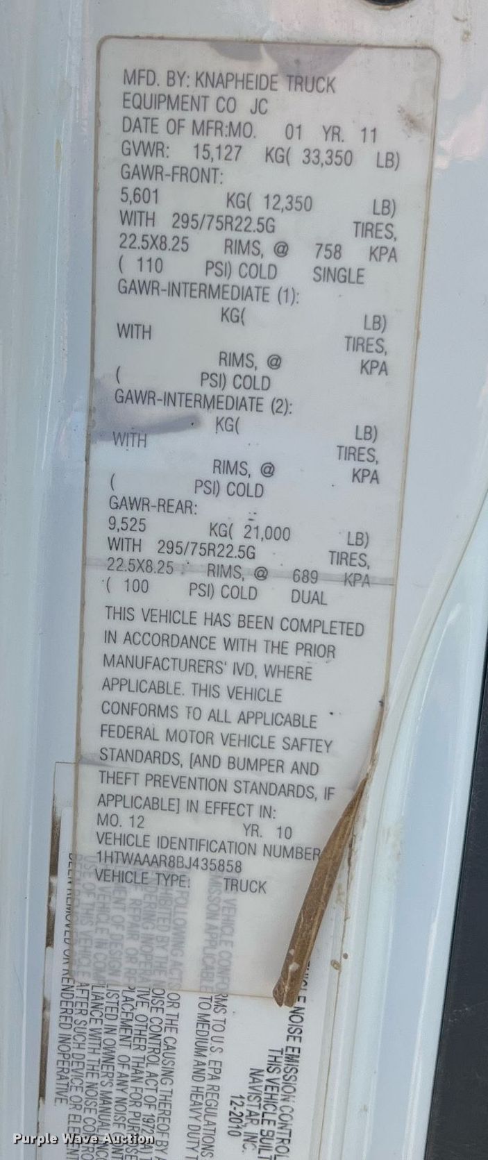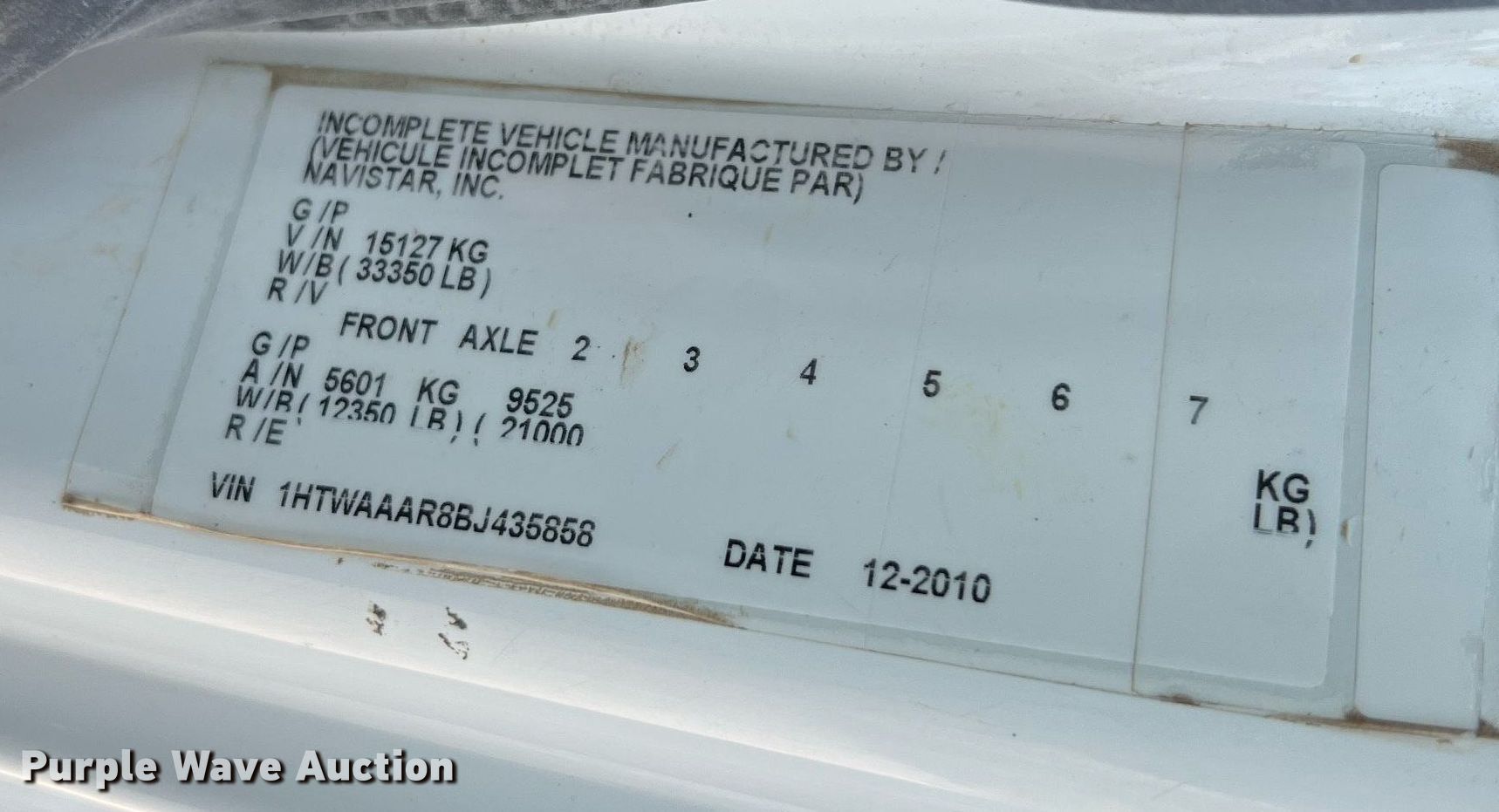 2011 International WorkStar 7300 dump truck. Miles: 35,431 on odometer, Hours: 4,253 on meter, VIN: 1HTWAAAR8BJ435858. Engine International MaxxForce, Displacement: 7.6L, Cylinders: 6, Fuel type: Diesel. Transmission Allison, Automatic. Chassis Axles: Single, Suspension: Spring, Brakes: Air, PTO, GVWR: 33,350 lbs FAWR: 12,350 lbs, RAWR: 21,000 lbs. Interior AC, Heat, Heated mirrors, Cruise control. Features Dump bed Duraclass HPT3167YD12, 11' 11" L x 96" W, Side height: 28", Side board height: 11", Bed type: Steel, Ram: Single , End gate: Air operated. Tires Front: 11R22.5, Rear: 295/75R22.5. Notes Dash warning indicator: Check engine, Non-operational air ride seat. Missouri title. Seller is a government entity who will be assigning and distributing the title. Please contact the seller for distribution questions. City of Moberly. 101 W Reed St. Moberly, MO 65270