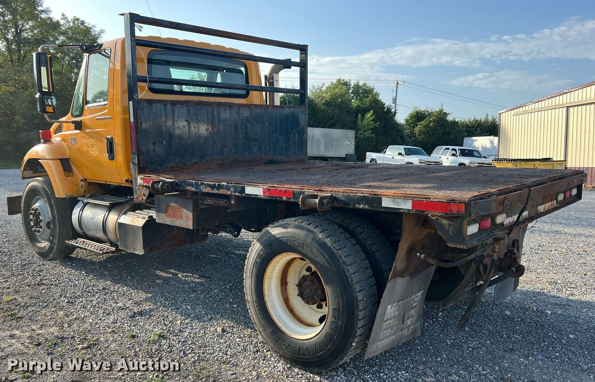 Purple Wave is selling a used Flat Bed Truck in Missouri. This item is a 2005 International 7400 flatbed truck with the following: Miles: 163,113 on odometer, Hours: 12,407 on meter, VIN: 1HTWDAAR15J180045, Unit #: 7648