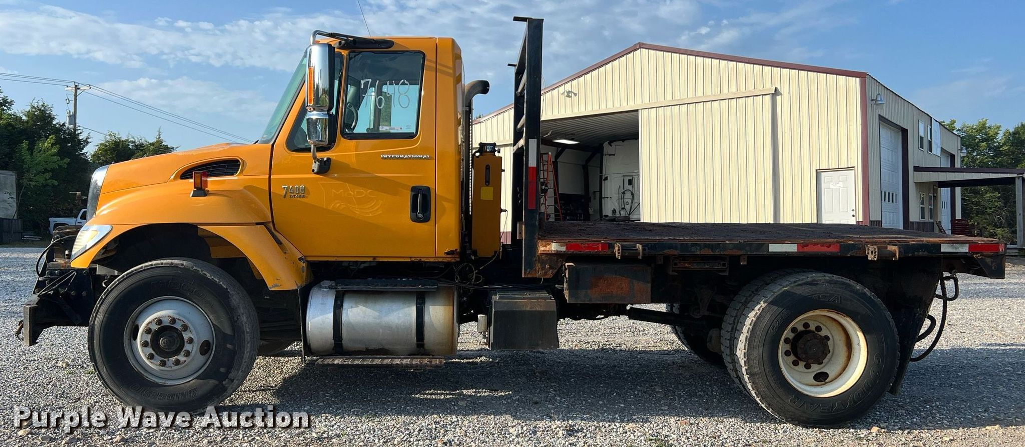 This 2005 International 7400 flatbed truck will sell to the highest bidder regardless of price.