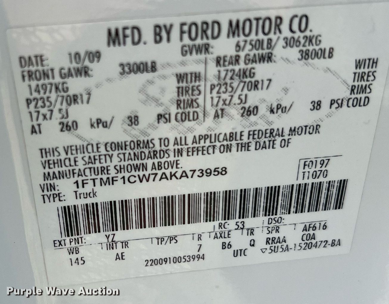 - VIN: 1FTMF1CW7AKA73958
