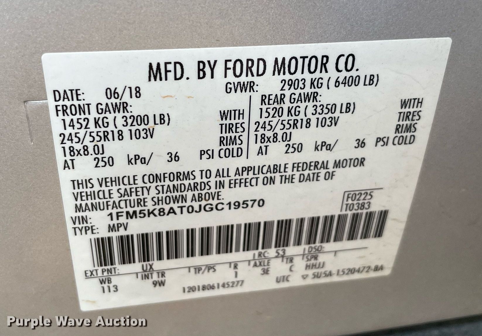 - VIN: 1FM5K8AT0JGC19570