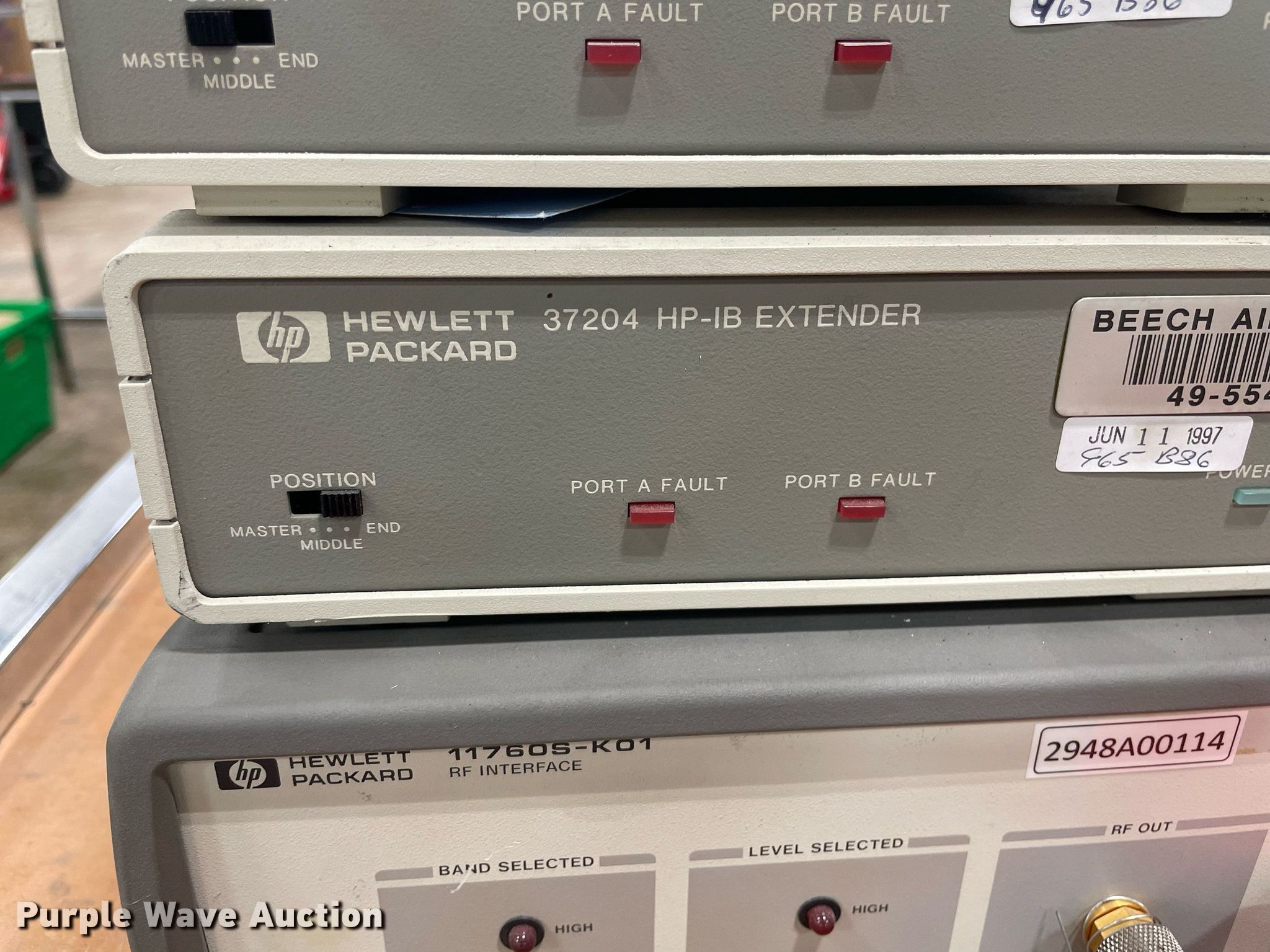 Purple Wave is selling a used Electronics in Kansas. This item is a Electronics with the following: Unit #: 28, (2) Hewlett Packard 37204 HP-1B extenders, Hewlett Packard 11760S-K01 RzF interface, Amplifier Research CP3000 IEEE-488 interface