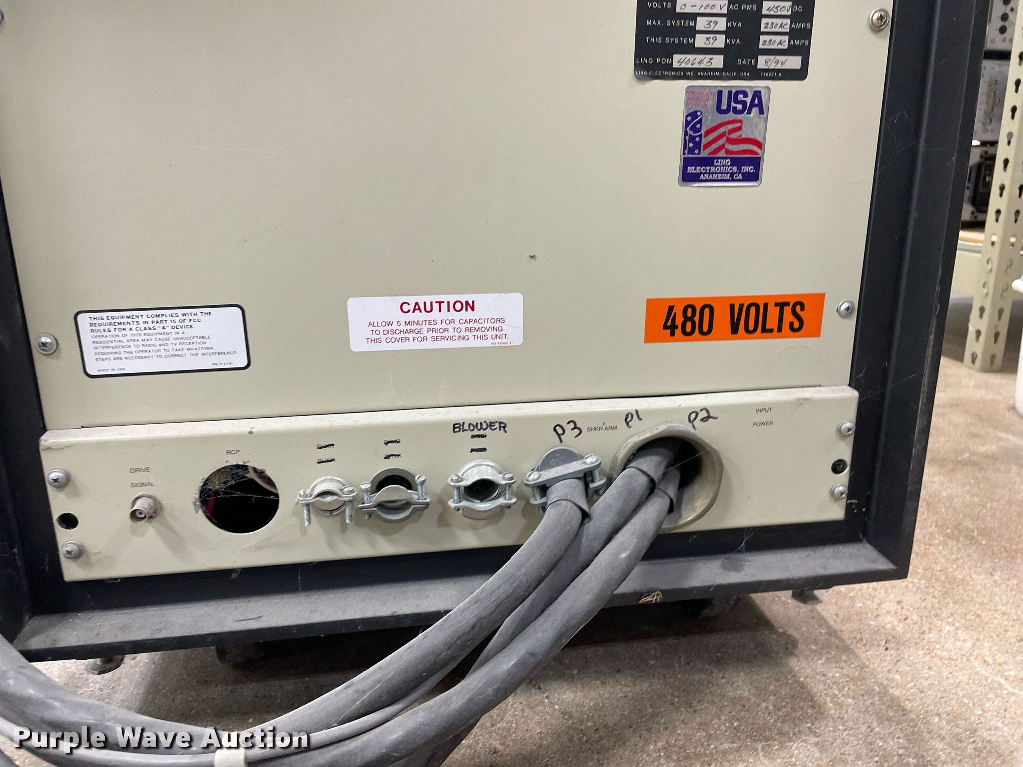 Purple Wave is selling a used Electronics in Kansas. This item is a Ling DMA5B/612-5 power amplifier with the following: Unit #: 33, Serial: 323, Hours: 1,040 on meter, Phase: 3, Volts: 480
