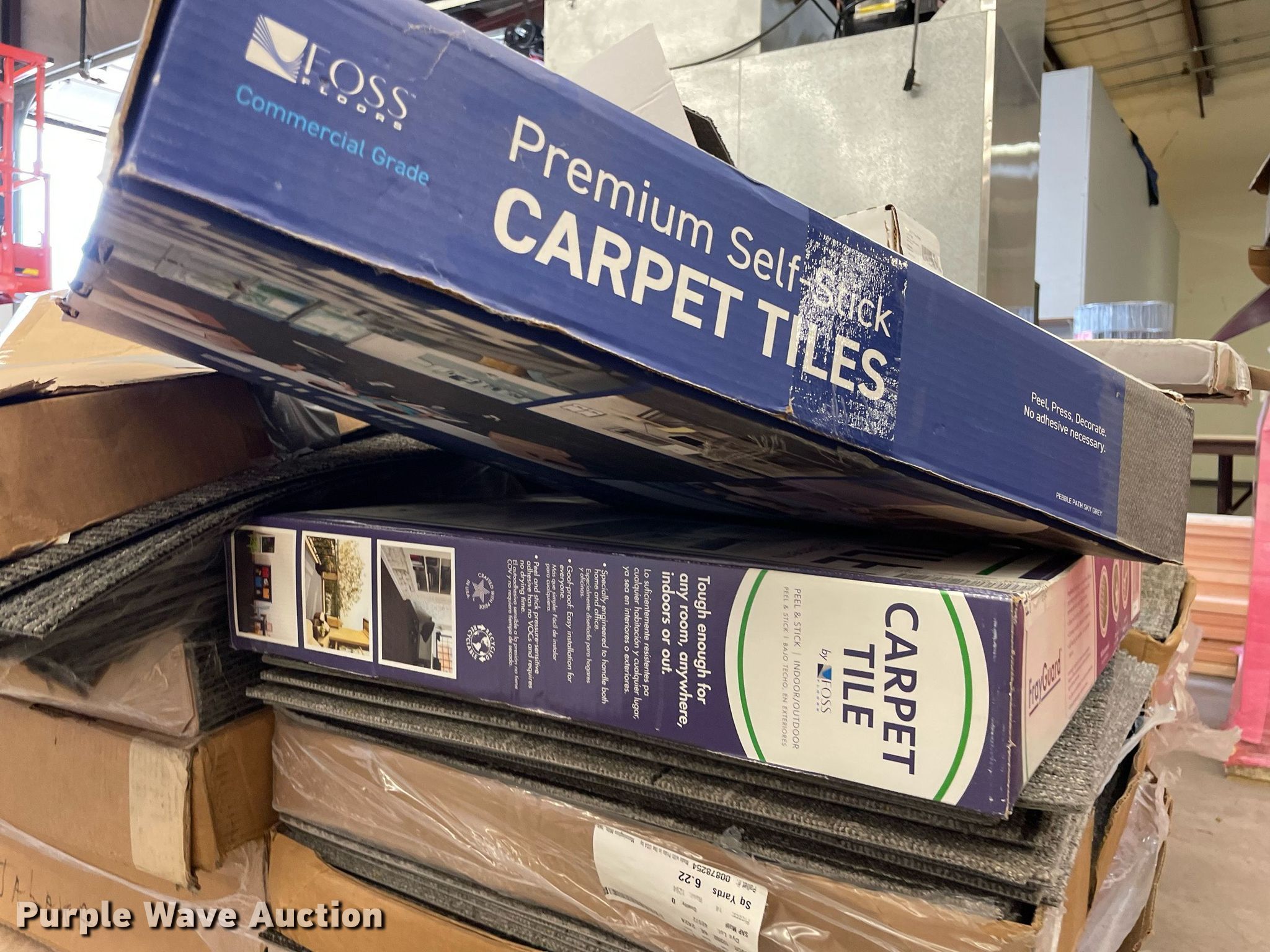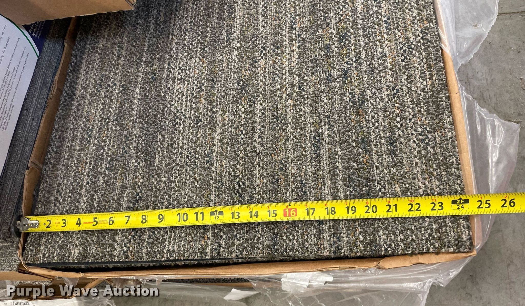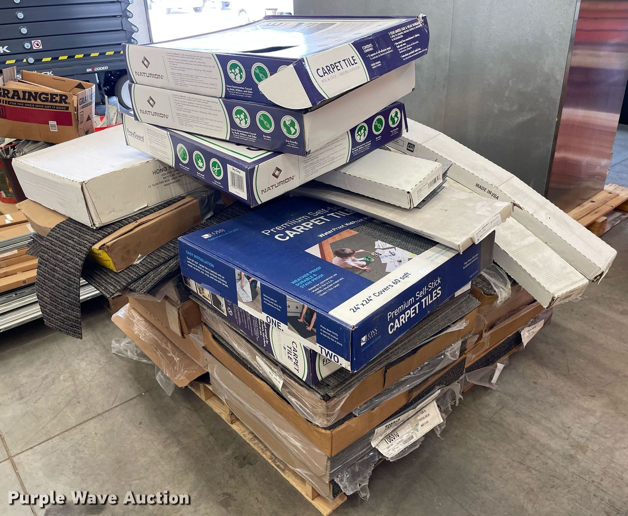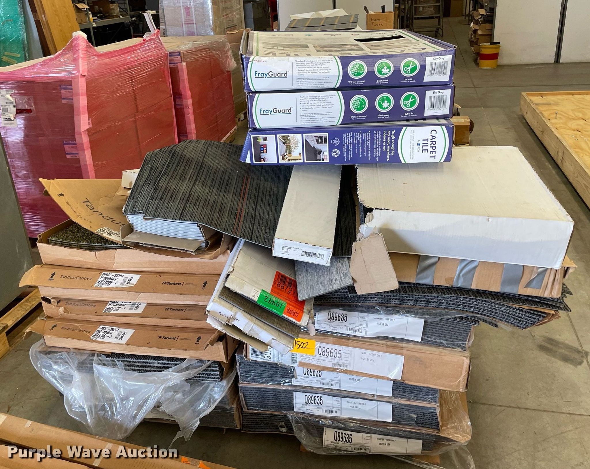 Purple Wave is selling a used Building Materials in Kansas. This item is a Pallet of carpet tiles with the following: Unused