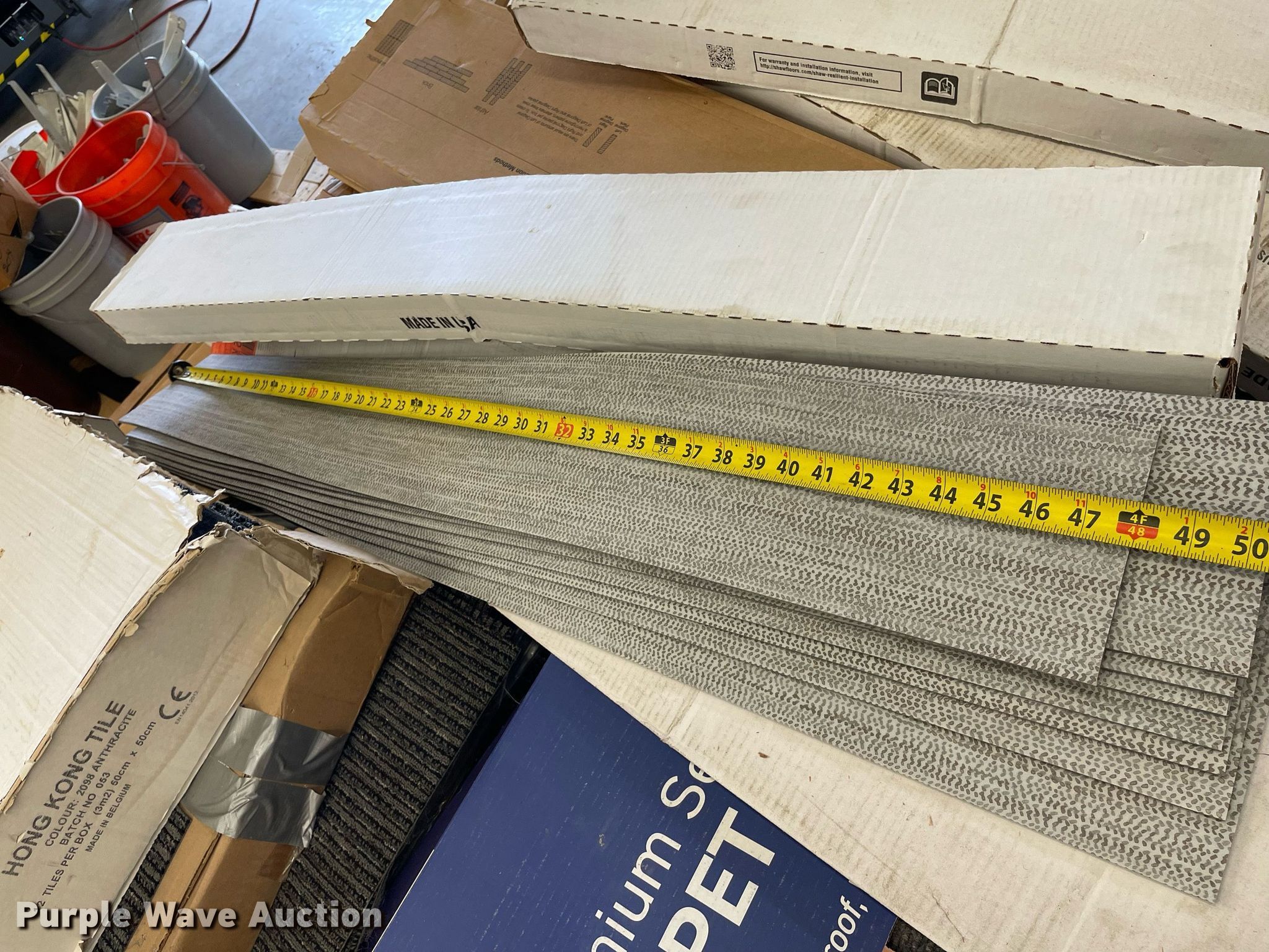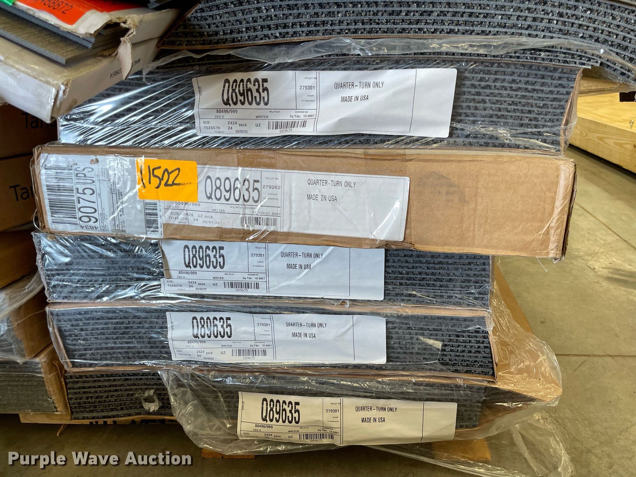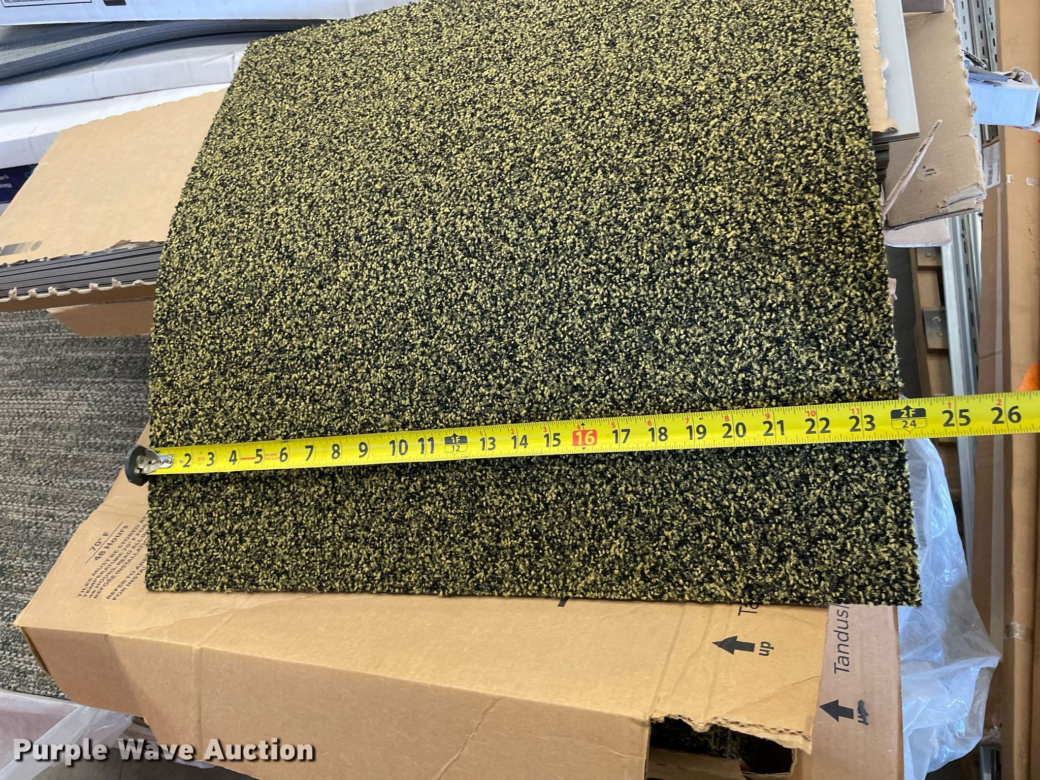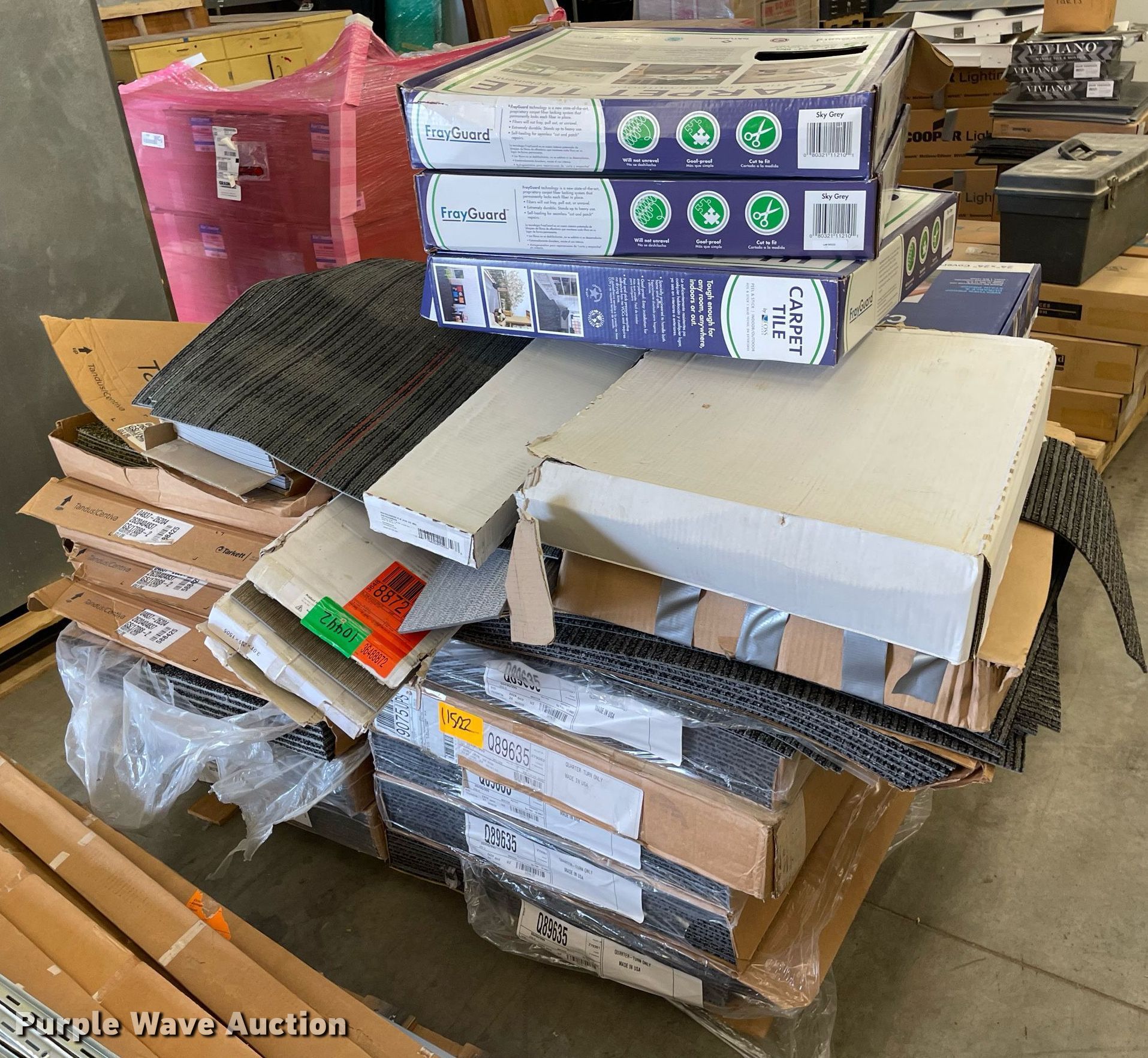 Purple Wave is selling a used Building Materials in Kansas. This item is a Pallet of carpet tiles with the following: Unused