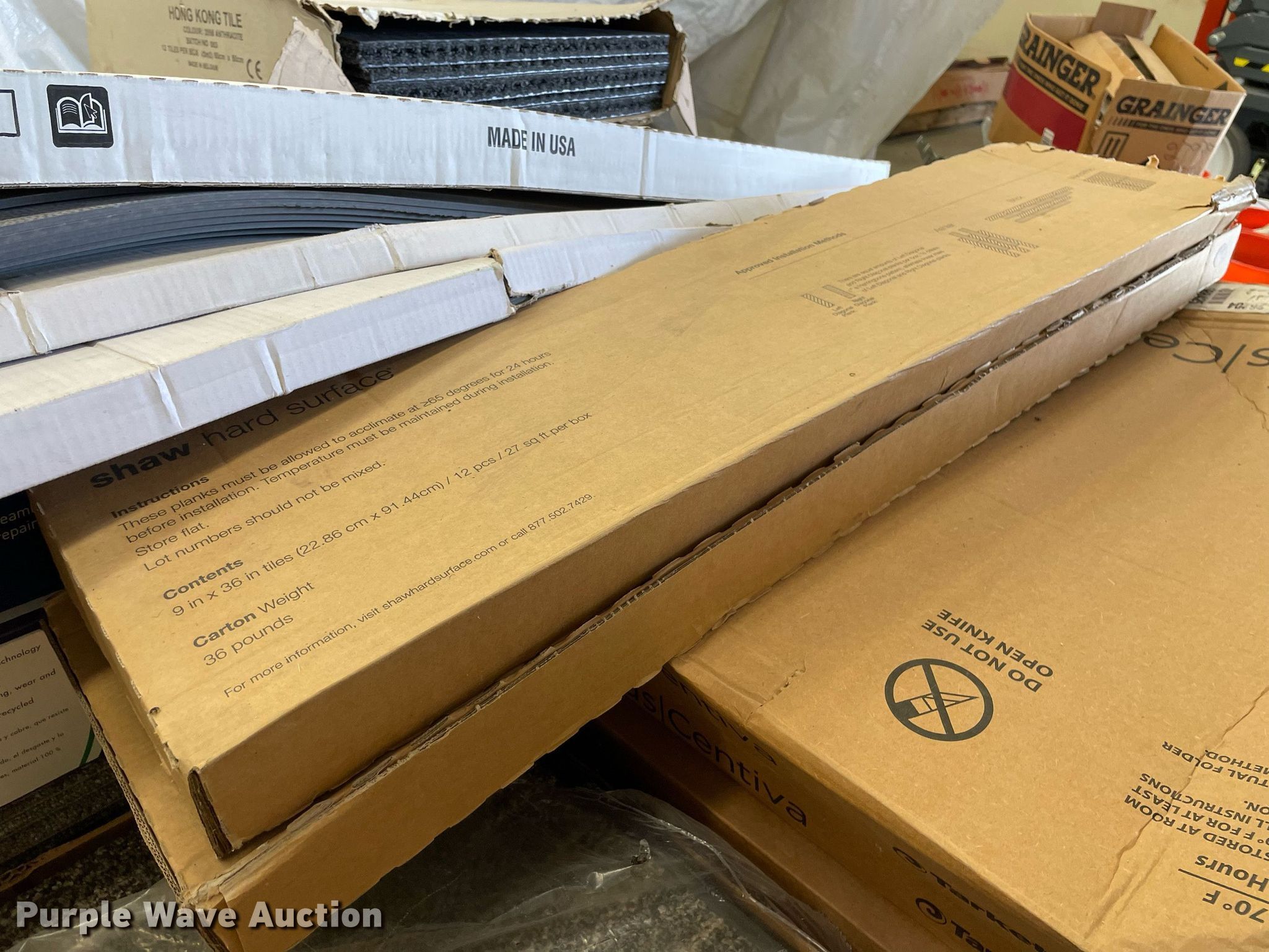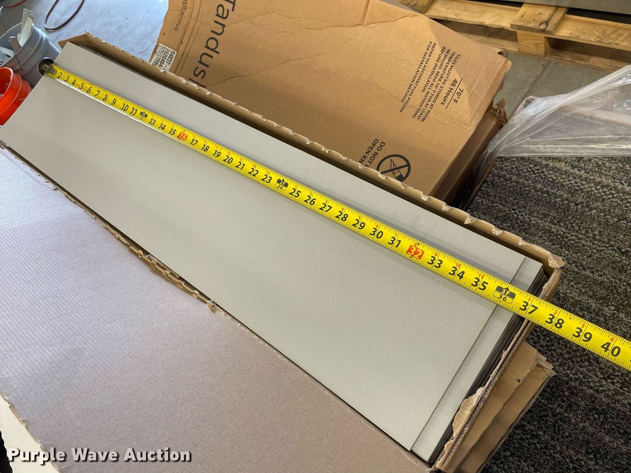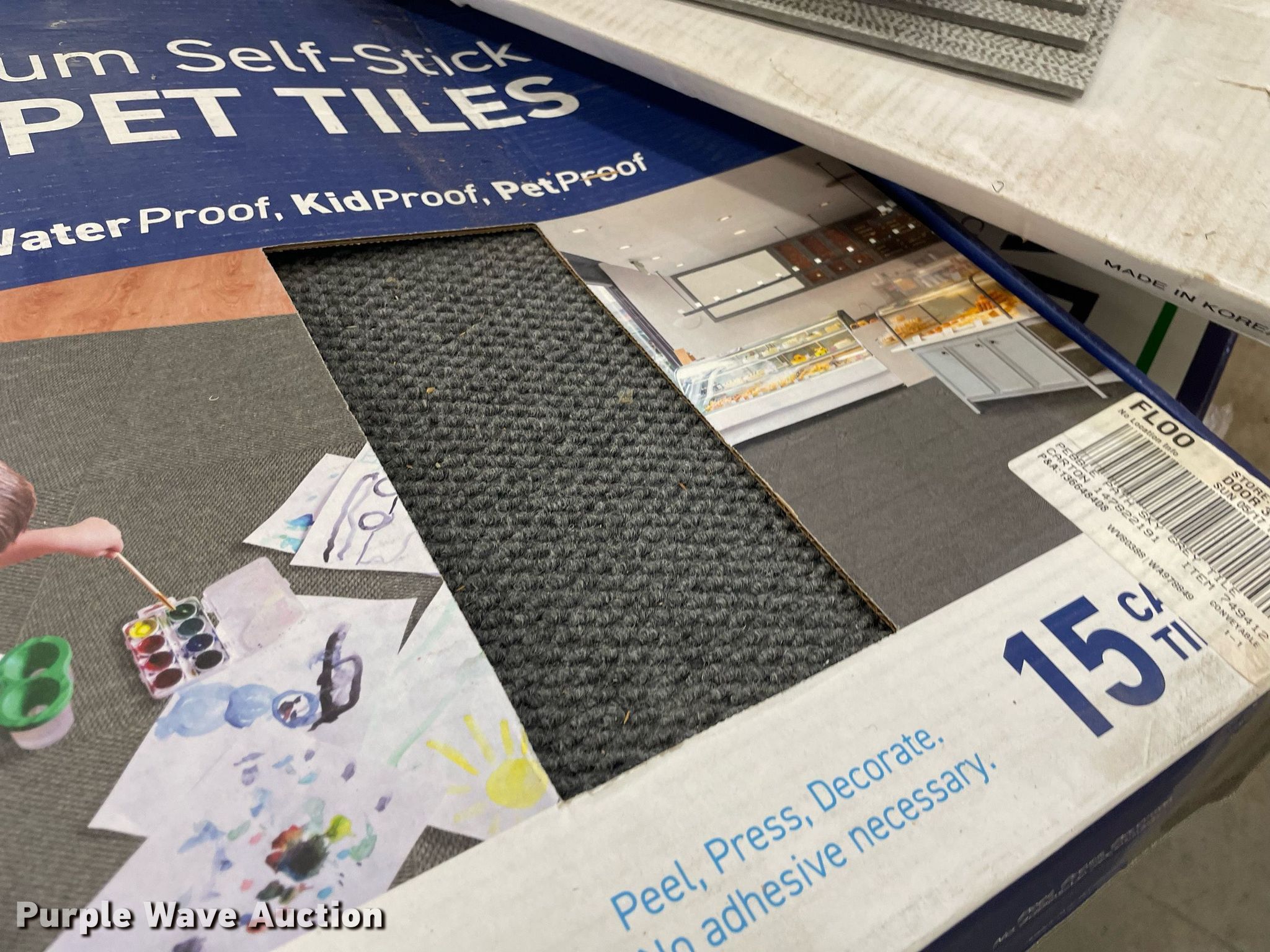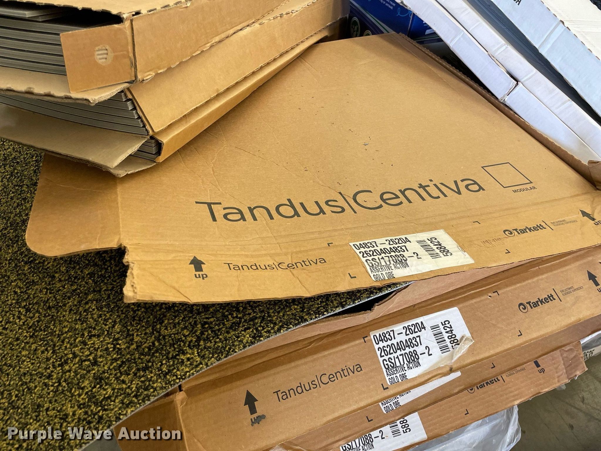 Purple Wave is selling a used Building Materials in Kansas. This item is a Pallet of carpet tiles with the following: Unused