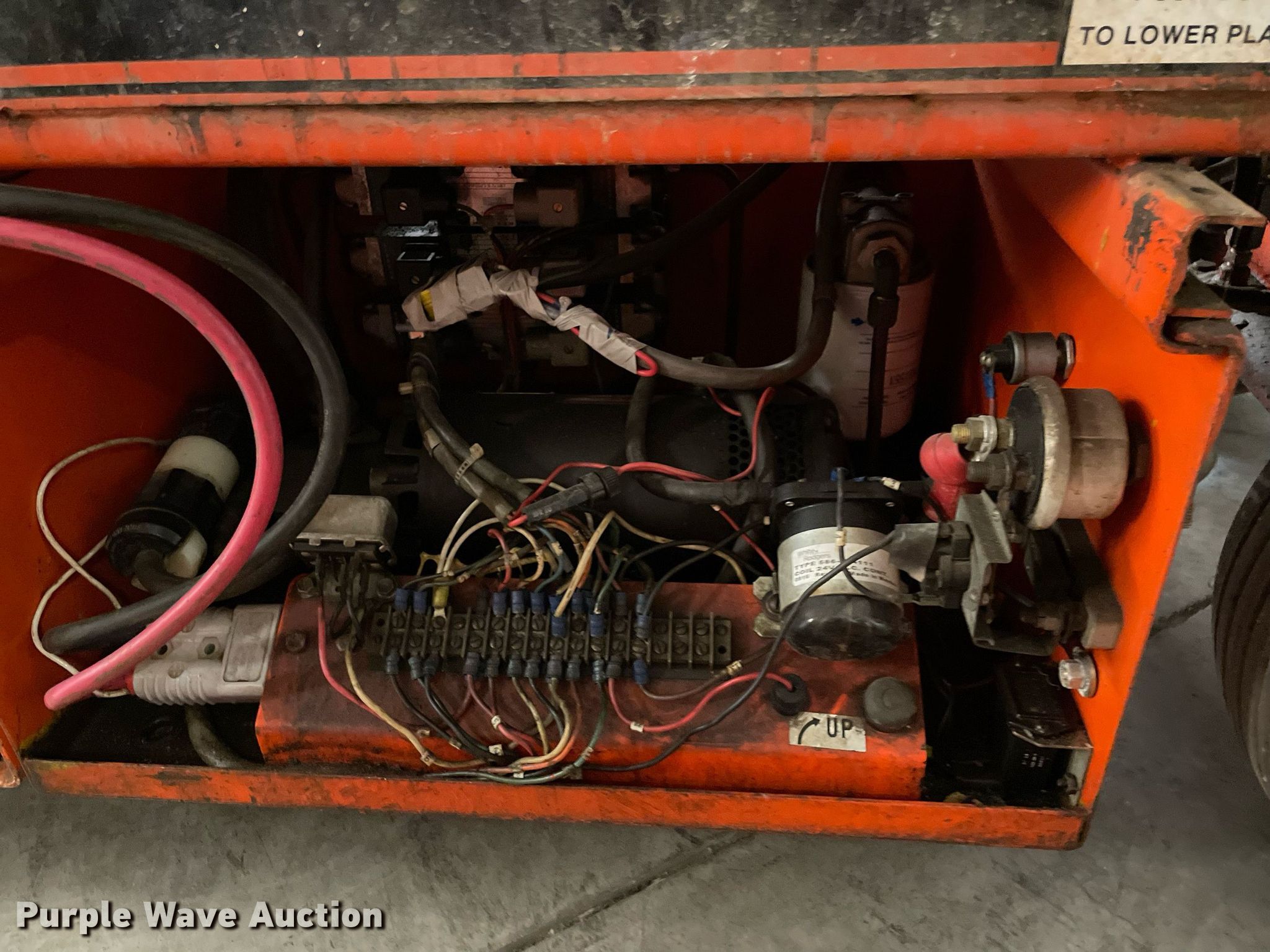 Economy SP-1630 scissor lift. Serial: FB49326K-1. Electric Motor Volts: 24. Features Maximum lift capacity: 750 lbs, Maximum lift height: 16', Platform: 78" L x 30" W, Controls: Platform. Tires Tire size: 4.00-8, Solid. Wichita State University. 1845 N Fairmount Box 23. Wichita, KS 67260