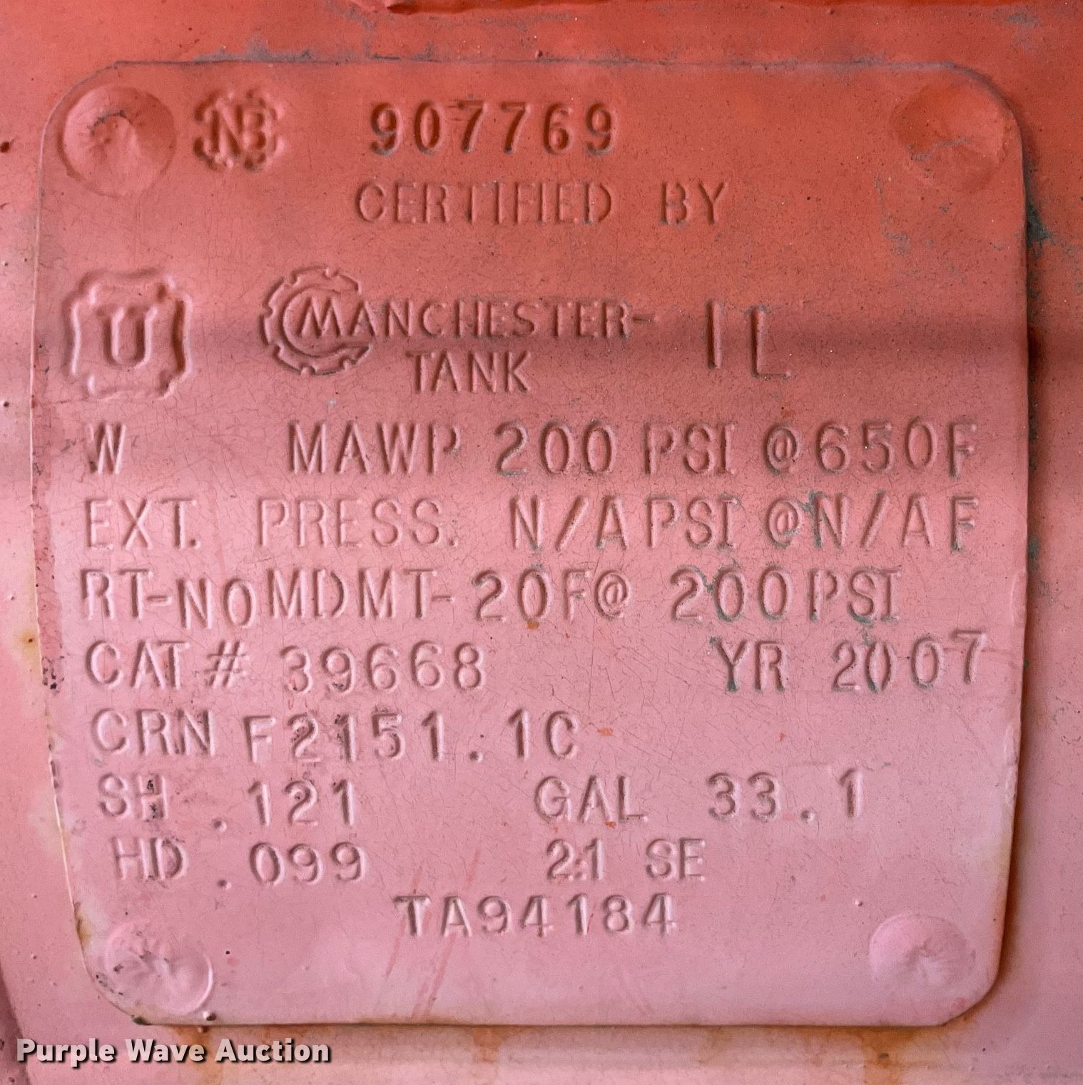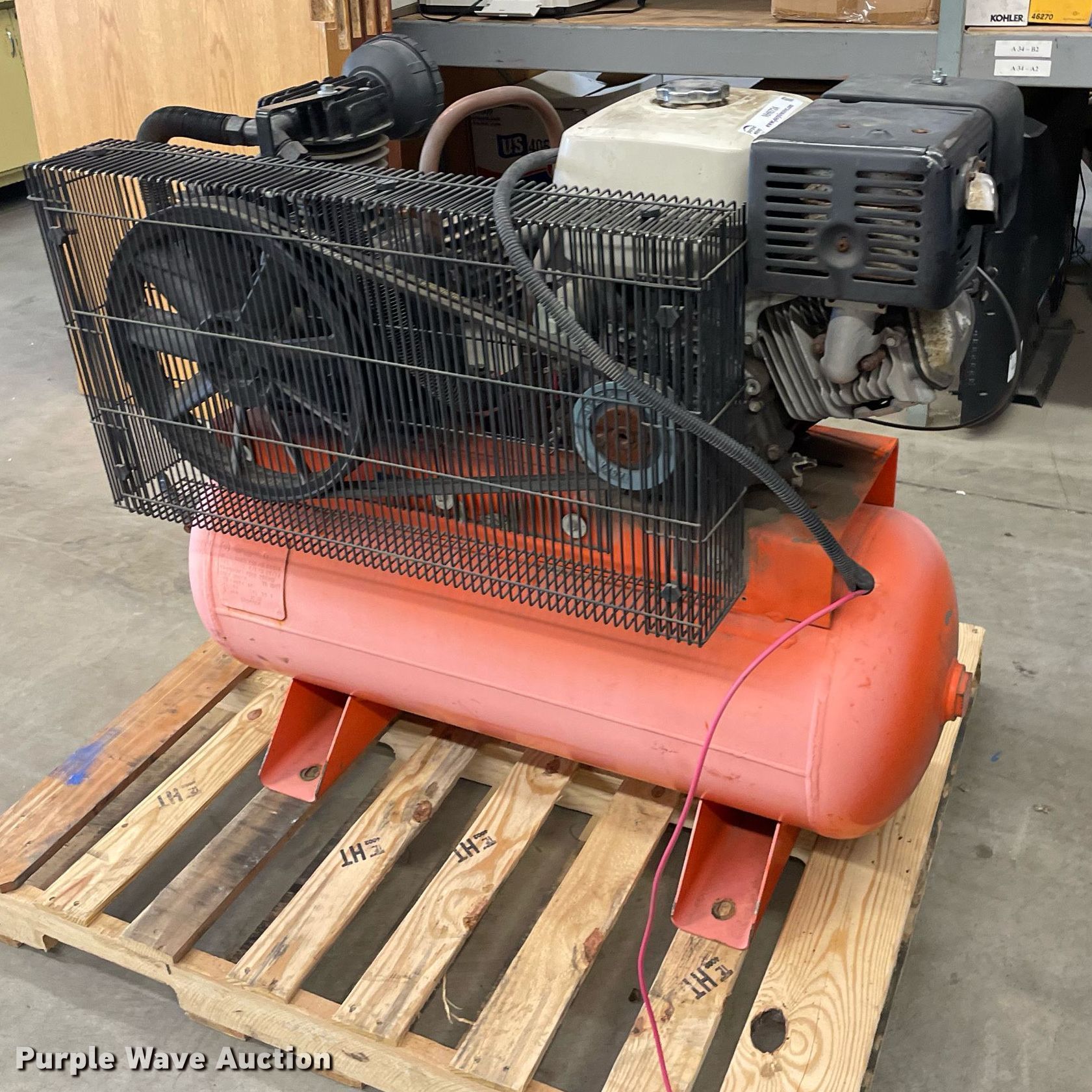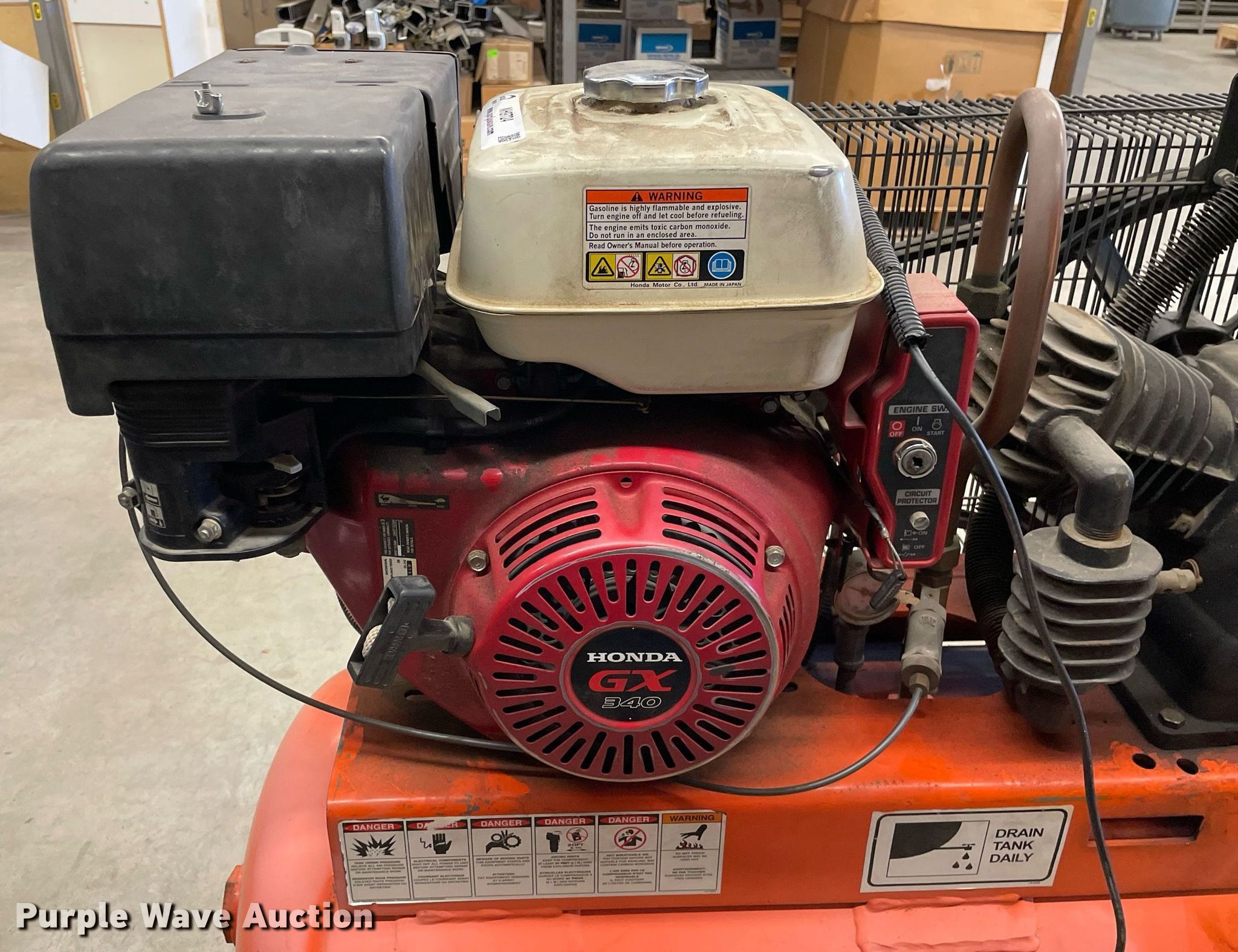 Devair 1S11-5530 air compressor. Serial: 58658. Engine Honda GX340, Displacement: 338 cc, Cylinders: 1. Features Air compressor Pump model: DEV-55, PSI: 150, Tank capacity: 33.1 gallons. Notes Battery not included. Wichita State University. 1845 N Fairmount Box 23. Wichita, KS 67260