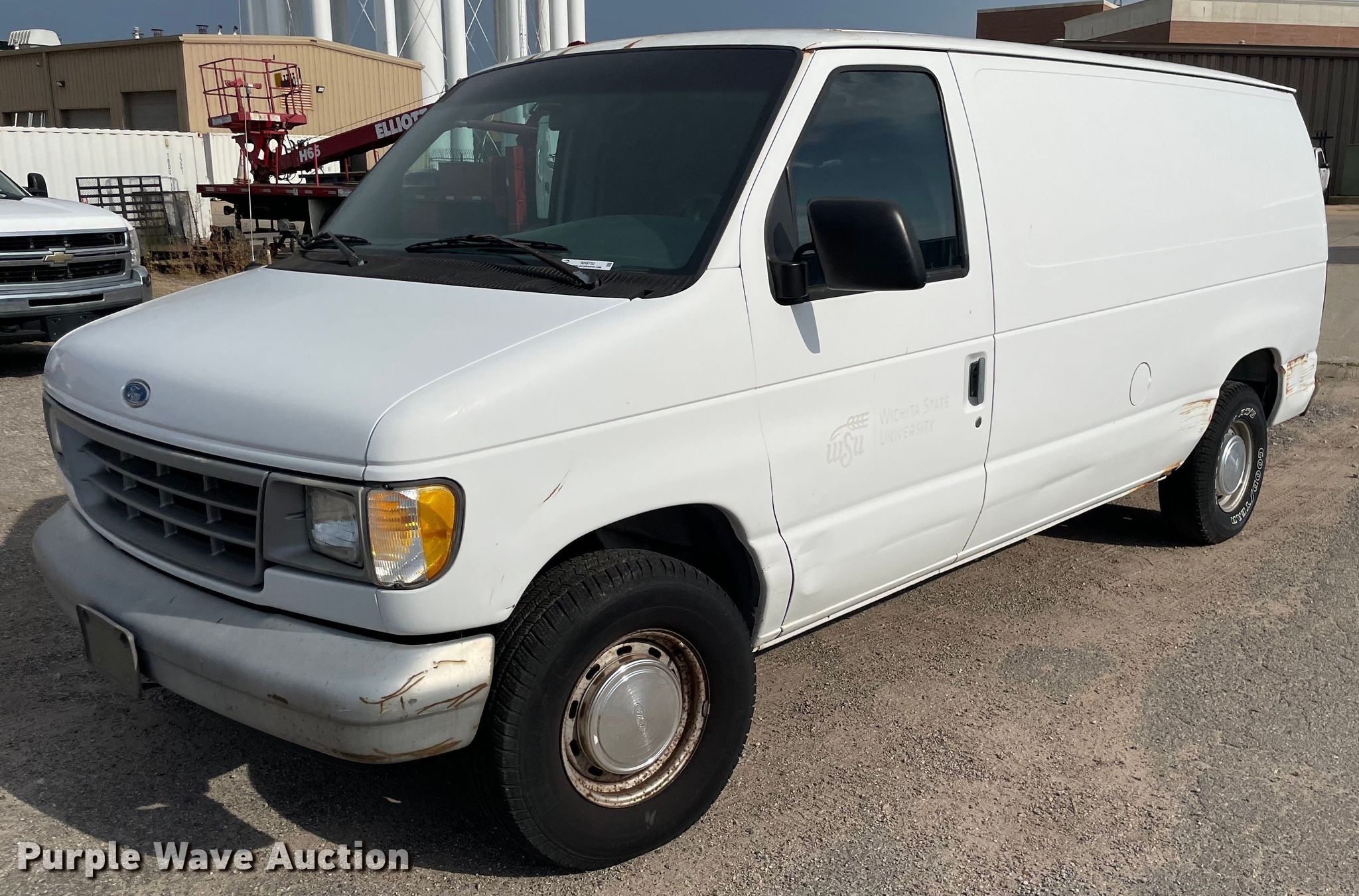 1996 Ford Econoline 150 van. Miles: 39,366 on odometer, VIN: 1FTEE14H0THA97770. Engine Displacement: 5.8L V8 OHV, Cylinders: 8, Fuel type: Gas. Transmission Automatic. Interior AC, Heat, Cruise control. Tires Size: 235/75R15. Notes Sliding door latch issues, Rear door latch issues, Unknown operating condition of AC. Kansas title. Title distribution may be delayed up to 14 days from verification of funds. Wichita State University. 1845 N Fairmount Box 23. Wichita, KS 67260
