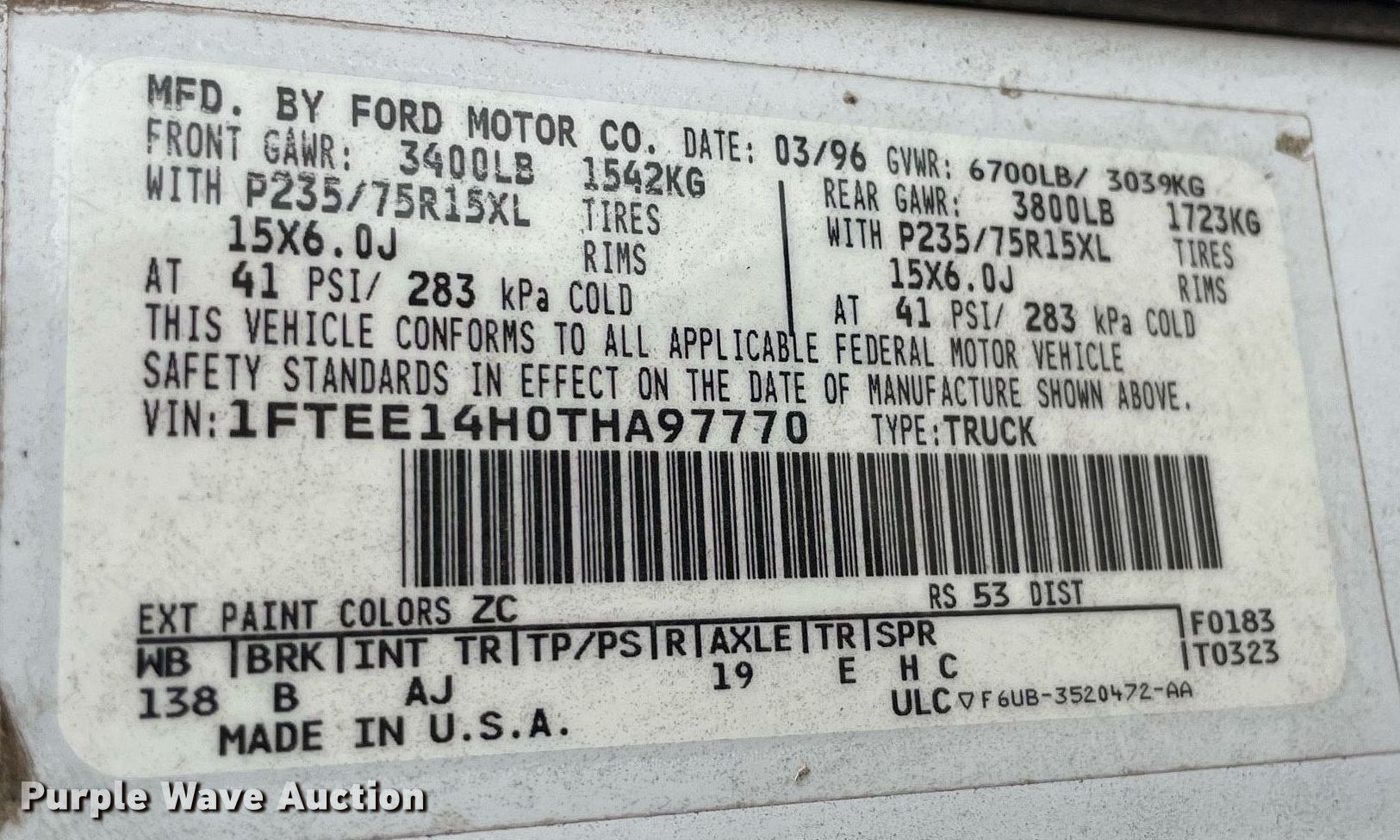 Purple Wave is selling a used 1/2 Ton Pickup or Van in Kansas. This item is a 1996 Ford Econoline 150 van with the following: Miles: 39,366 on odometer, VIN: 1FTEE14H0THA97770