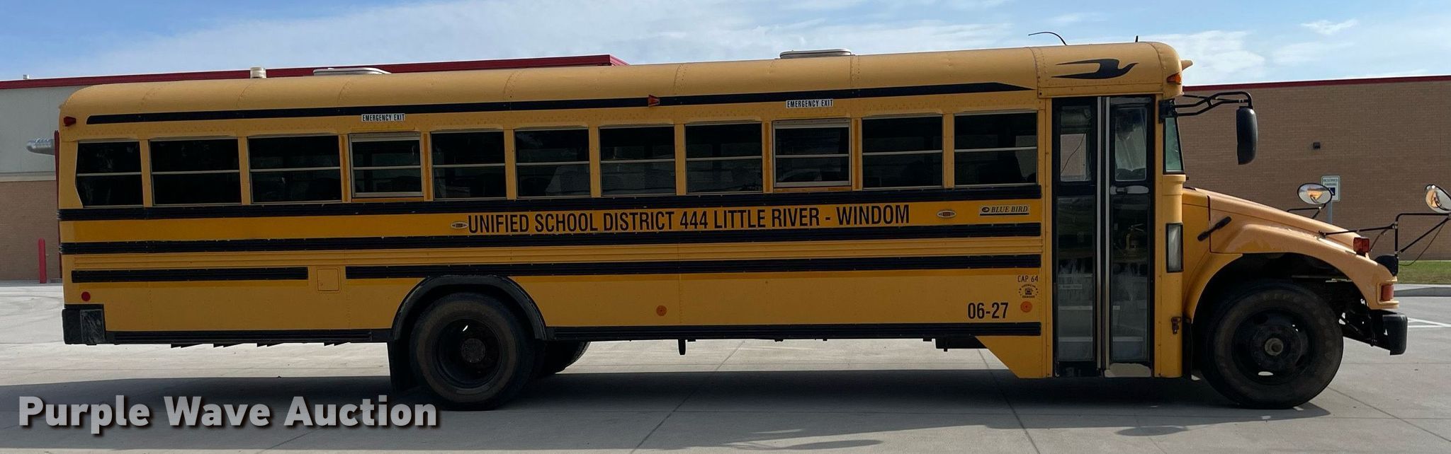 Purple Wave is selling a used Bus in Kansas. This item is a 2005 Blue Bird school bus with the following: Miles: 283, 274 on odometer, VIN: 1BAKFCKH55F218235, Unit #: 06-27