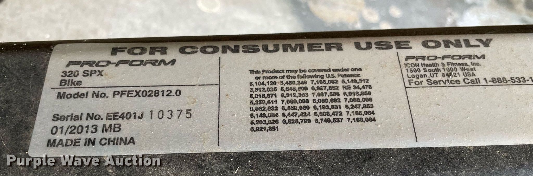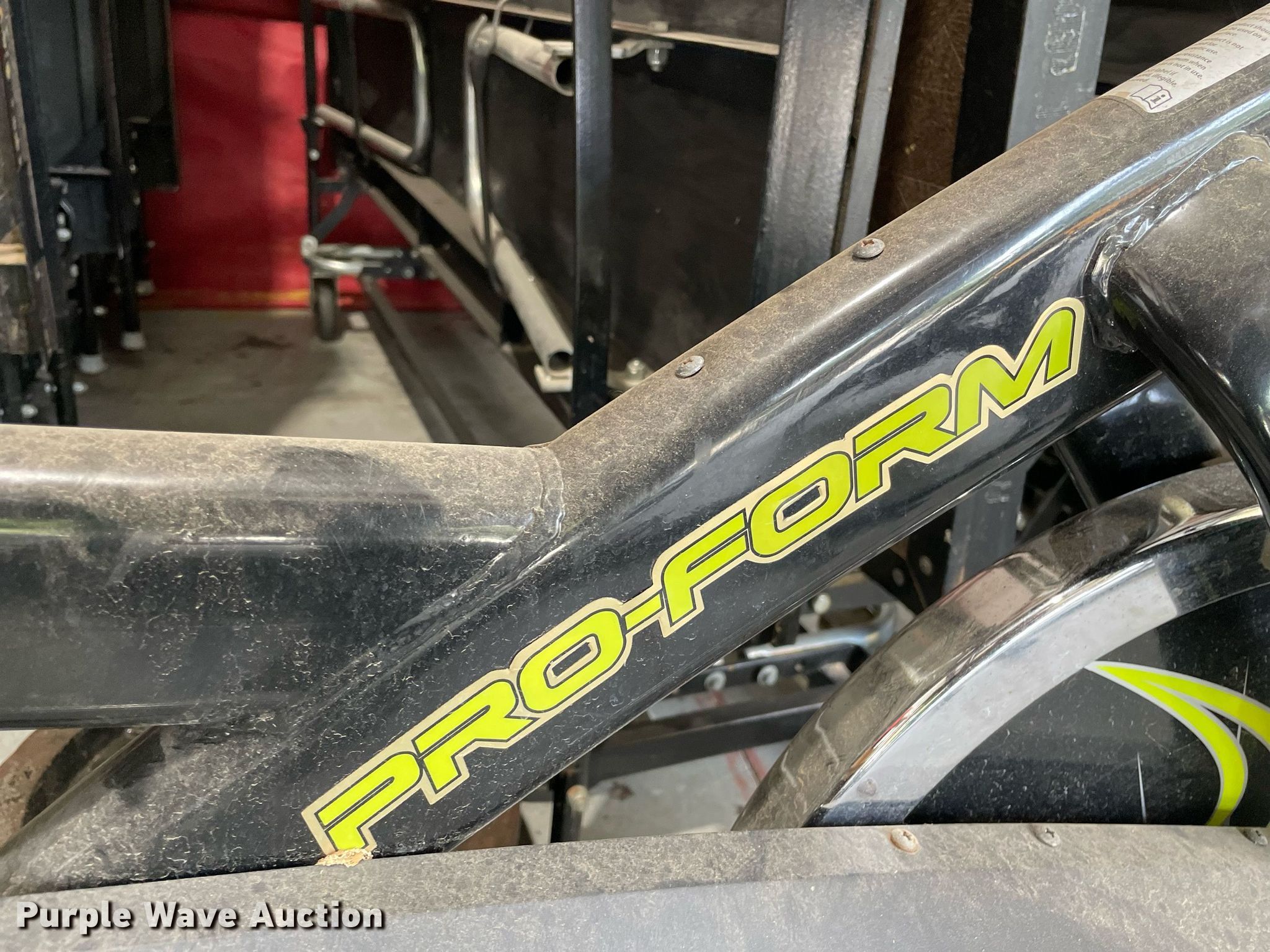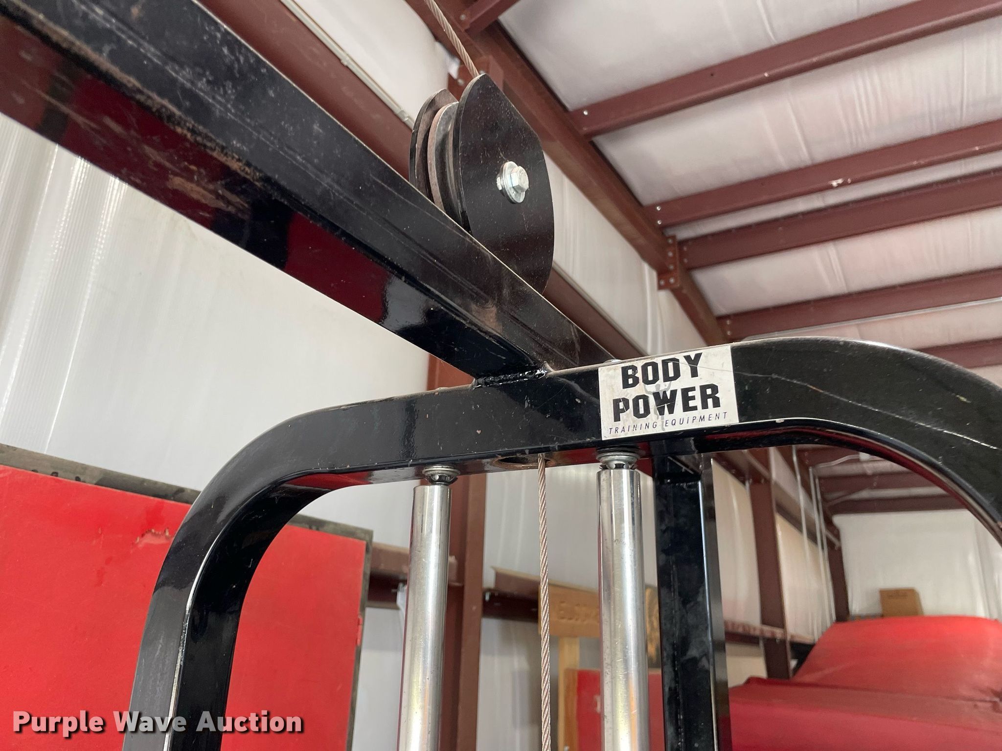 Purple Wave is selling a used Sporting Goods in Kansas. This item is a Exercise equipment with the following: Body Power lat pull down machine, Cable crossover machine, Pro form 320 SPX spin bike, Dip station, Weight plates:, (5) 10 lbs, (6) 5 lbs, (5) 35 lbs, (10) dumbbells, (2) 80lb dumbbells not included