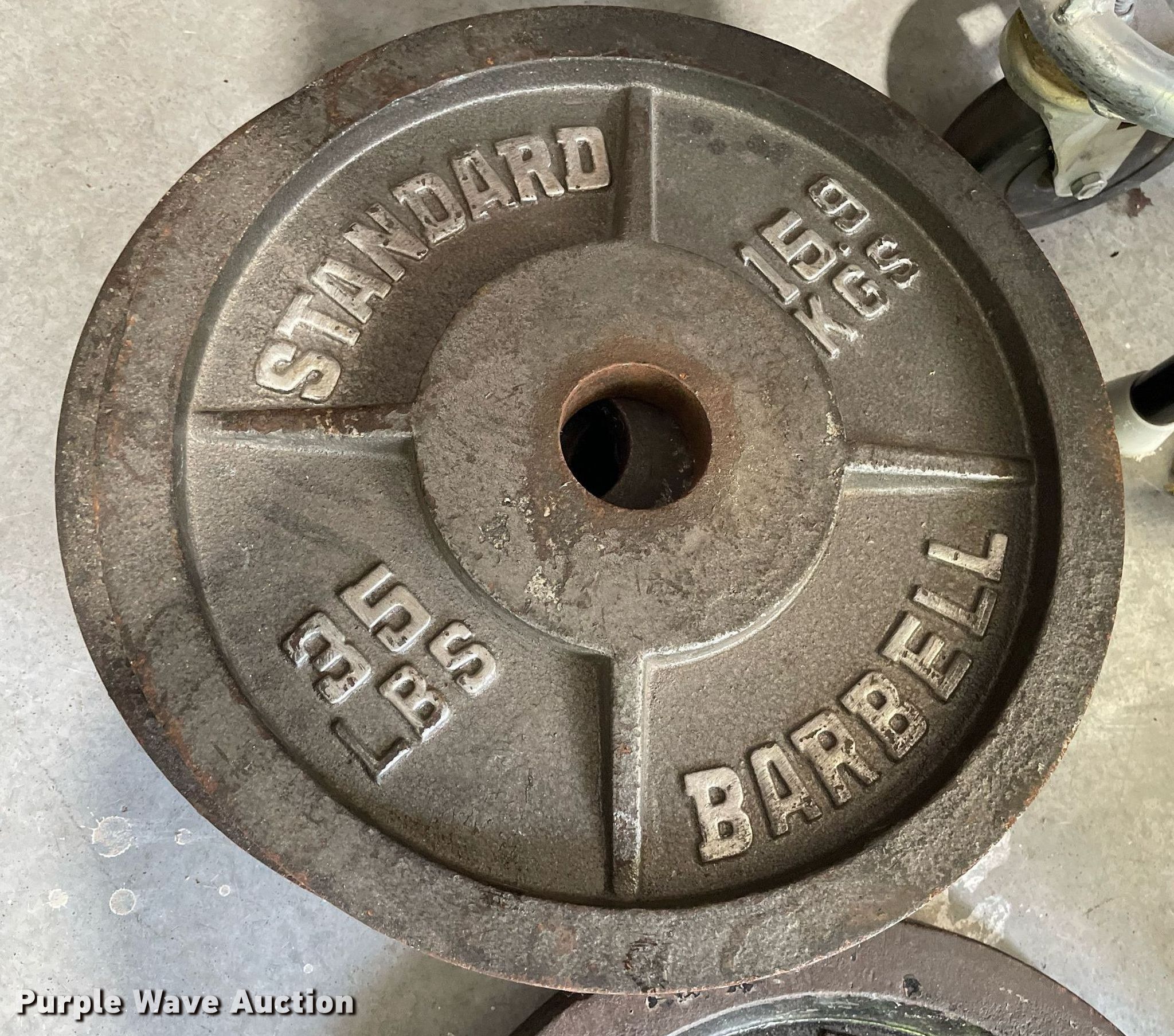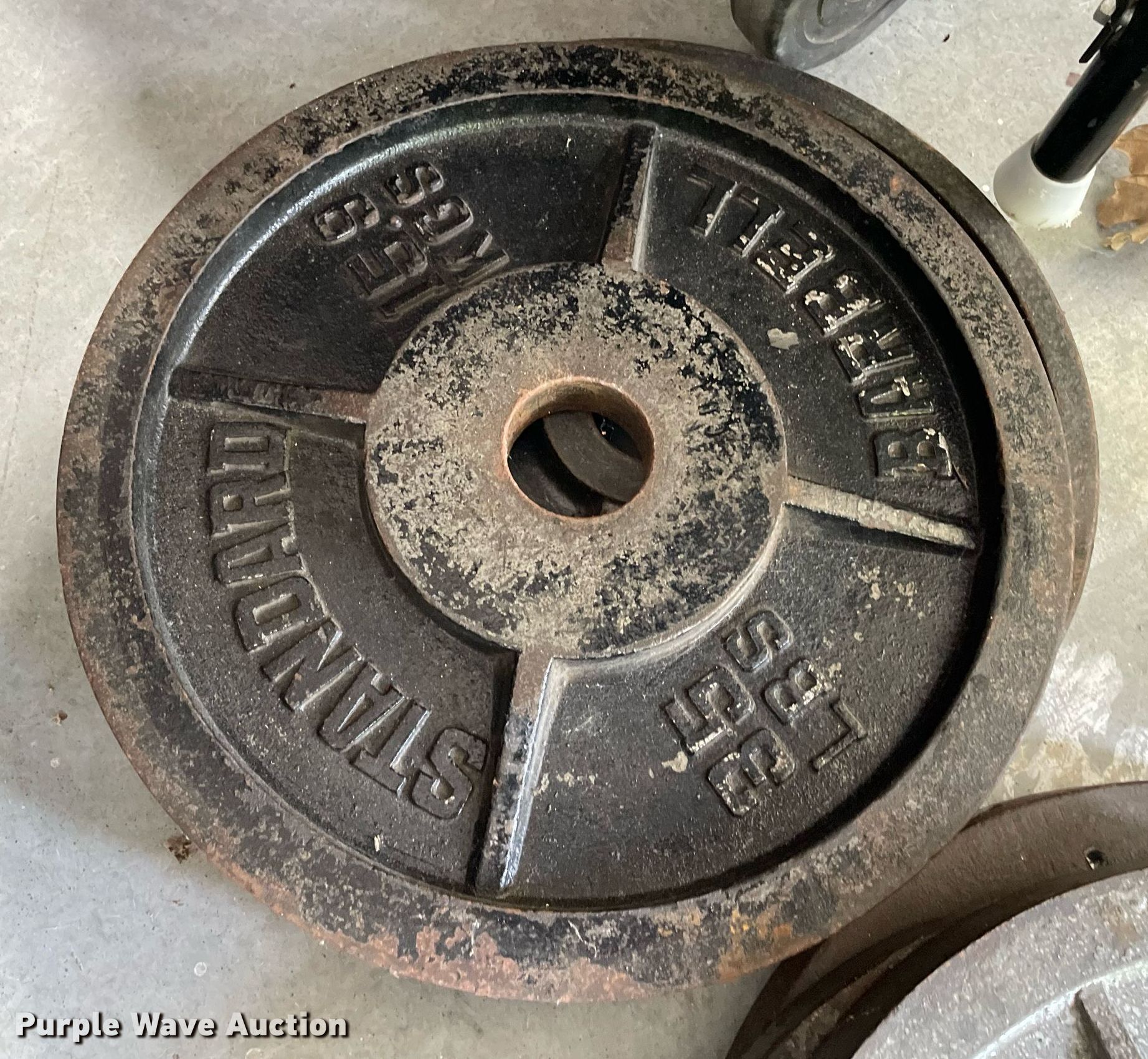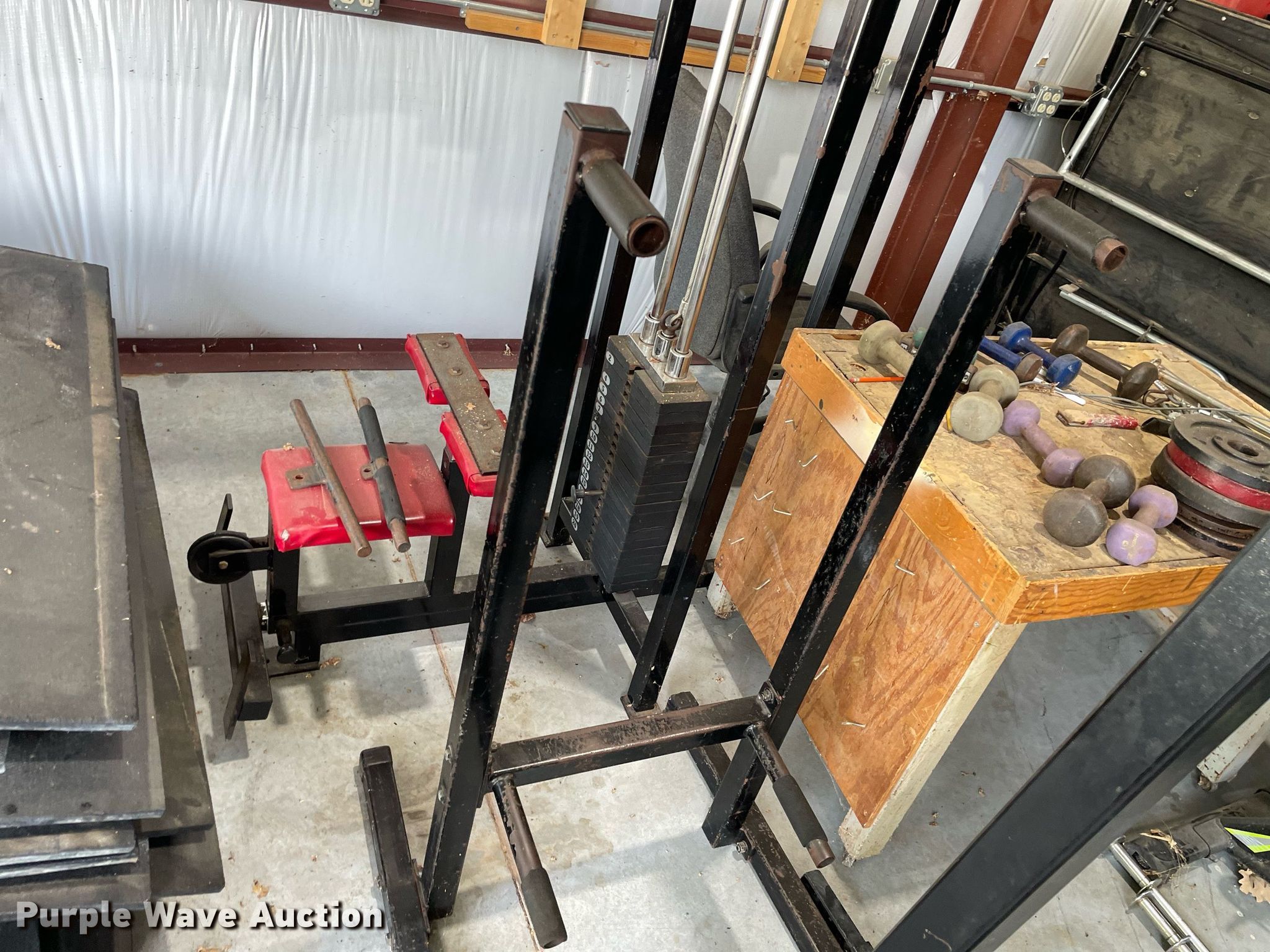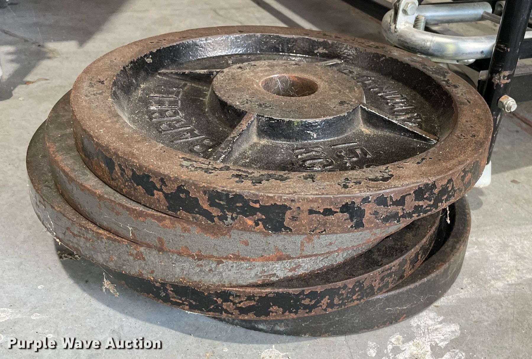Purple Wave is selling a used Sporting Goods in Kansas. This item is a Exercise equipment with the following: Body Power lat pull down machine, Cable crossover machine, Pro form 320 SPX spin bike, Dip station, Weight plates:, (5) 10 lbs, (6) 5 lbs, (5) 35 lbs, (10) dumbbells, (2) 80lb dumbbells not included