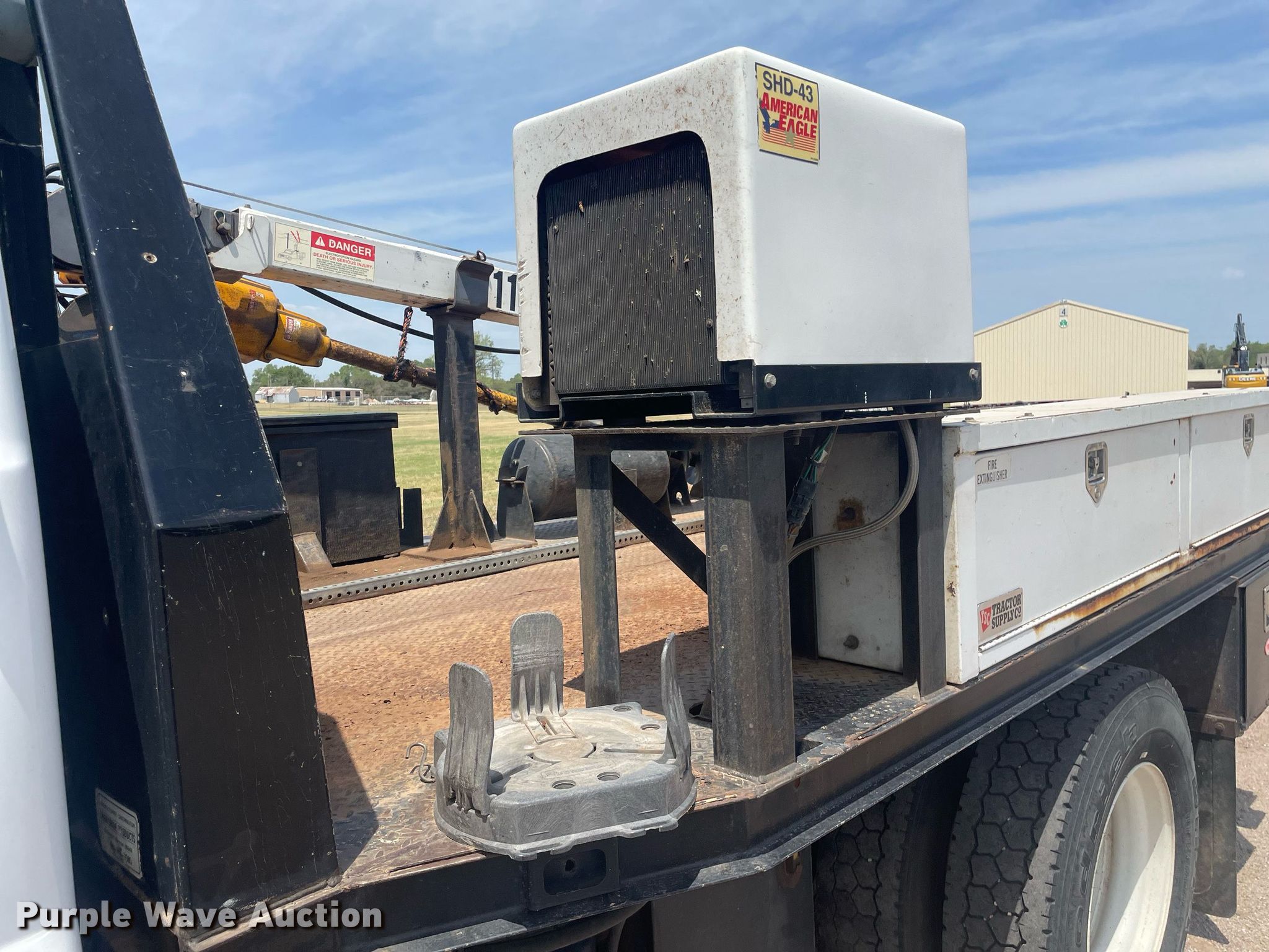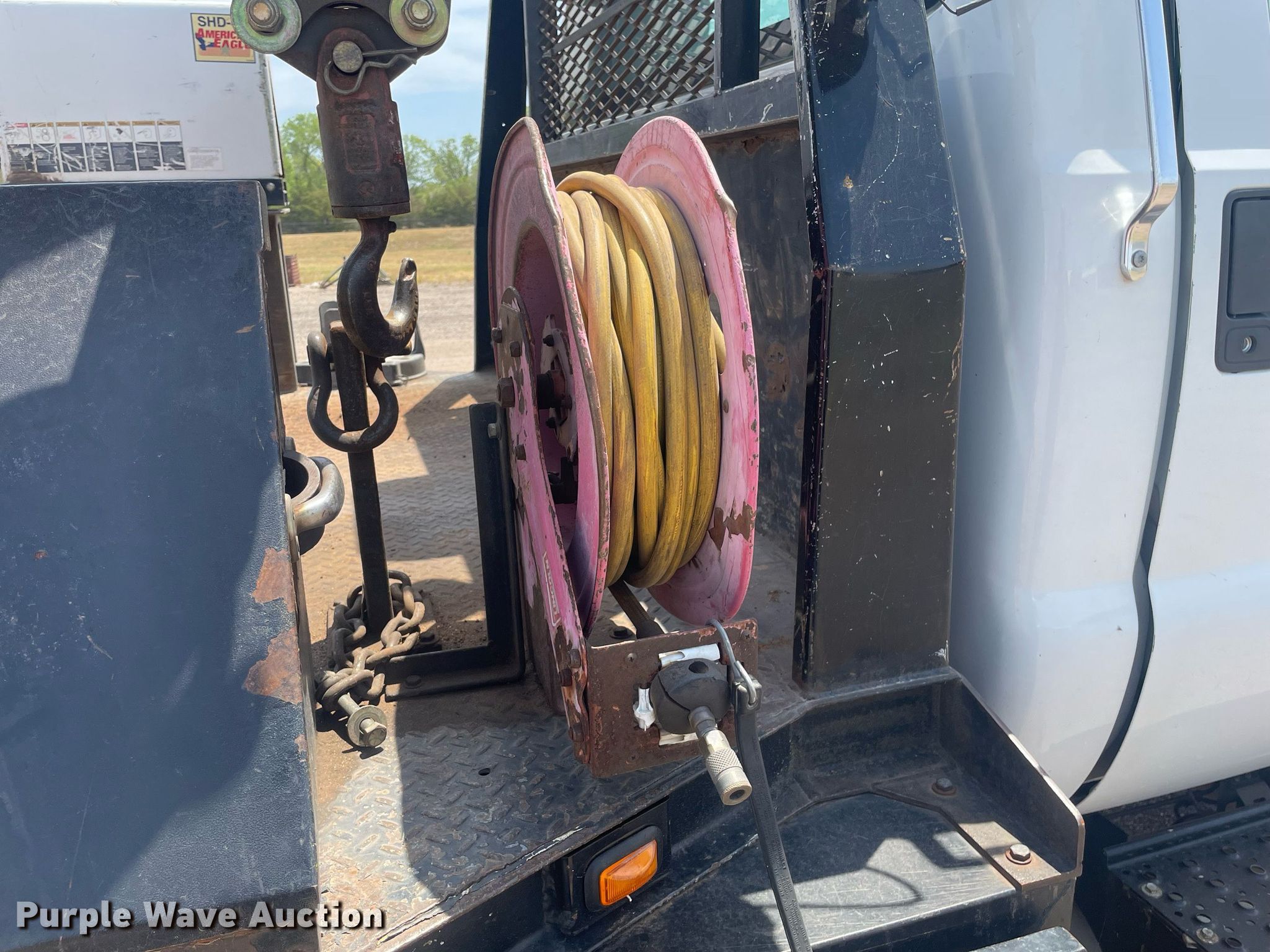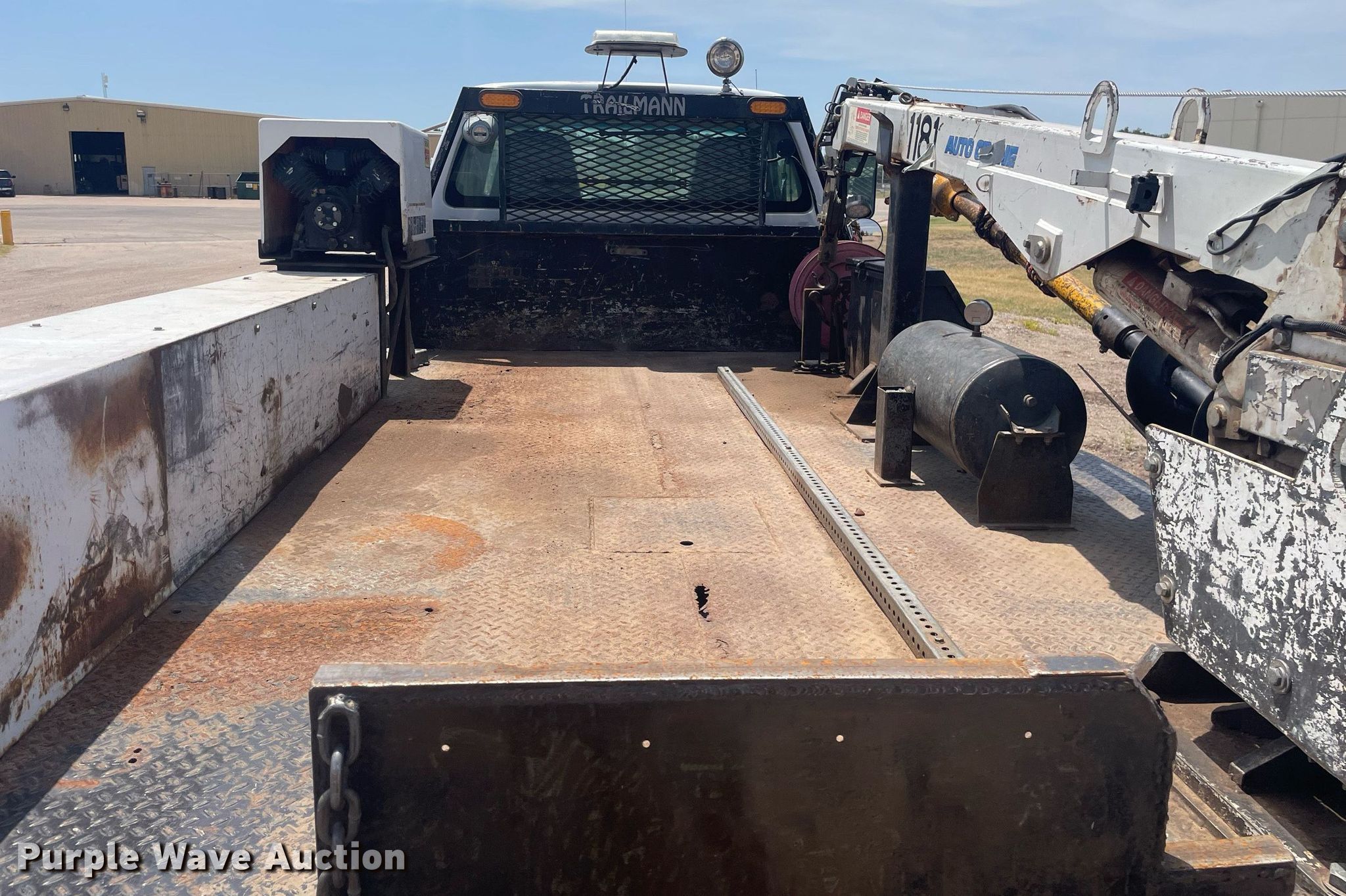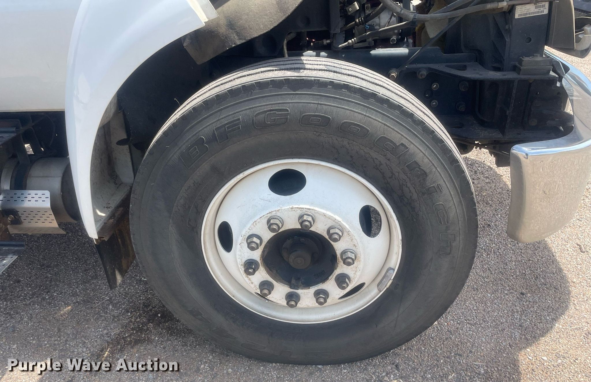 2008 Ford F650 Super Duty XL flatbed truck. Miles: 340,428 on odometer, VIN: 3FRWF65F78V688349. Engine Cummins, Displacement: 6.7L, Cylinders: 6, Fuel type: Diesel. Transmission Automatic. Chassis Axles: Single, Suspension: Spring, Brakes: Air, PTO, GVWR: 26,000 lbs FAWR: 8,500 lbs, RAWR: 1,750 lbs. Interior AC, Heat, Cruise control. Features Flatbed Mann Made Products , 12' 7" L x 96" W, Crane Auto Crane 4004H, Boom Telescopic, Sections: 3, Maximum lift capacity: 4,000 lbs, Boom controls Ground, Remote control, Crane block, Lift chart, Danuser auger Diameter: 9", American Eagle SHD-43 air compressor. Tires Size: 11R22.5. Notes Intermittent gauge cluster issues. Kansas title. Title distribution may be delayed up to 14 days from verification of funds. Seller is a government entity who will be assigning and distributing the title. Please contact the seller for distribution questions. Reno County. 600 Scott Blvd. South Hutchinson, KS 67505