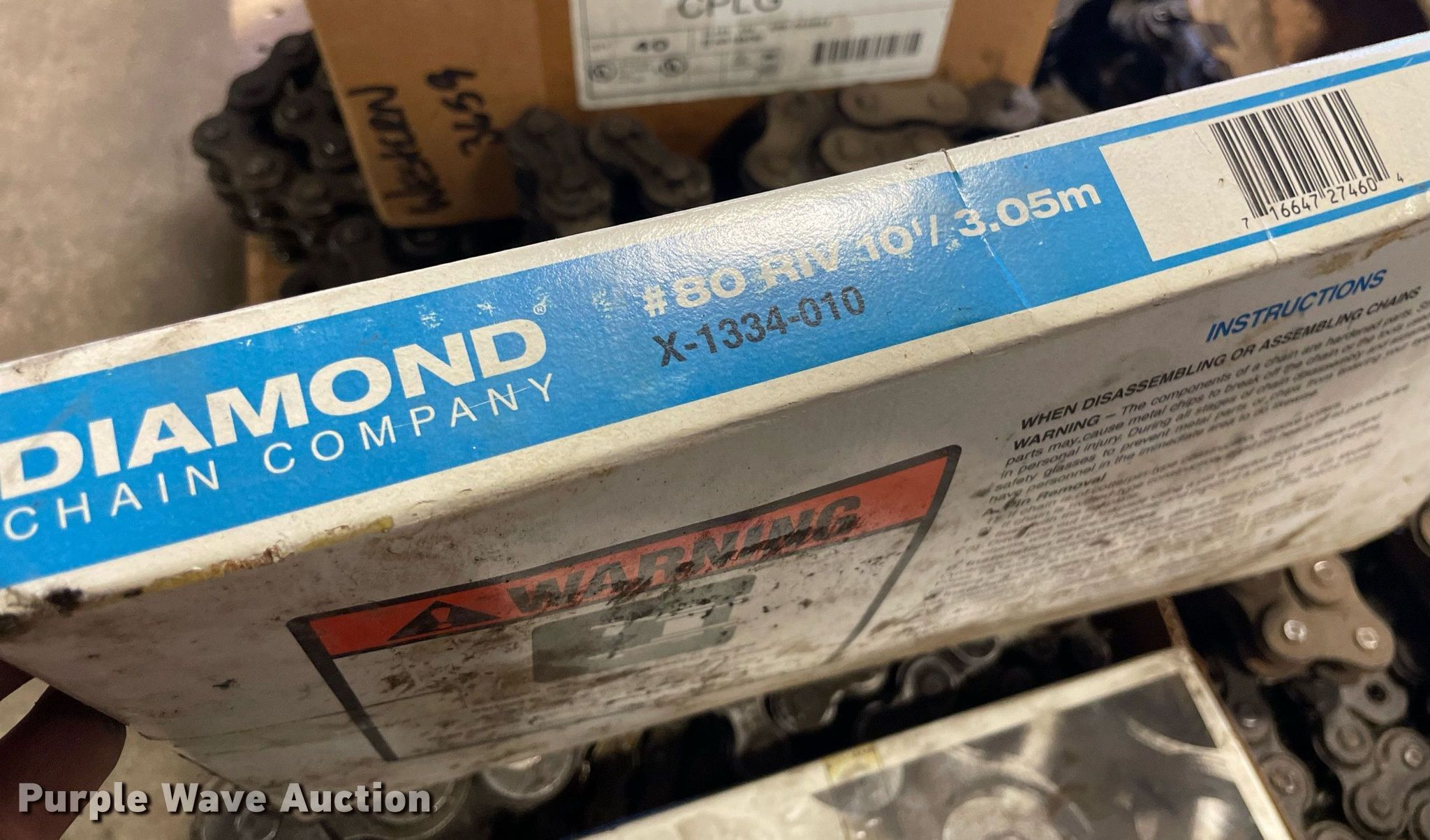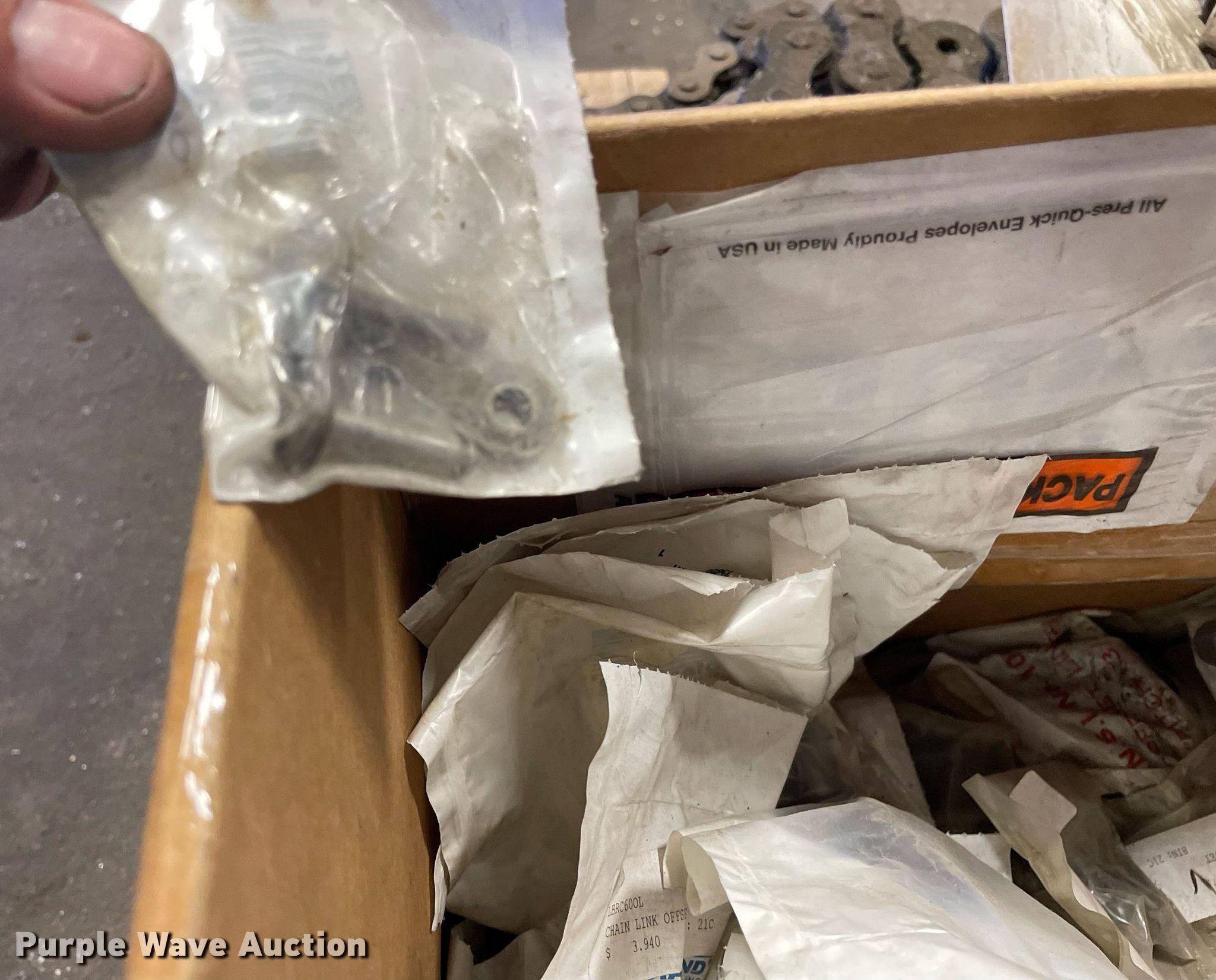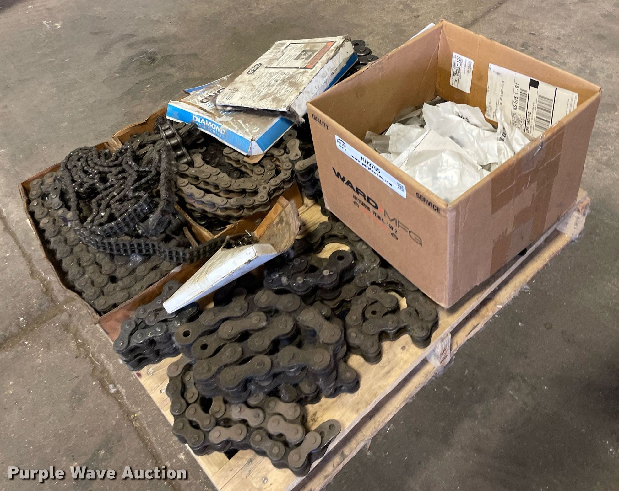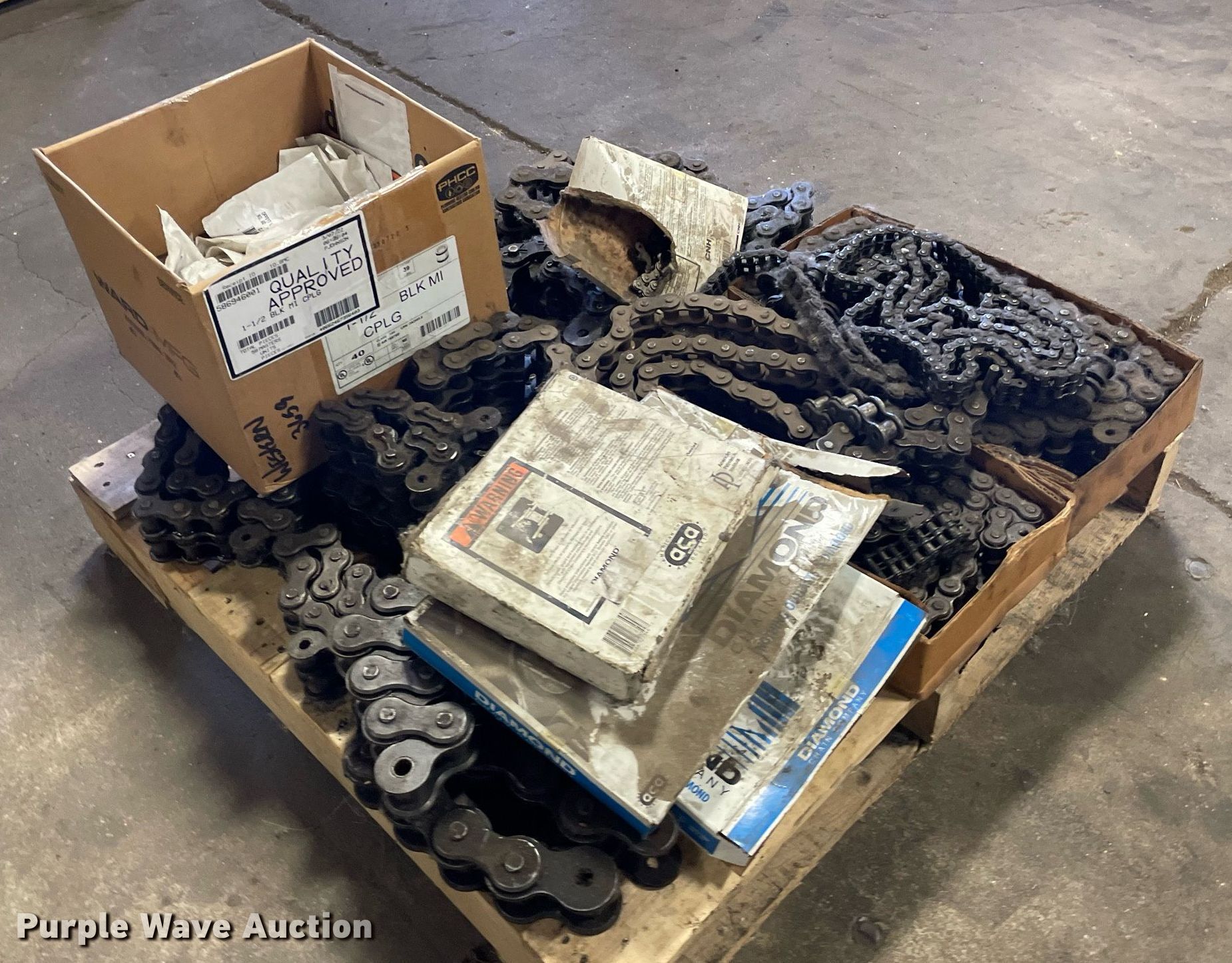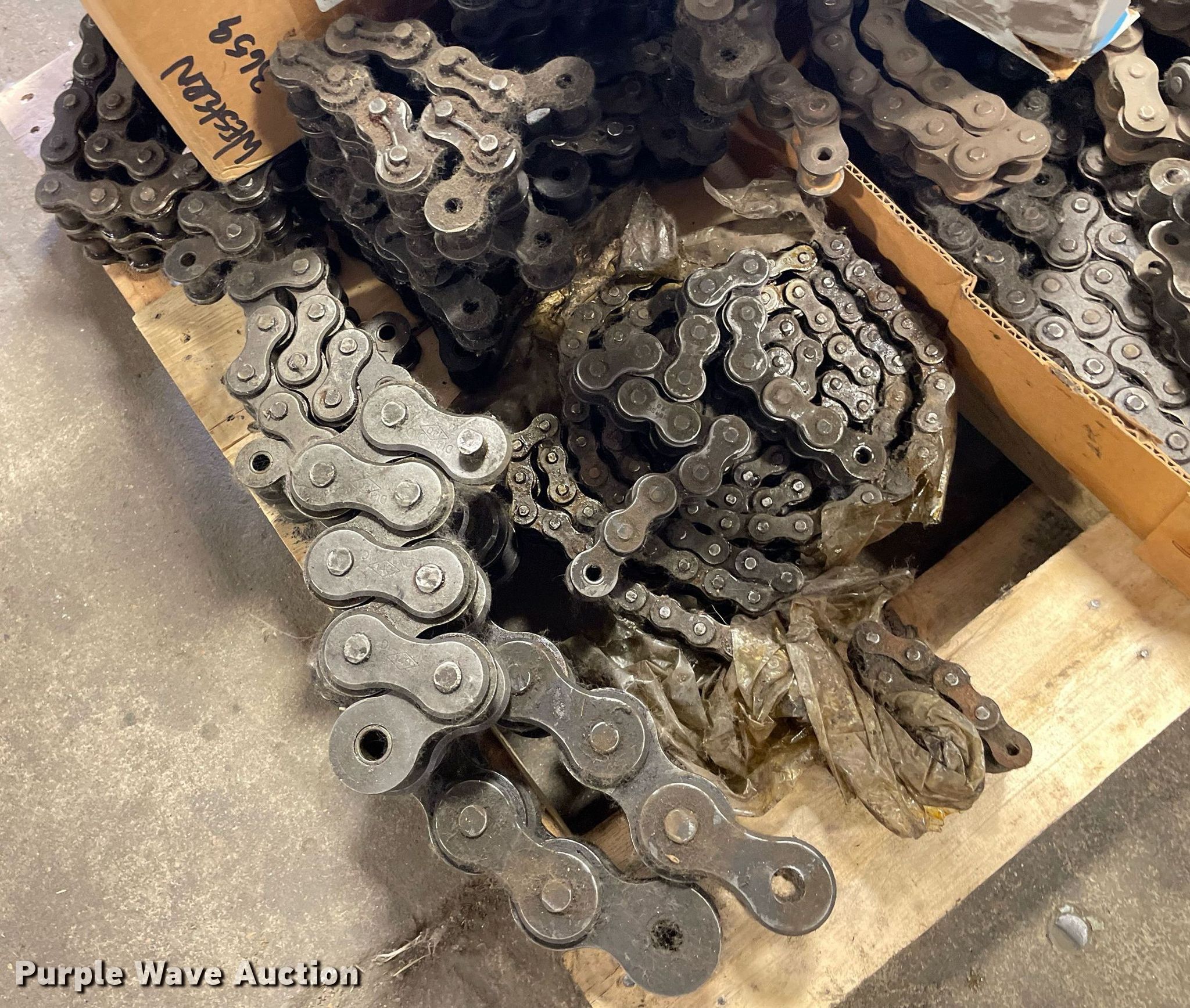 Purple Wave is selling a used Tools in Kansas. This item is a Pallet of conveyor chains with the following: Connectors