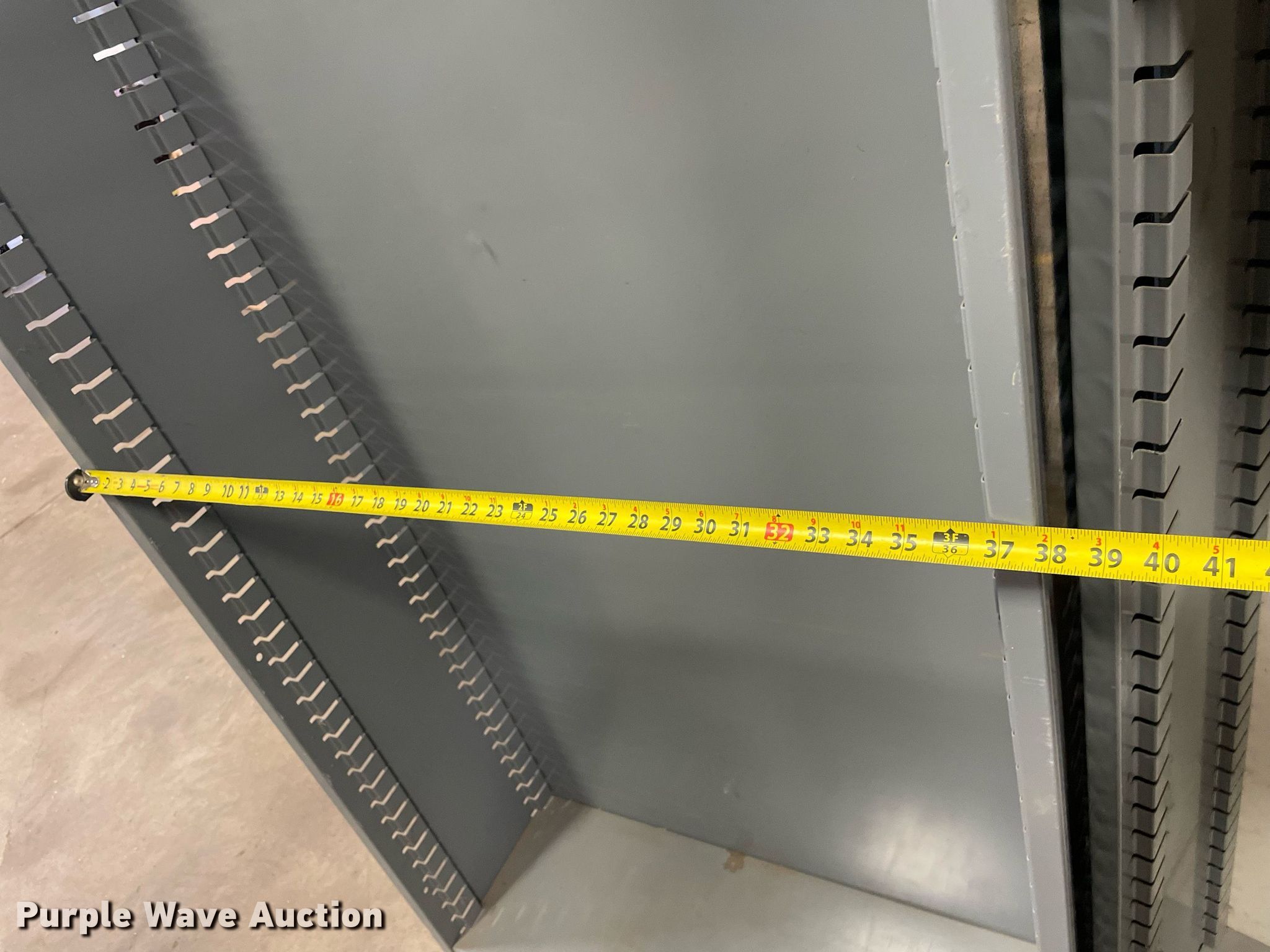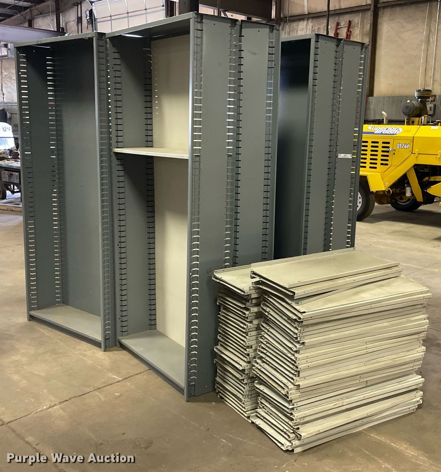 Purple Wave is selling a used Furniture in Kansas. This item is a (4) shelving units with the following: 24" L x 38" W x 7' H