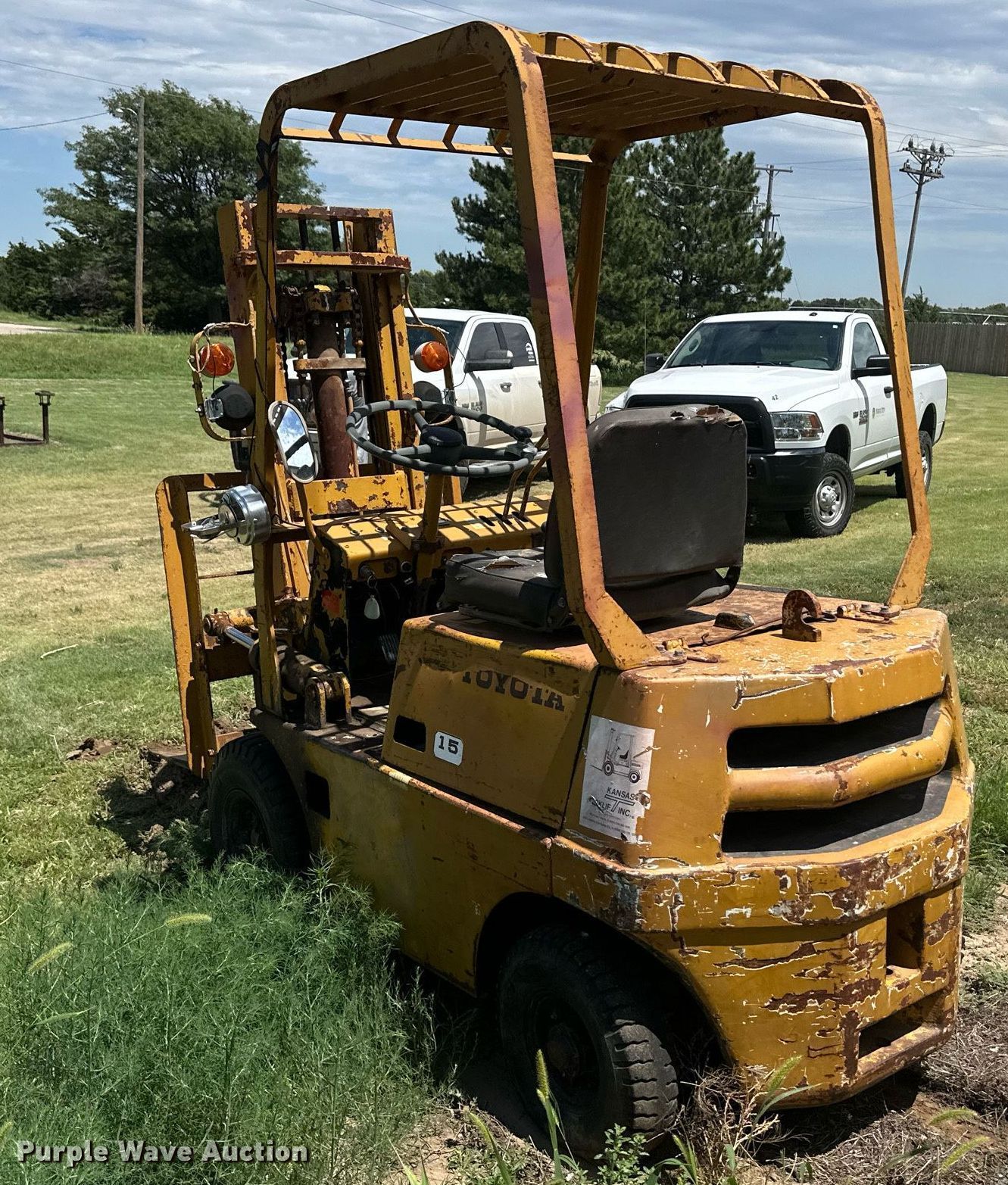 Take a look at this used Toyota forklift being sold on August 22nd, 2023 in the SOLD! August 22 Government Auction made by Toyota. Take a look at all of the item information below or take a look at similar auctions for Cushion Tire or Pneumatic Forklift.