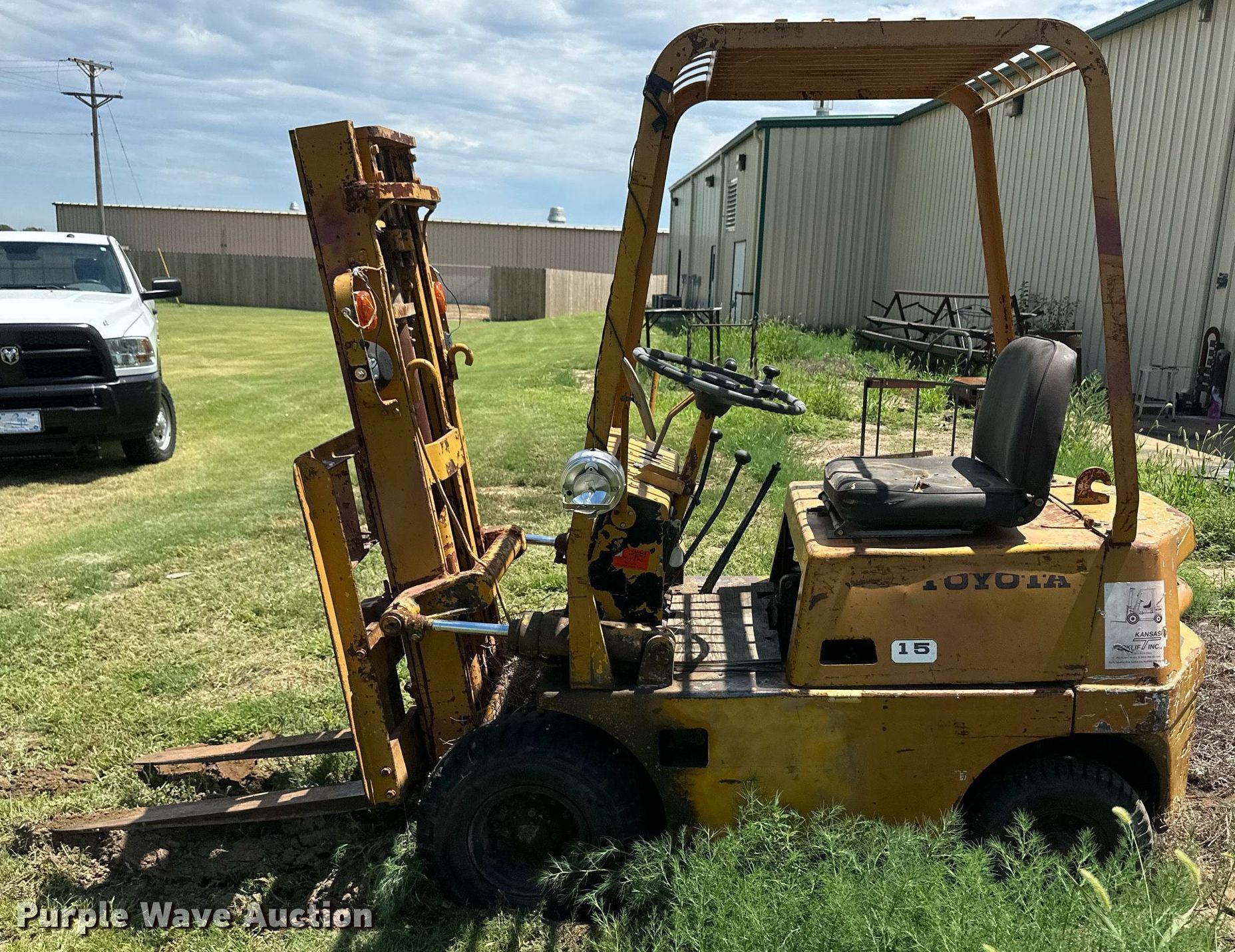 Purple Wave is selling a used Cushion Tire or Pneumatic Forklift in Kansas. This item is a Toyota forklift with the following: Hours: 389 on meter