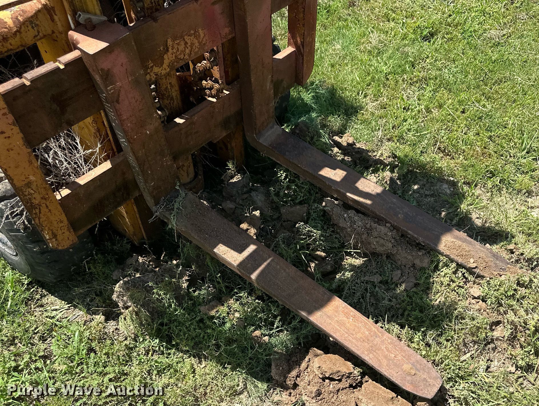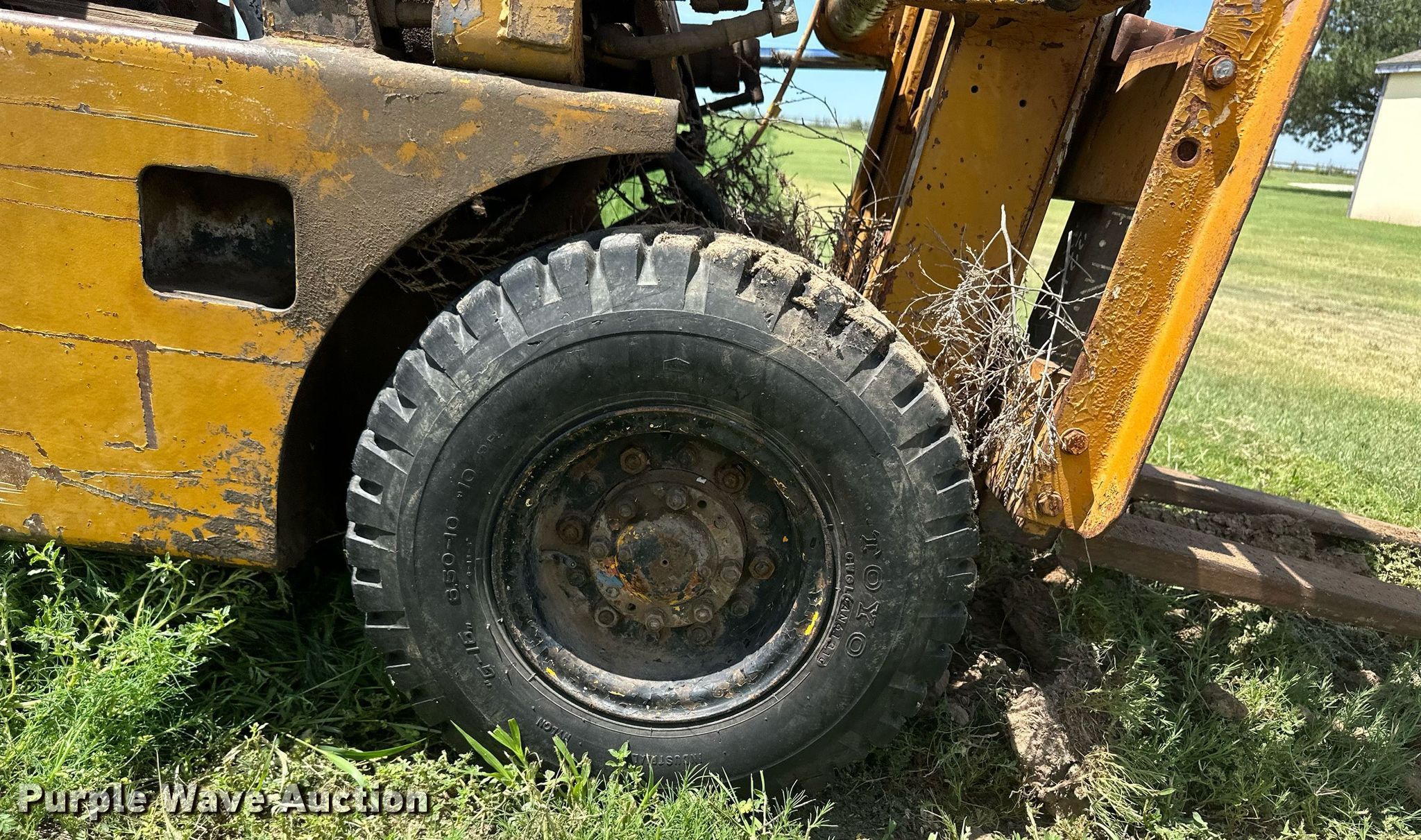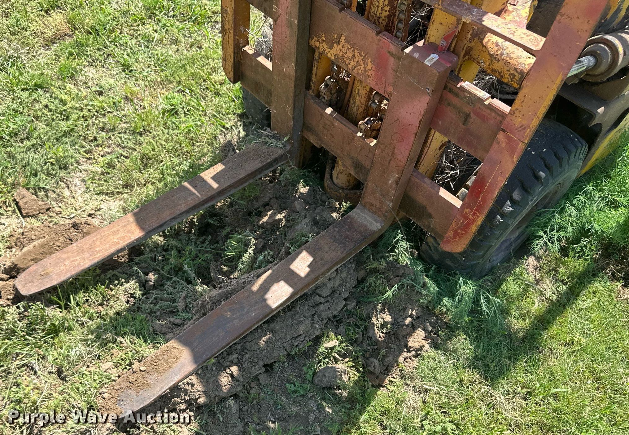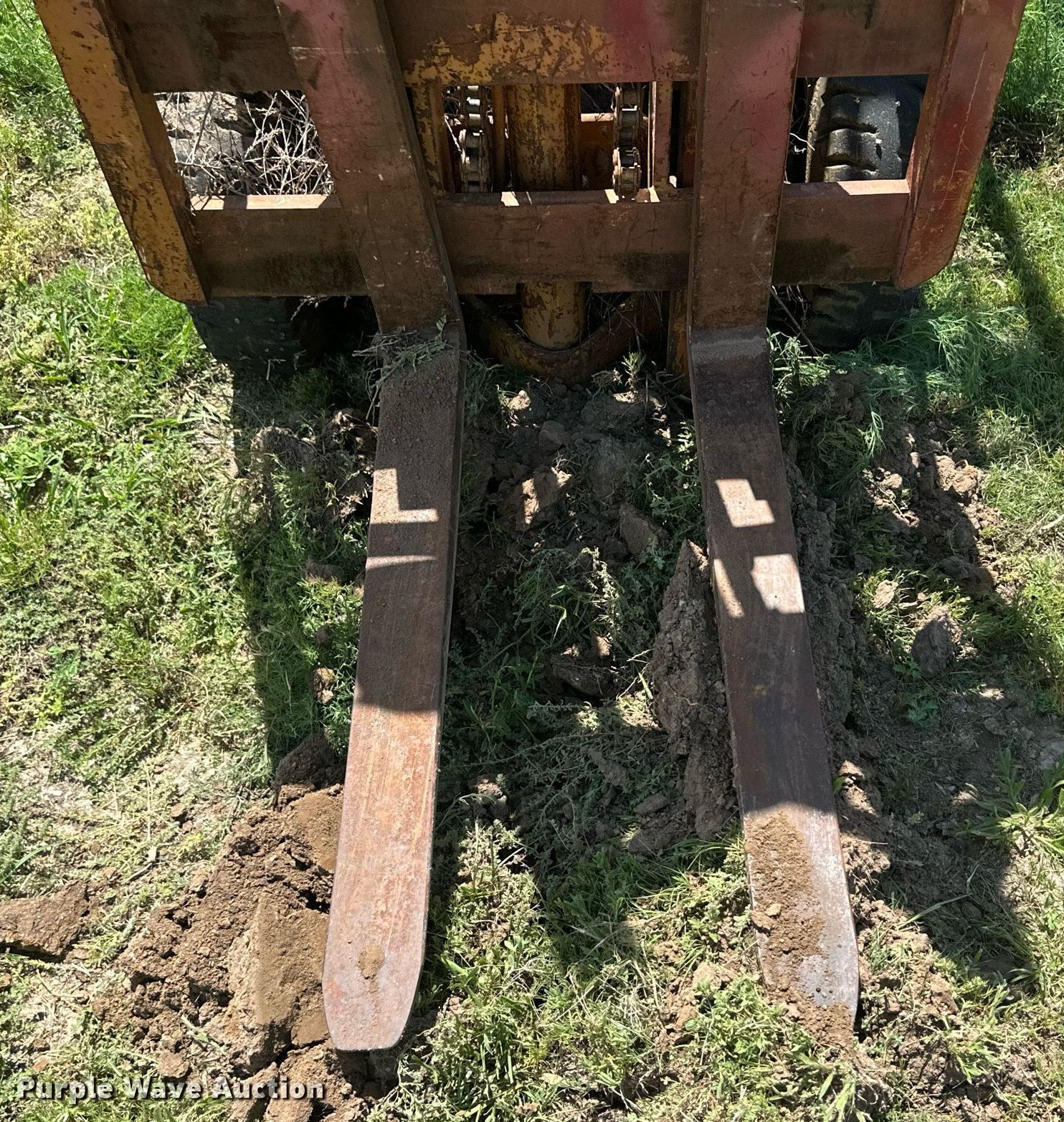 Toyota forklift. Hours: 389 on meter. Engine Cylinders: 4, Fuel type: Gas. Transmission Powershift, 2F - 2R. Operators station Canopy. Features Mast stages: 2, Mast tilt, Fork length: 36". Tires Front: 6.50-10, Rear: 5.00-8. Notes Fuel system issues, Non-operational unit. Dodge City Community College. 2501 N 14th Ave. Dodge City, KS 67801