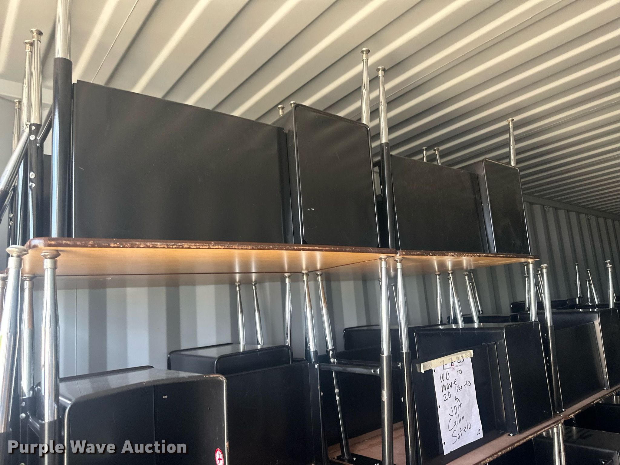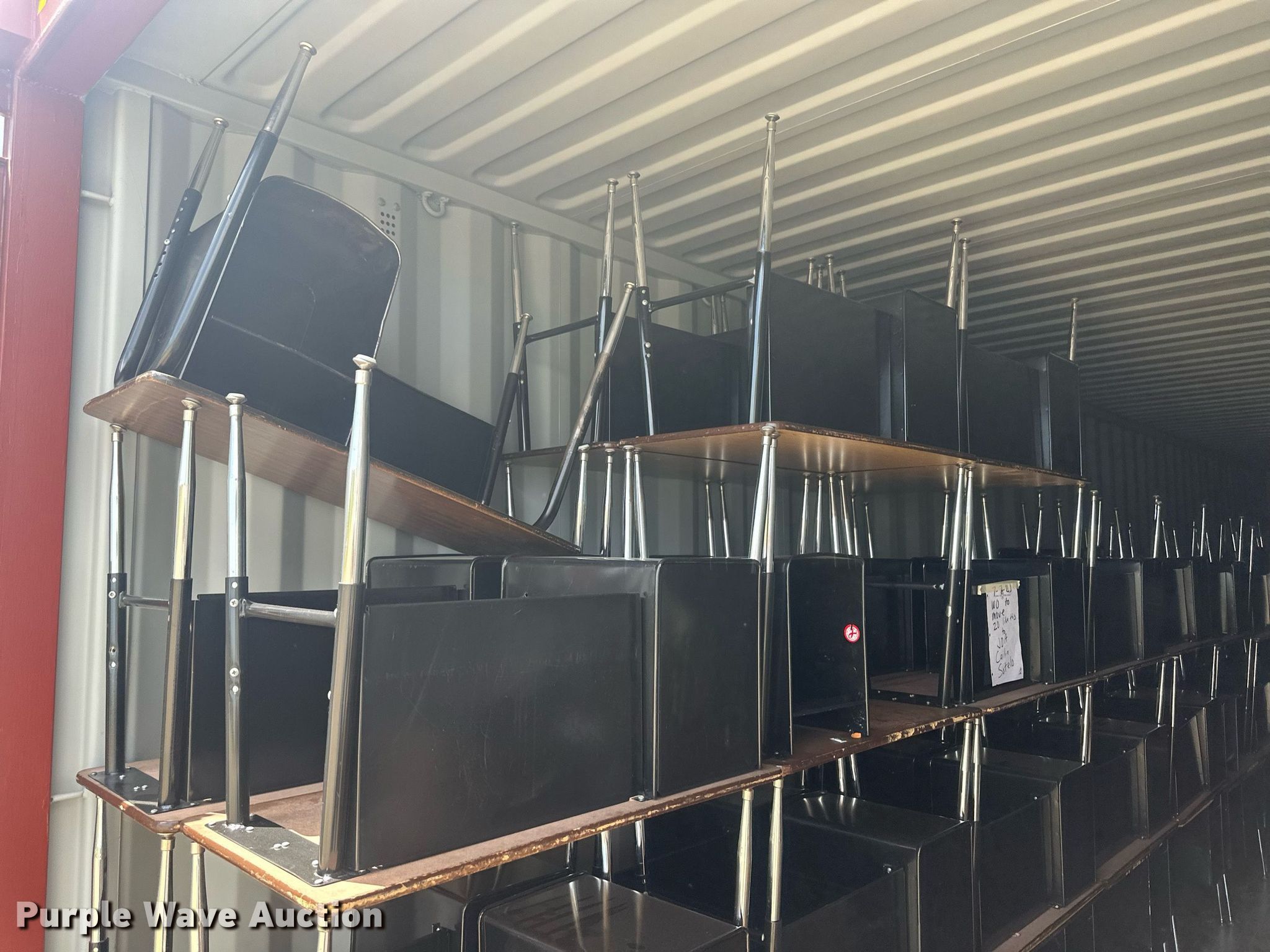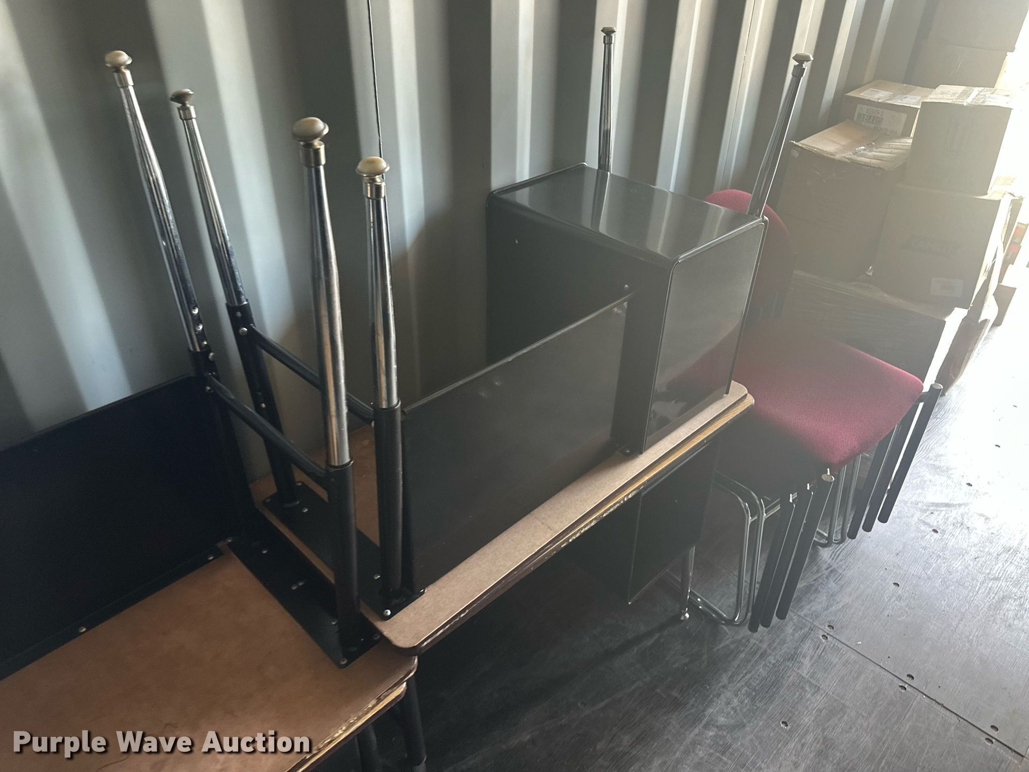Purple Wave is selling a used Storage or Shipping Container in Kansas. This item is a Storage container with the following: 38' L x 8' W x 9' 6" H, Approx. 55 desks, Approx. 40 telephones, PVC parts