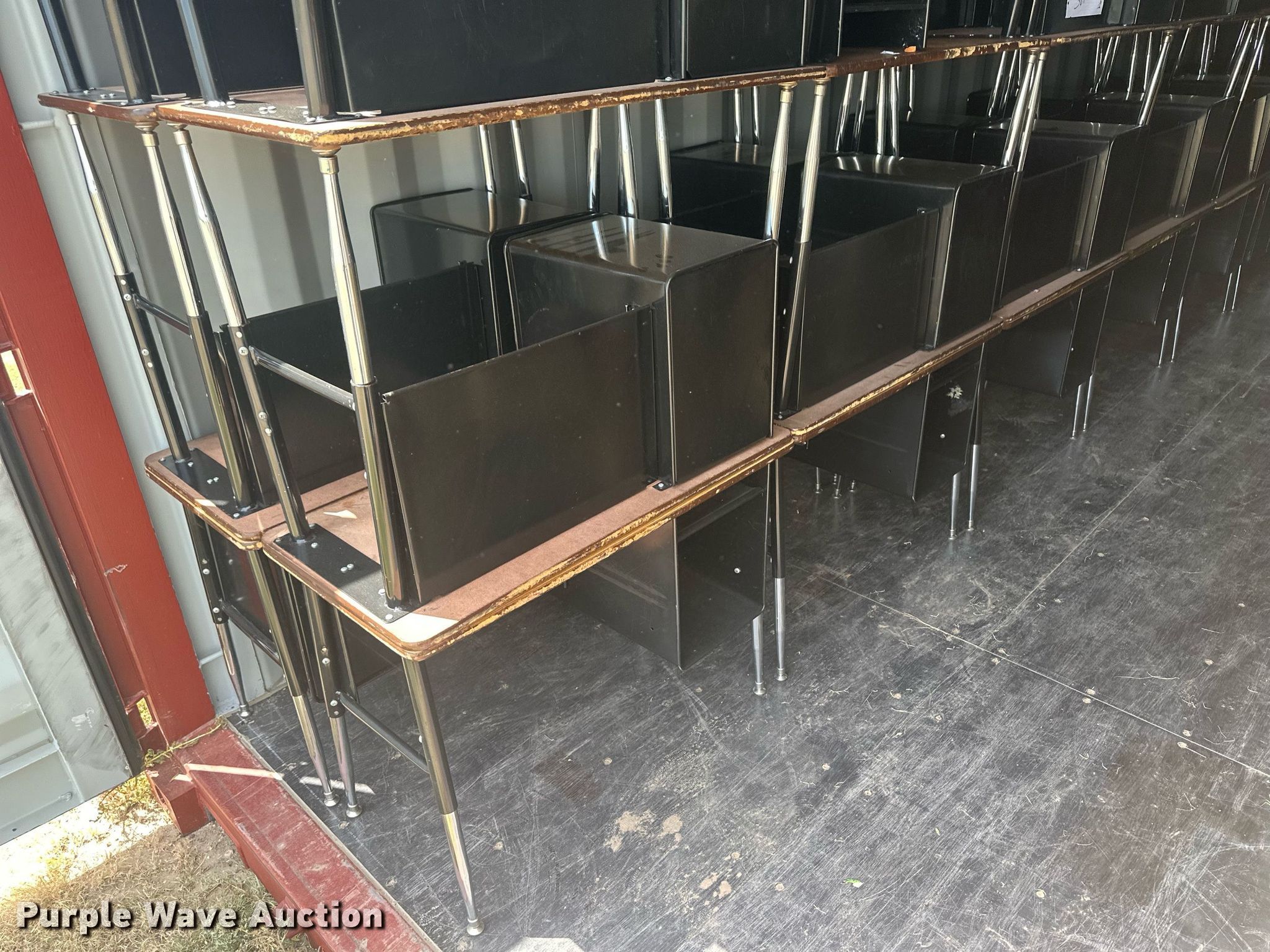 Storage container. 38' L x 8' W x 9' 6" H, Approx. 55 desks, Approx. 40 telephones, PVC parts. USD 457. 4665 U.S. 50. Garden City, KS 67846