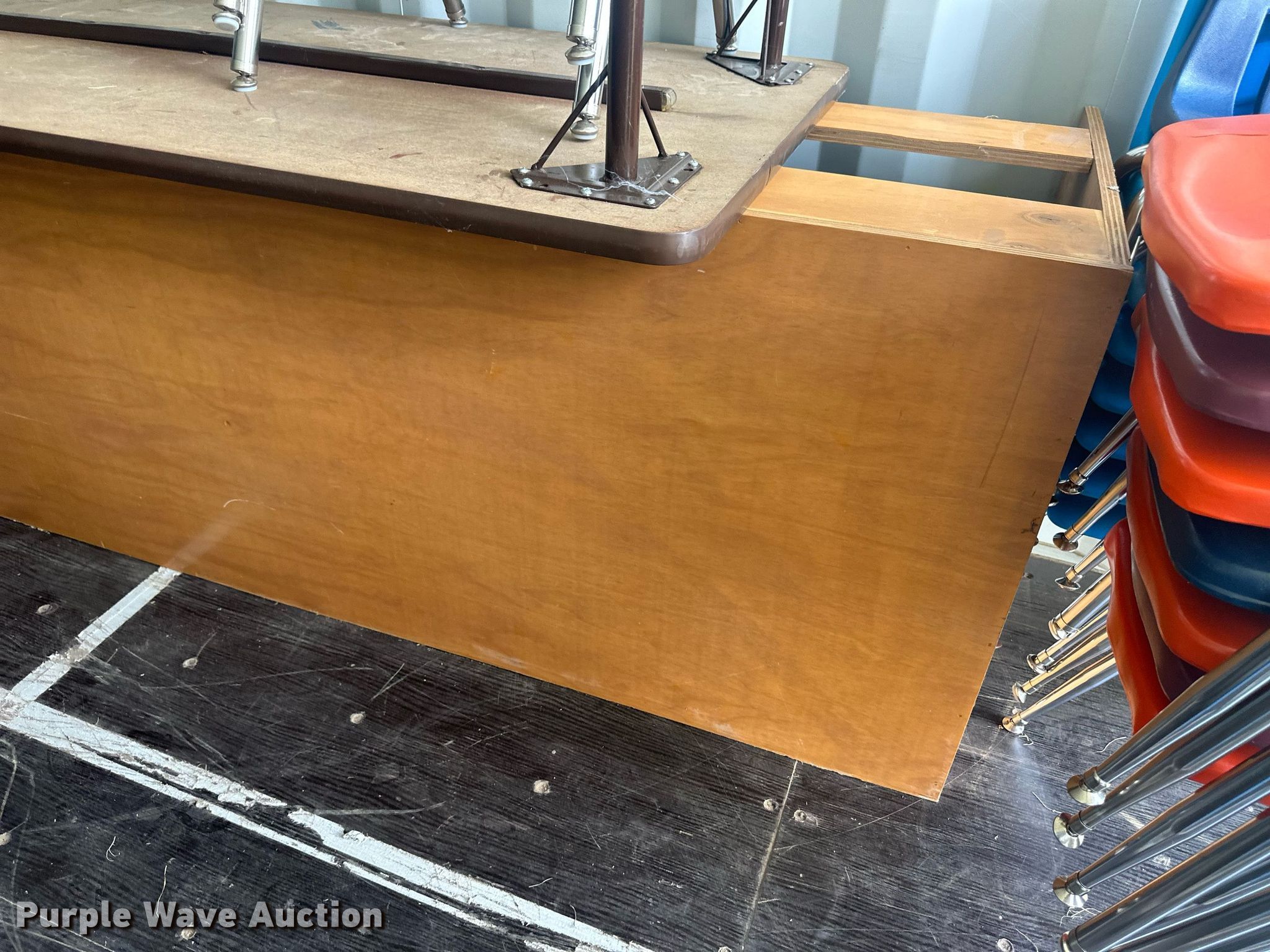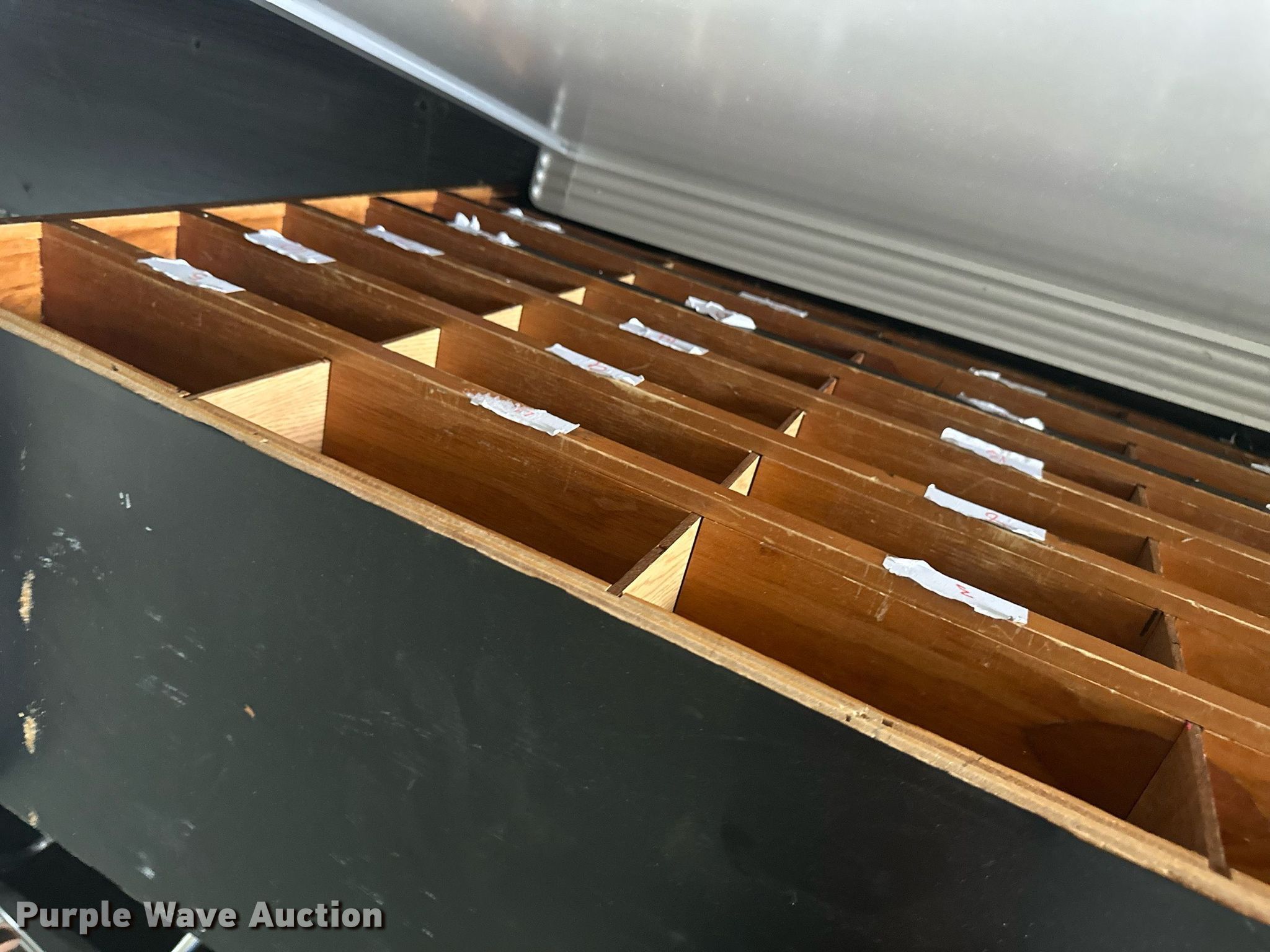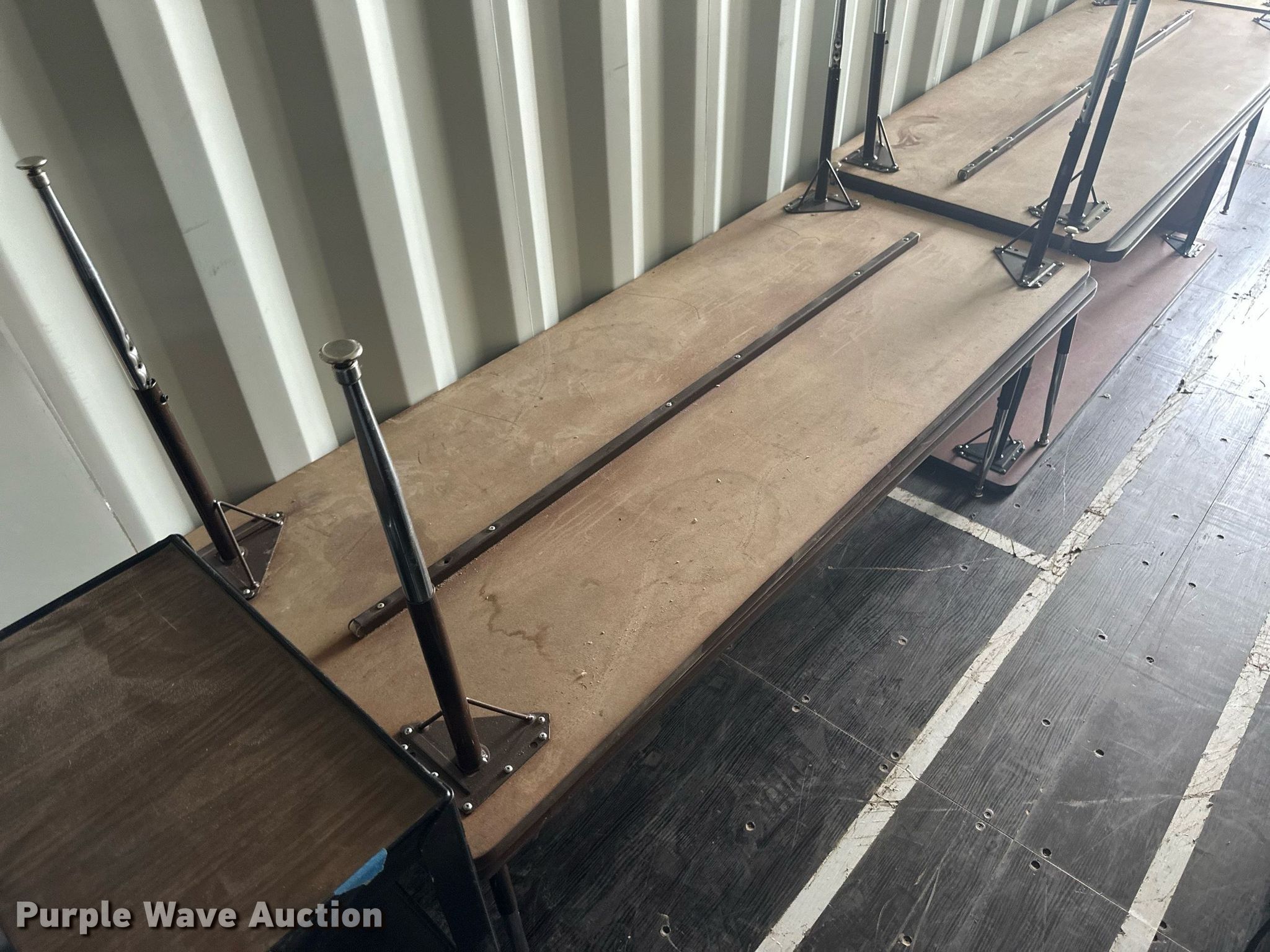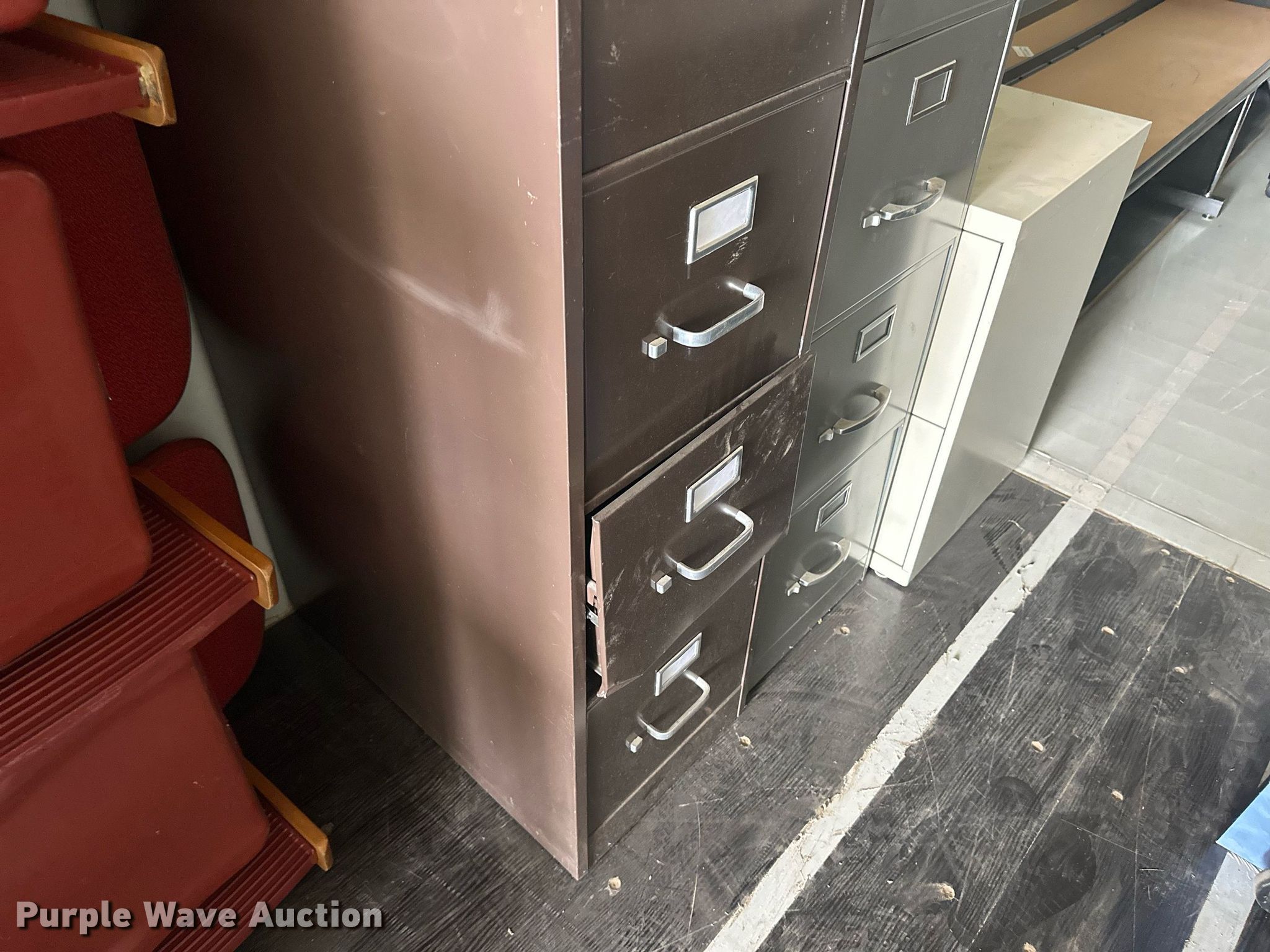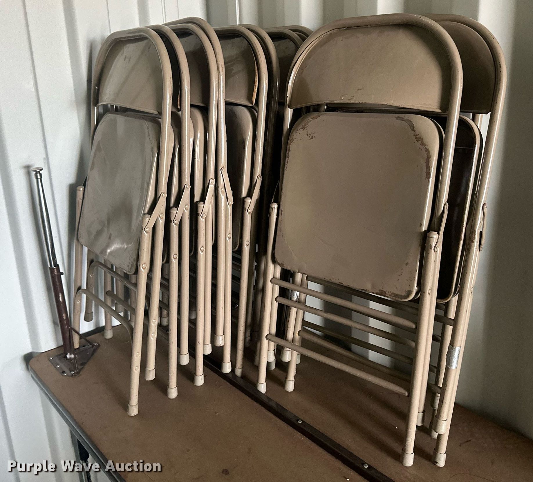 Purple Wave is selling a used Storage or Shipping Container in Kansas. This item is a Storage container with the following: 38' L x 8' W x 9' 6" H, Office furniture, (26) student chairs, (21) desks, (11) folding chairs, (3) filing cabinets, (2) whiteboards, Rolling carts