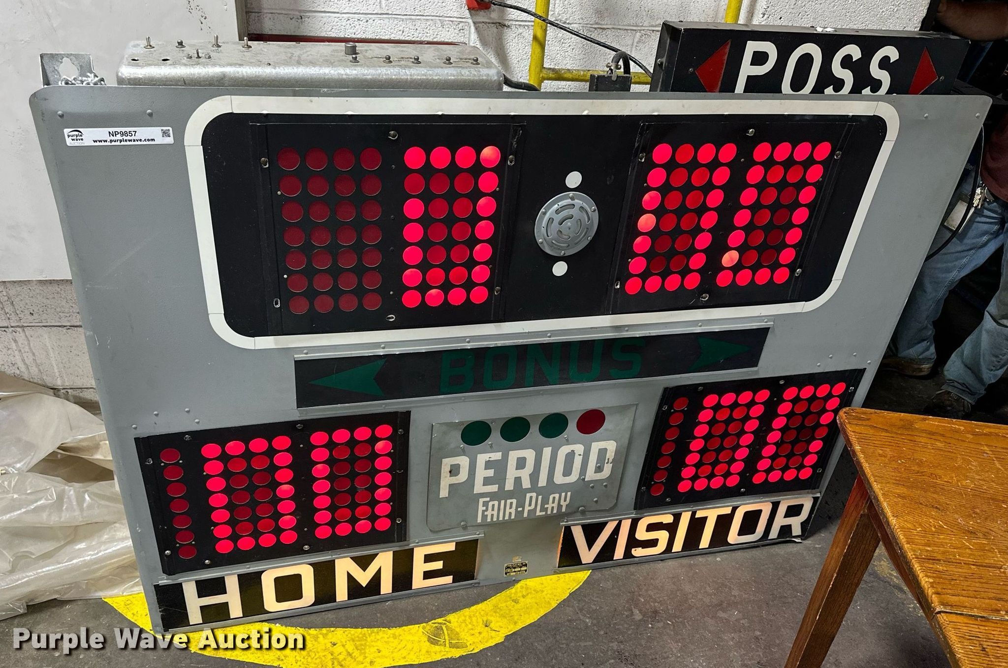 Purple Wave is selling a used Sporting Goods in Kansas. This item is a Fair-Play scoreboard with the following: Control panel, Possession arrow bar, Unknown operating condition of control panel, Unknown operating condition of possession bar