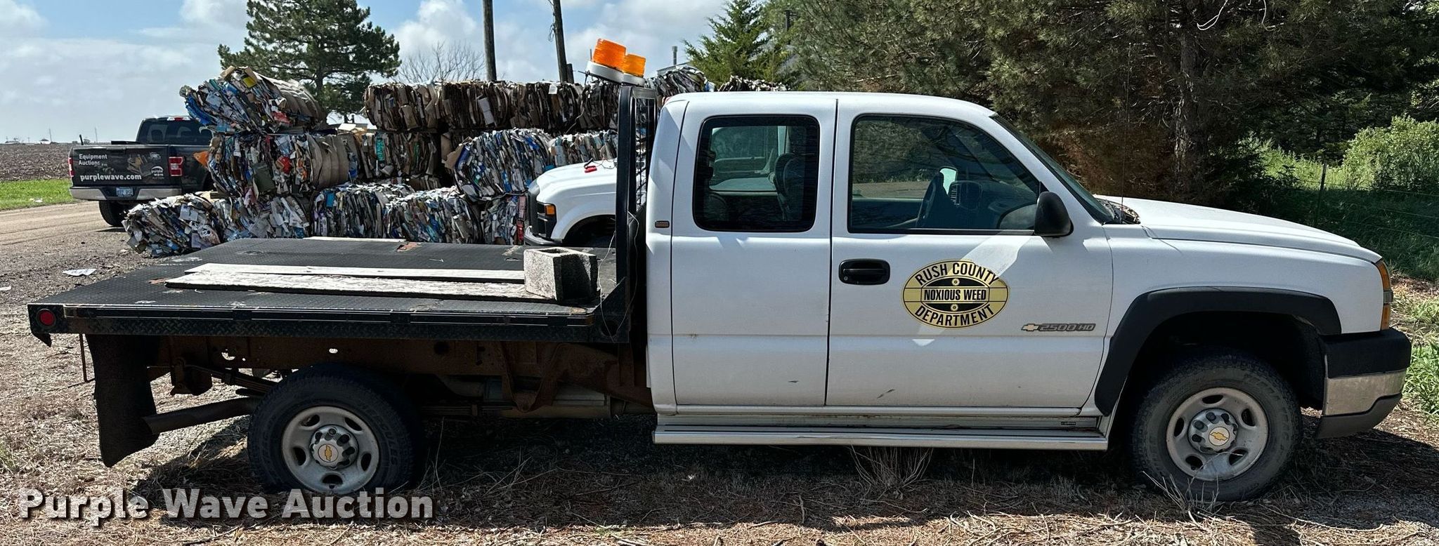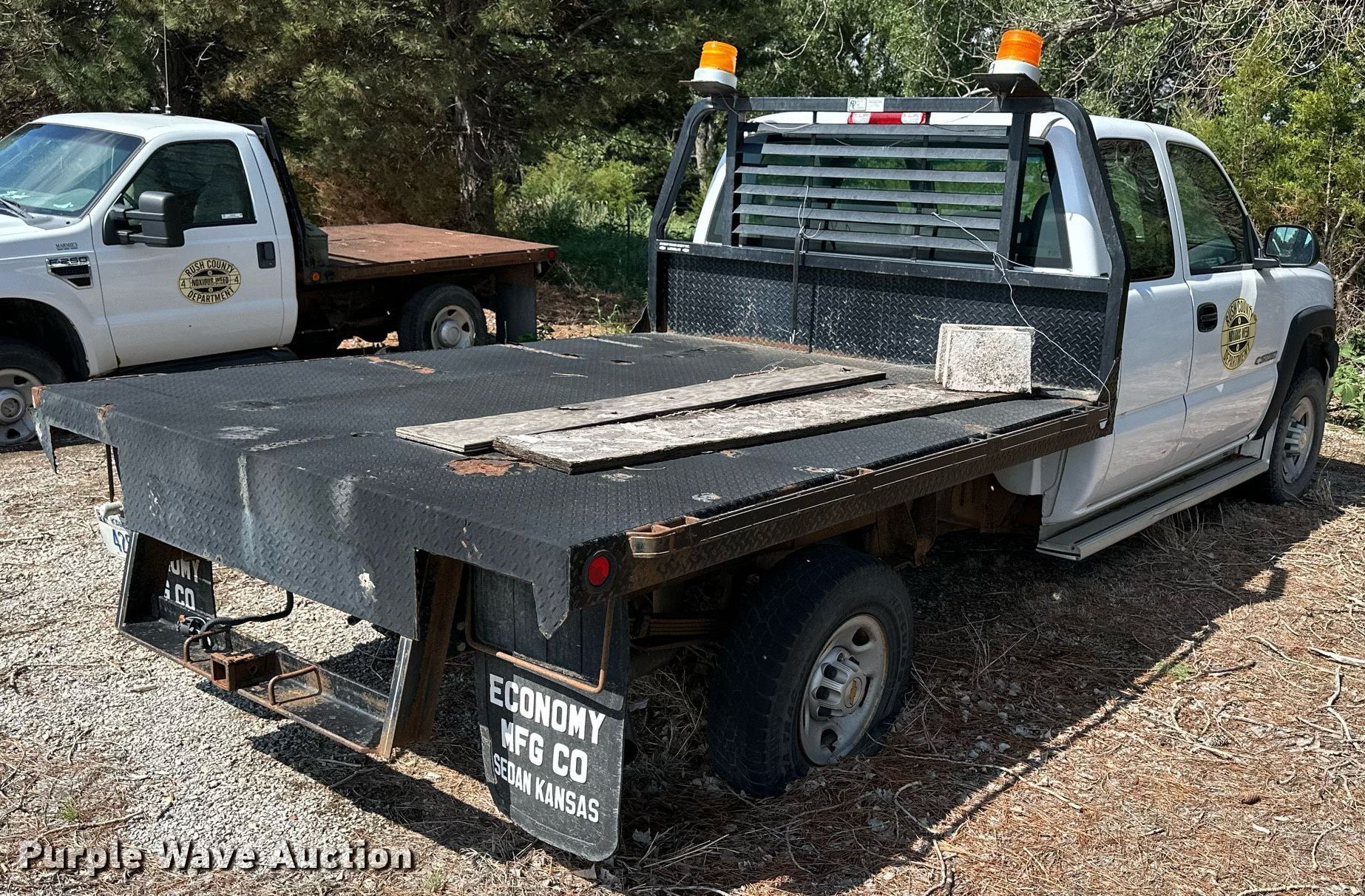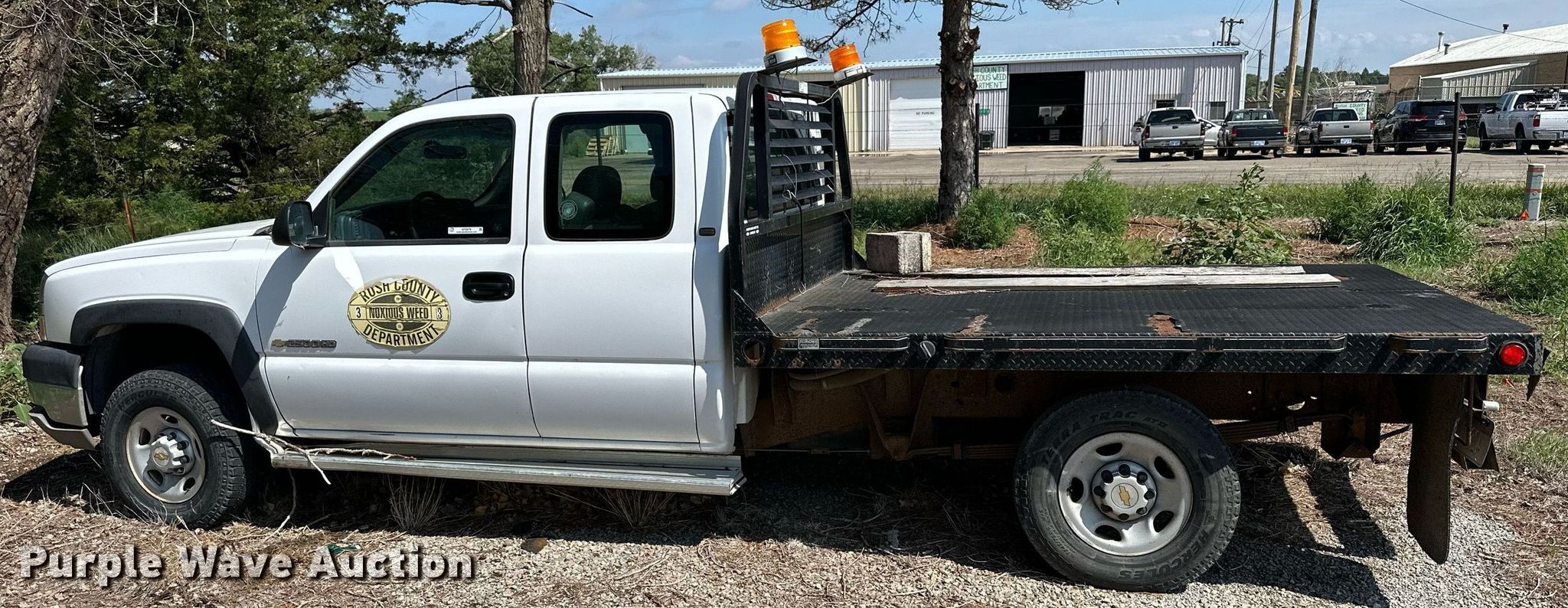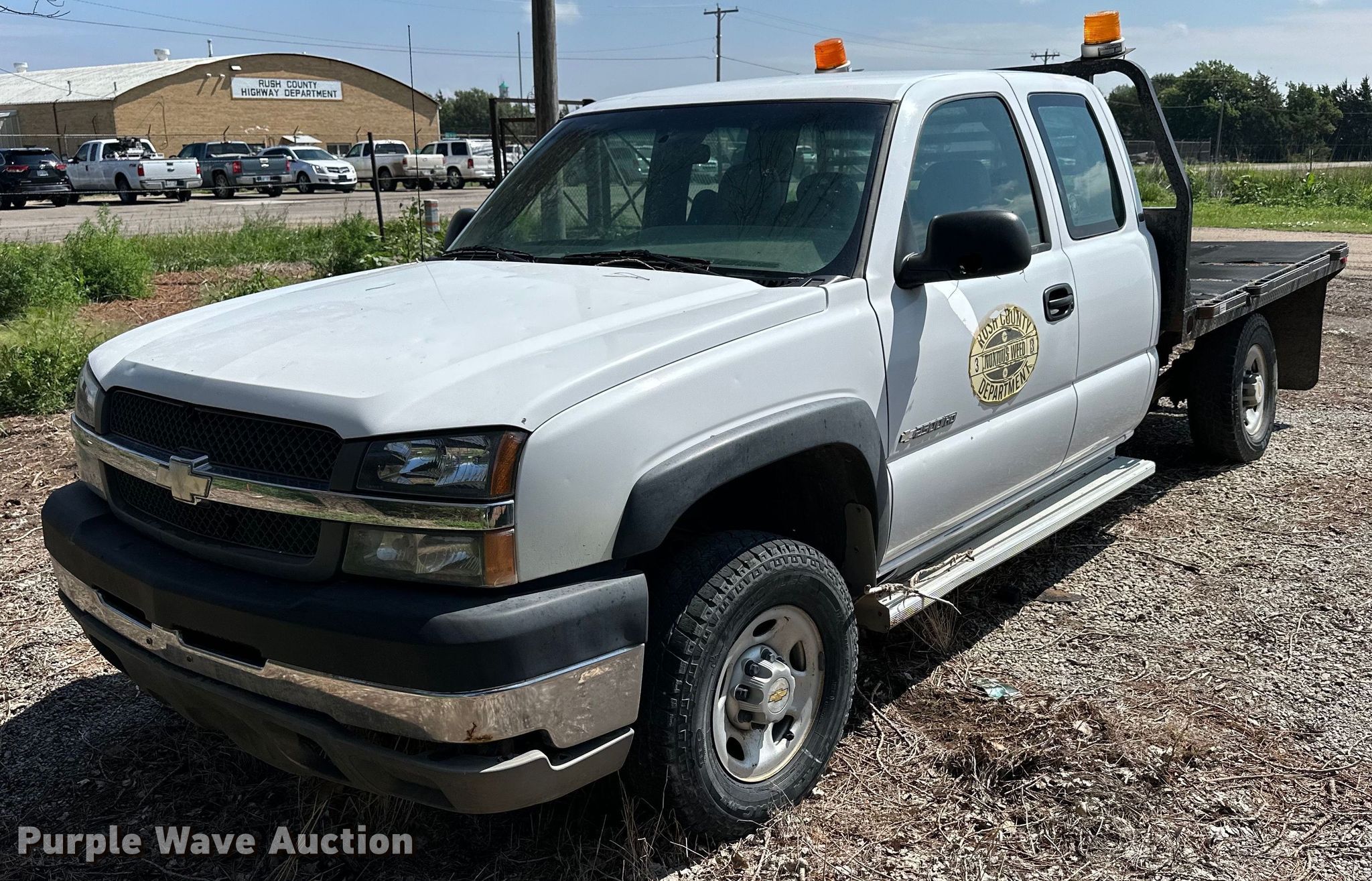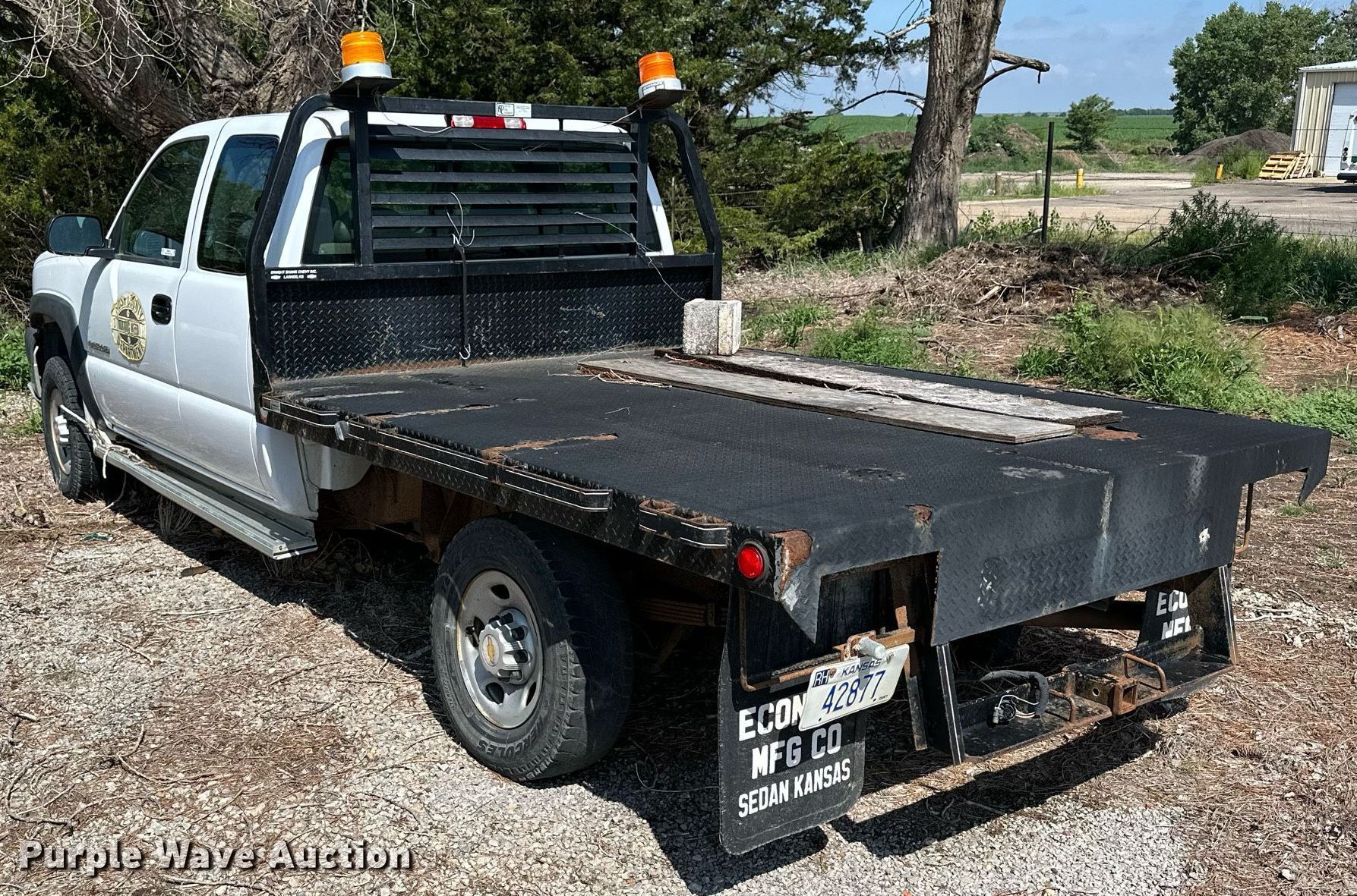 2003 Chevrolet Silverado 2500HD Ext. Cab flatbed pickup truck. Miles: Unknown, VIN: 1GBHK29UX3E286336. Engine Displacement: 6.0L V8 OHV, Cylinders: 8, Fuel type: Gas. Transmission Manual, Speed: 5, Four wheel drive. Interior AC, Heat, Cruise control. Features Flatbed 102' L x 83" W. Tires Front: 245/75R16, Rear: 245/75R15. Notes Dead battery, Flat tires, Non-operational unit. Kansas title. Mileage has not been verified. Odometer discrepancy will be marked on the title. Title distribution may be delayed up to 30 days from verification of funds. Rush County, KS. 802 W 1st St. La Crosse, KS 67548