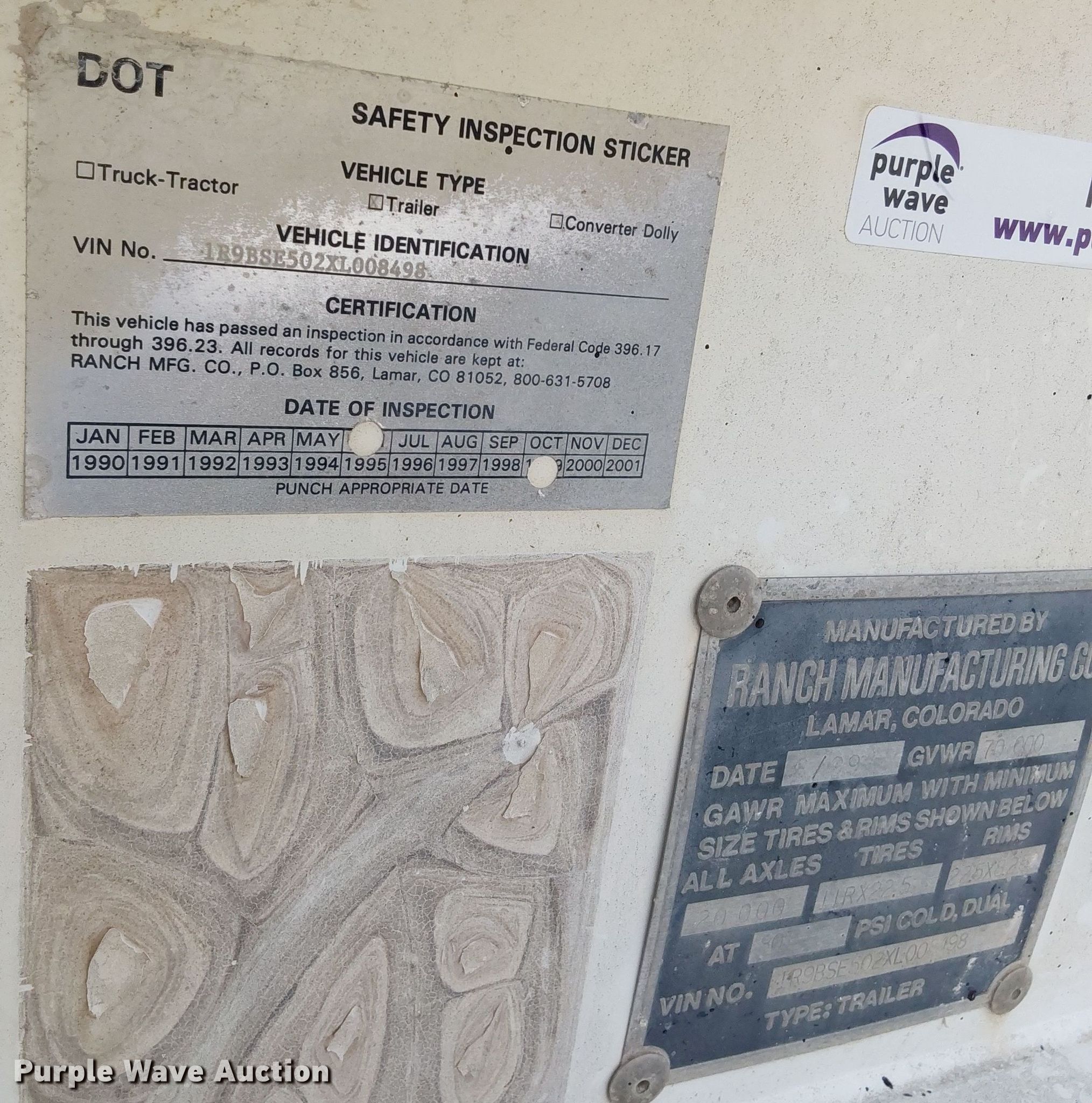 Purple Wave is selling a used Bottom Dump Trailer in Kansas. This item is a 1999 Ranch Manufacturing Co bottom dump trailer with the following: VIN: 1R9BSE502XL008498