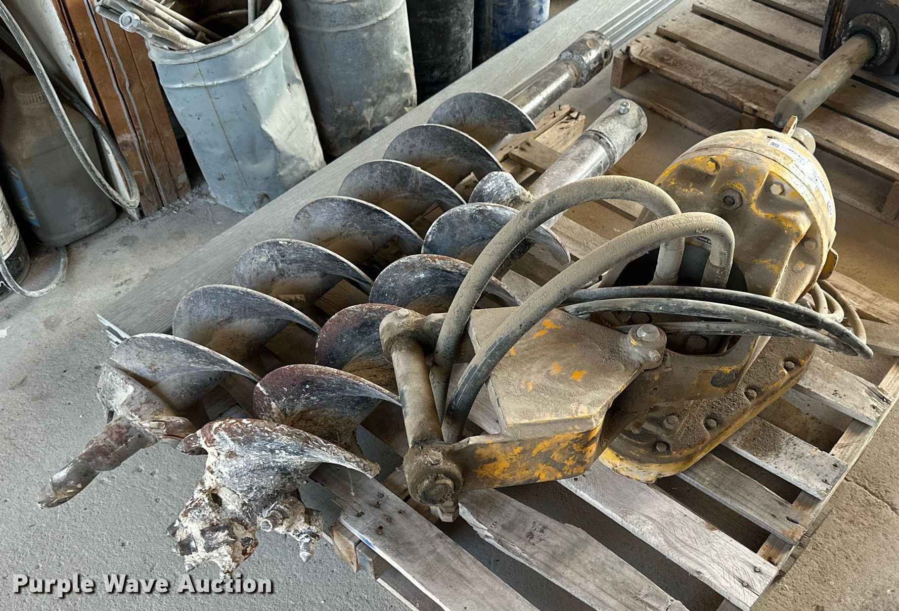 Danuser Digger H8200 auger head. Serial: 5004159, (2) bits 4' L x 10" diameter, 5' L x 10" diameter. Notes Removed from Ford New Holland backhoe. Rooks County Highway Department. 303 S Walnut. Stockton, KS 67669