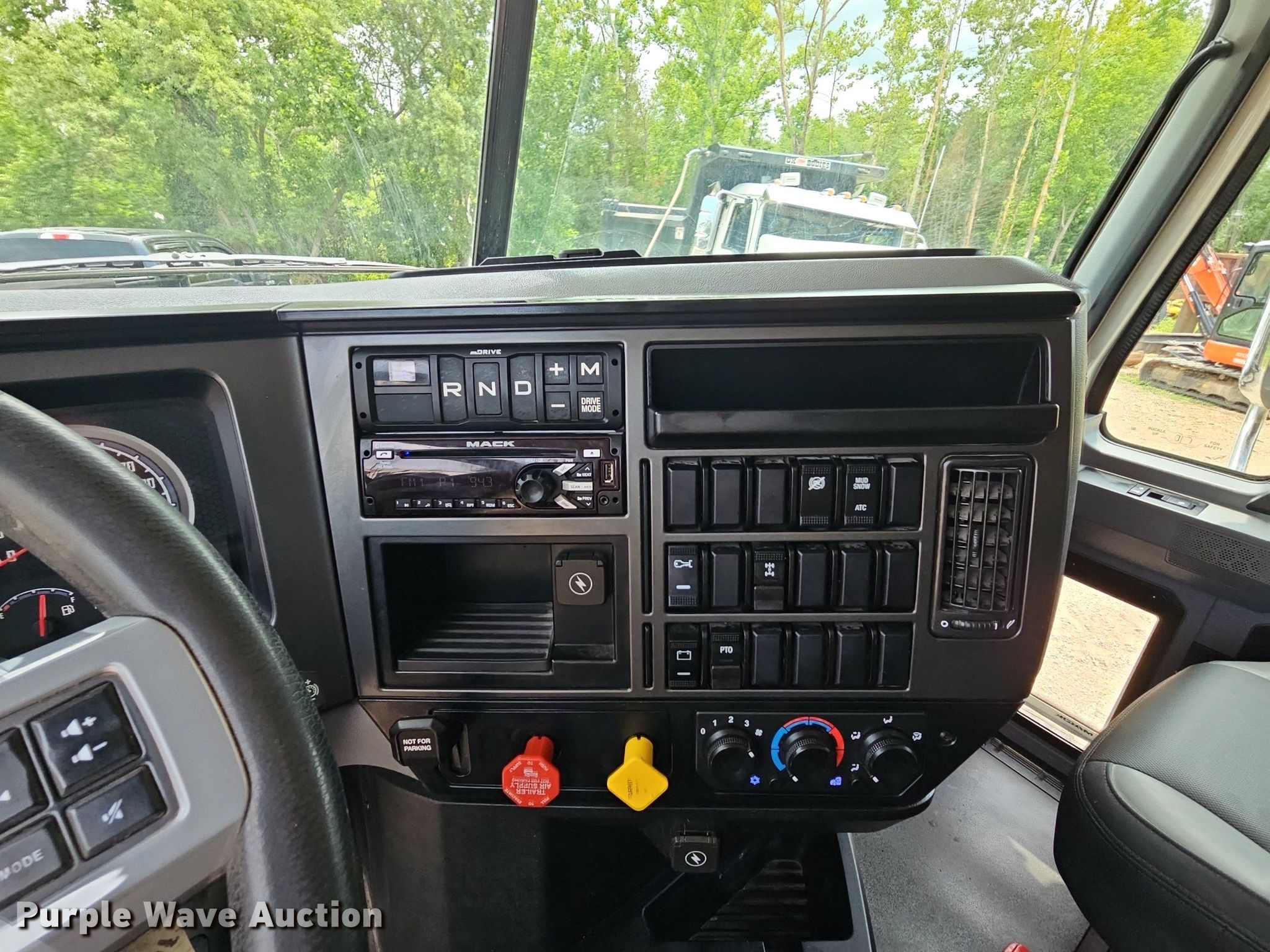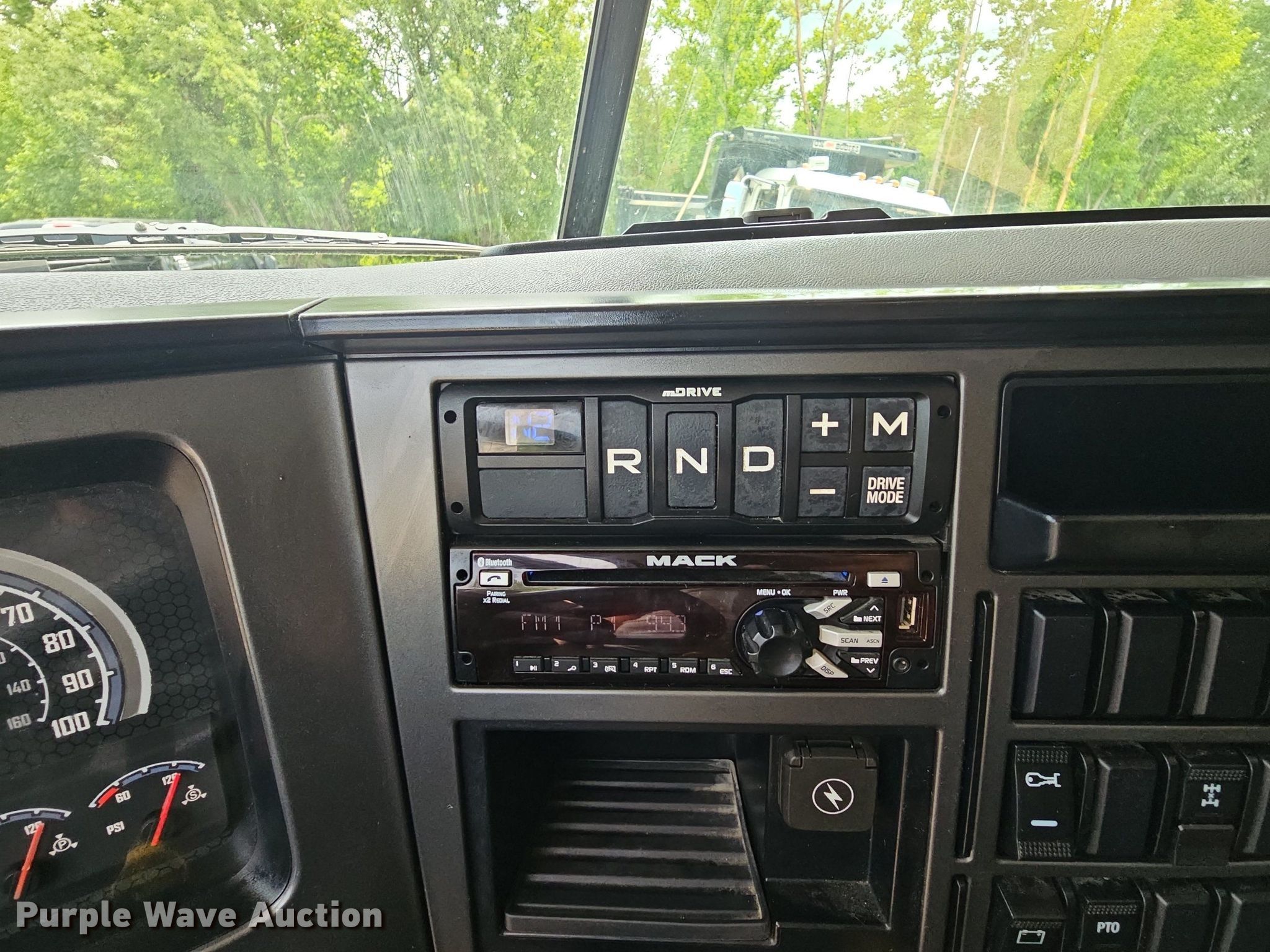 2021 Mack Granite dump truck. Miles: 73,800 on odometer, Miles or hours may vary, unit still in use, VIN: 1M2GR2GC9MM021861. Engine Mack MP7-425M, Serial: 623808, Displacement: 10.8L, Cylinders: 6, Fuel type: Diesel, Engine brake. Transmission M-Drive HD, Automatic. Chassis Axles: Tandem, Differential lock: Inter-axle, Suspension: Camelback, Brakes: Air, PTO, GVWR: 62,000 lbs FAWR: 18,000 lbs, IAWR: 22,000 lbs, RAWR: 22,000 lbs. Interior AC, Heat, Heated mirrors, Power windows, Cruise control. Features Dump bed Ox Bodies Inc 1677, Capacity: 17 cu.yd., 16' L x 96" W, Side height: 48", Bed type: Steel, Roll tarp, Ram: Single , High lift end gate: Air operated. Tires Front: 425/65R22.5, Rear: 11R24.5. Notes Radios not included, Roll tarp damaged, replacement roll tarp included. Missouri title. Title has a lien that will be released following the close of the auction. Title distribution may be delayed up to 30 days from verification of funds. Miller County, MO. 117 MO-17. Tuscumbia, MO 65082