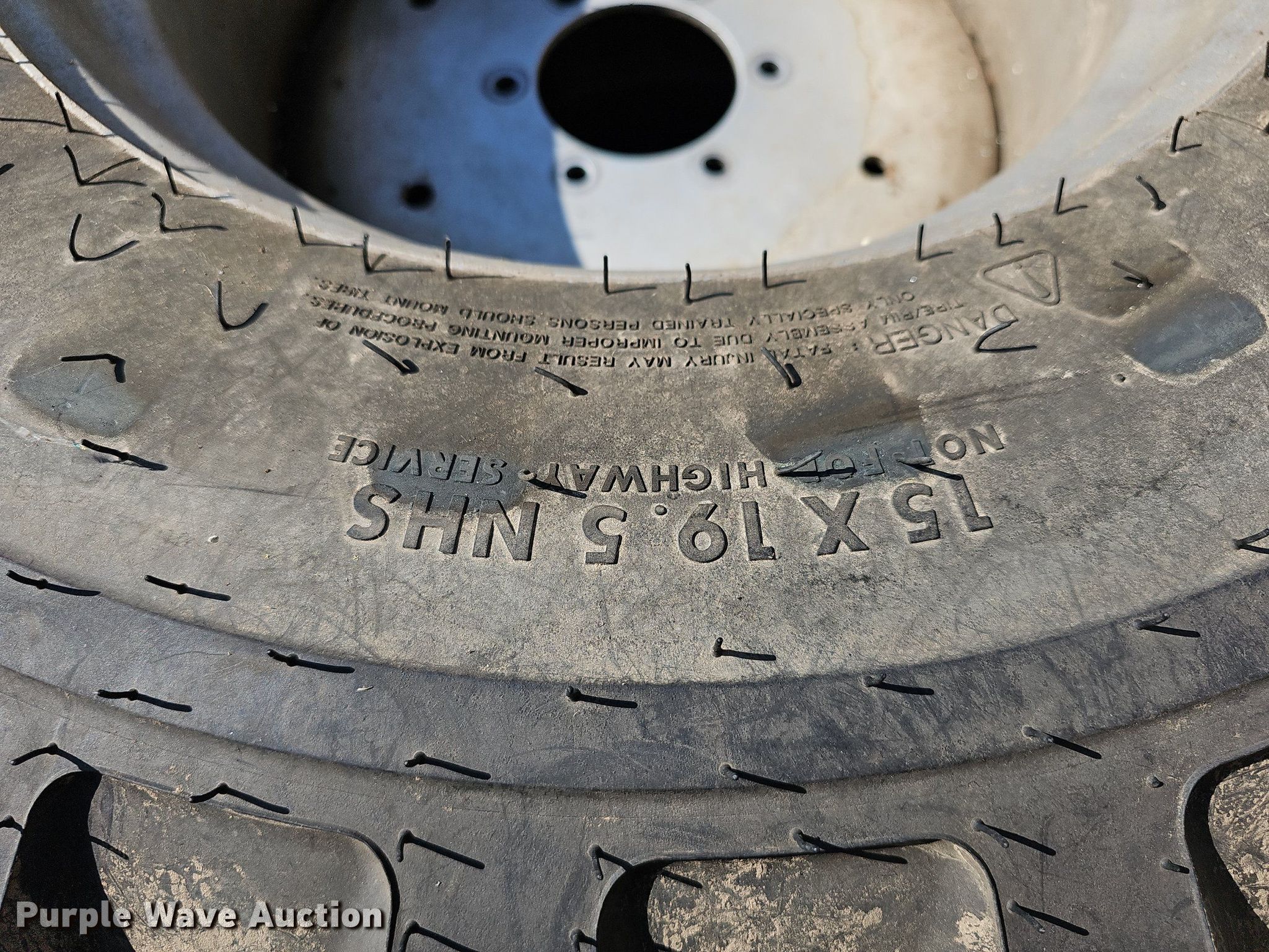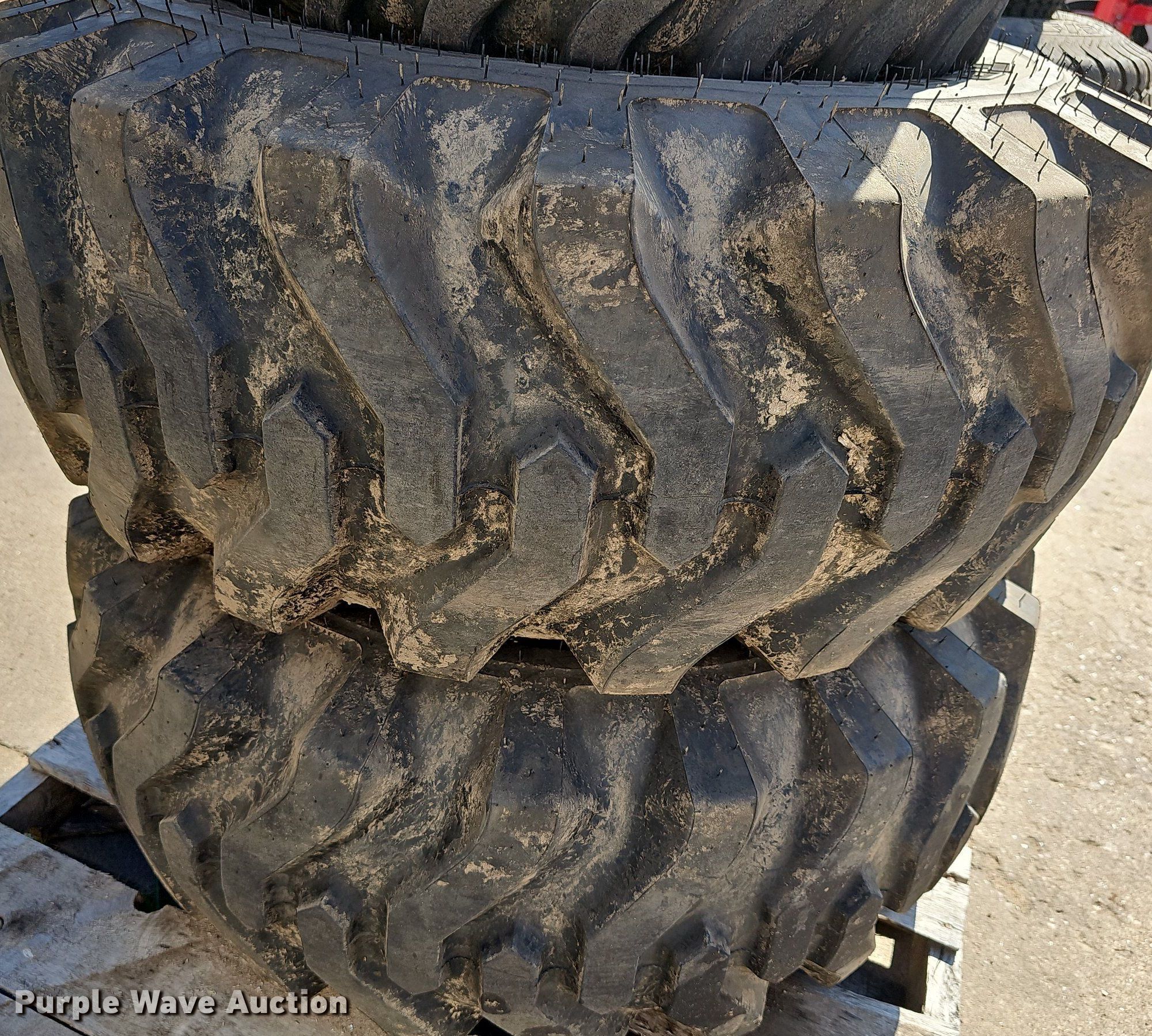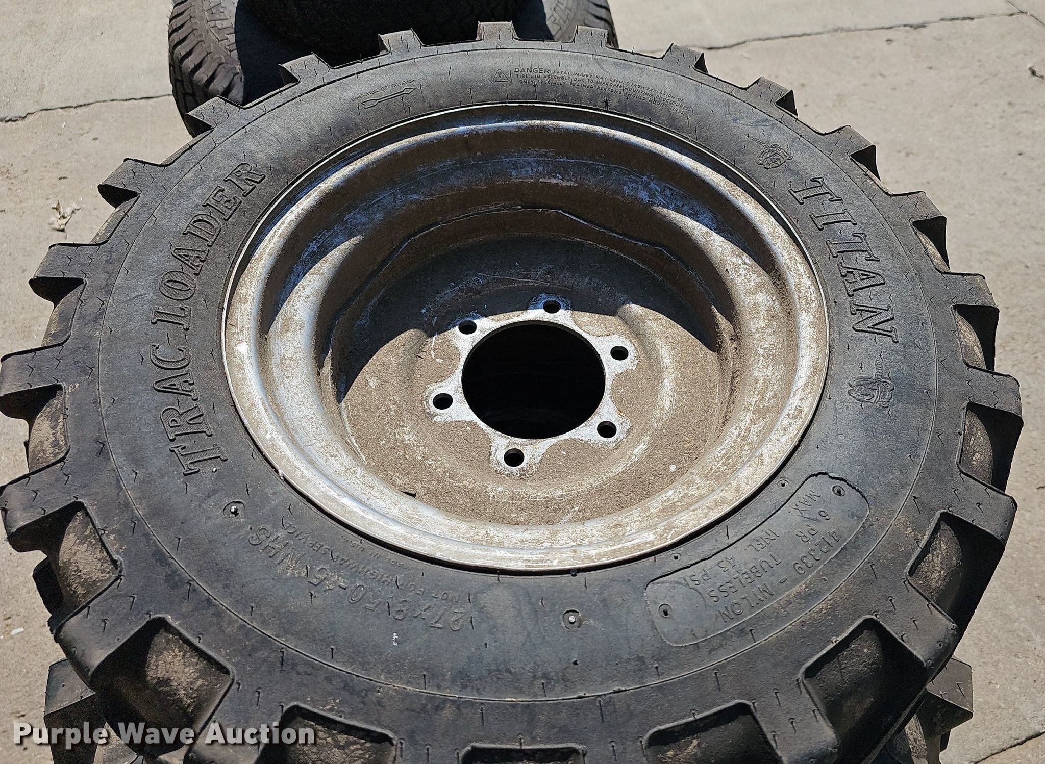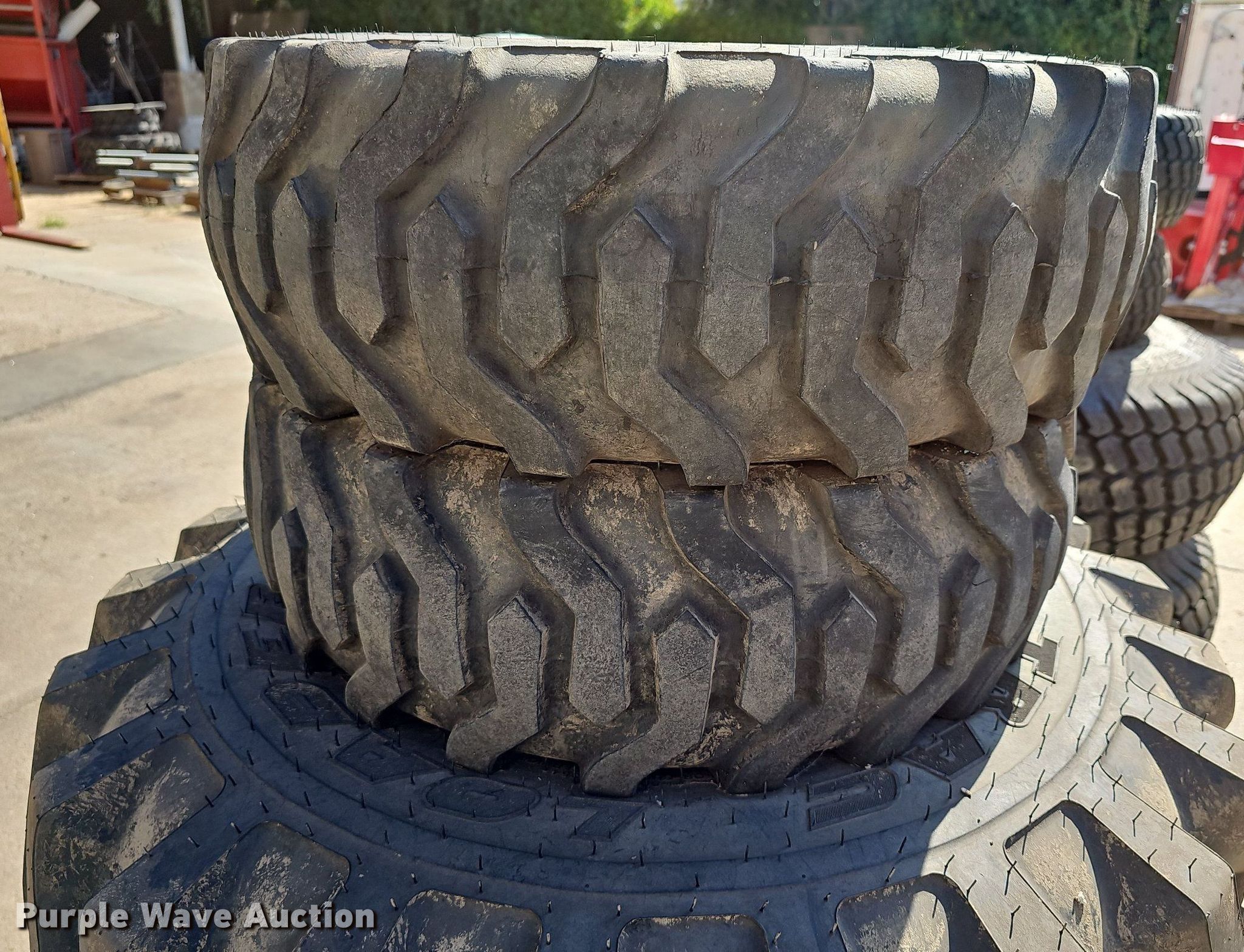 Purple Wave is selling a used Industrial Tires or Tracks in Kansas. This item is a (8) Titan tractor wheels and tires with the following: (2) 24x8.50-14, (2) 13.6-16, (2) 27x8.59-15, (2) 15x19.5