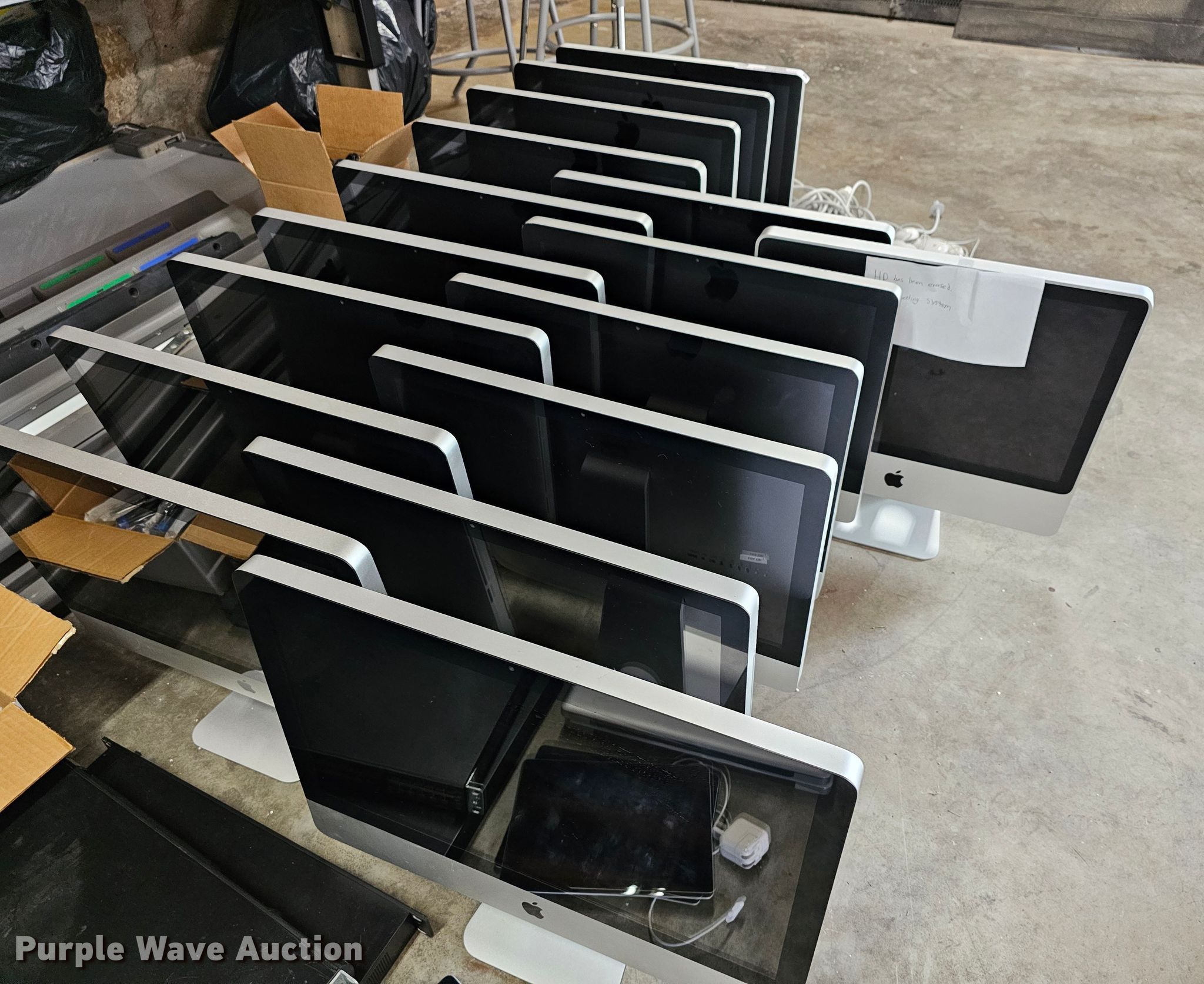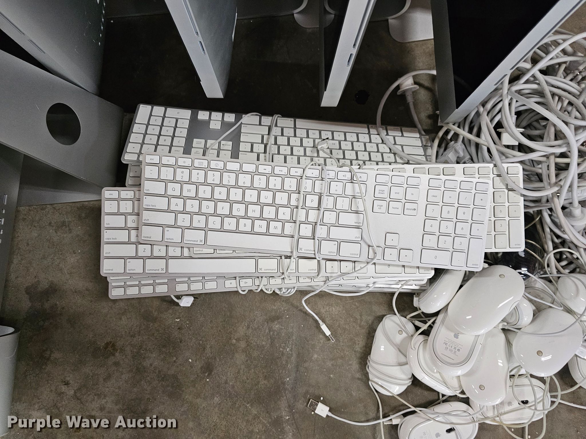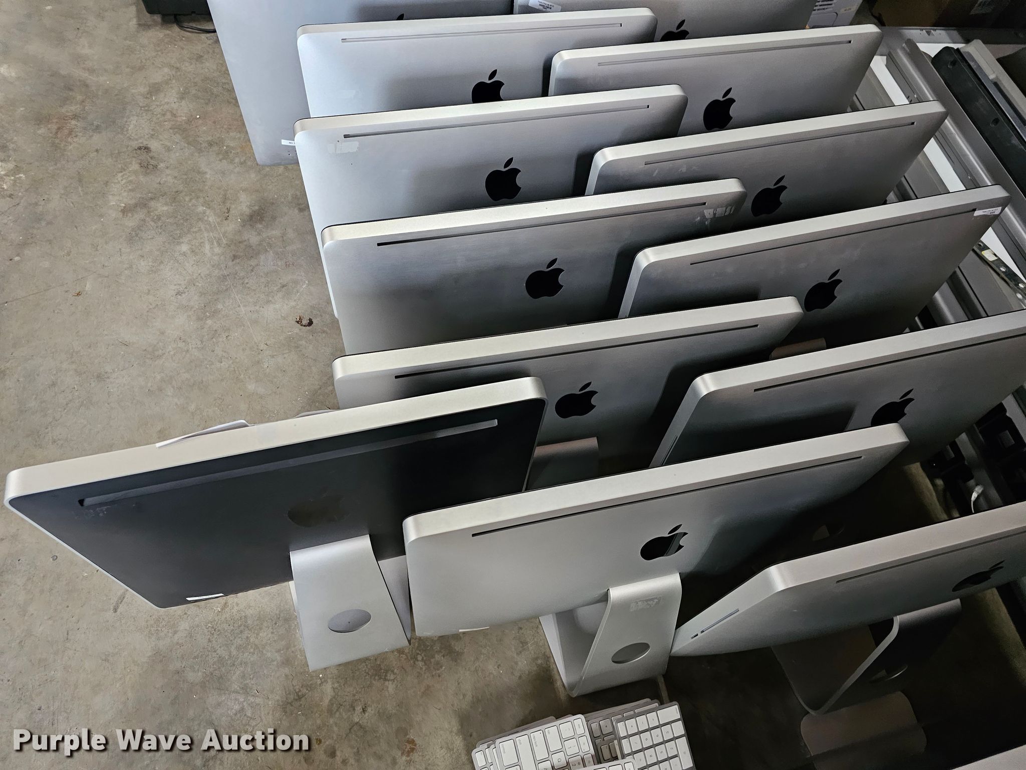 Purple Wave is selling a used Electronics in Kansas. This item is a Electronics with the following: (16) Apple monitors, Keyboards, Cables, Mice