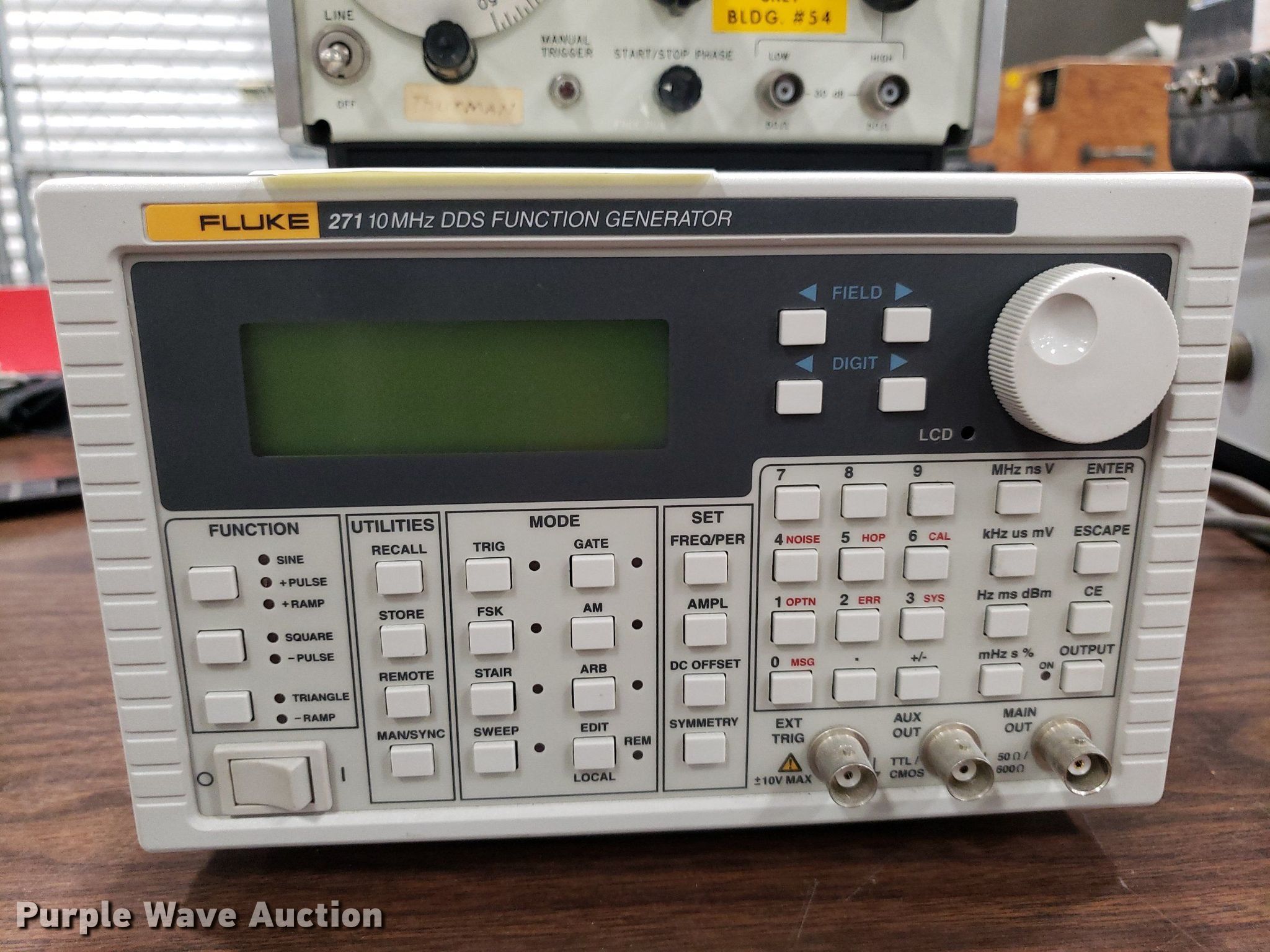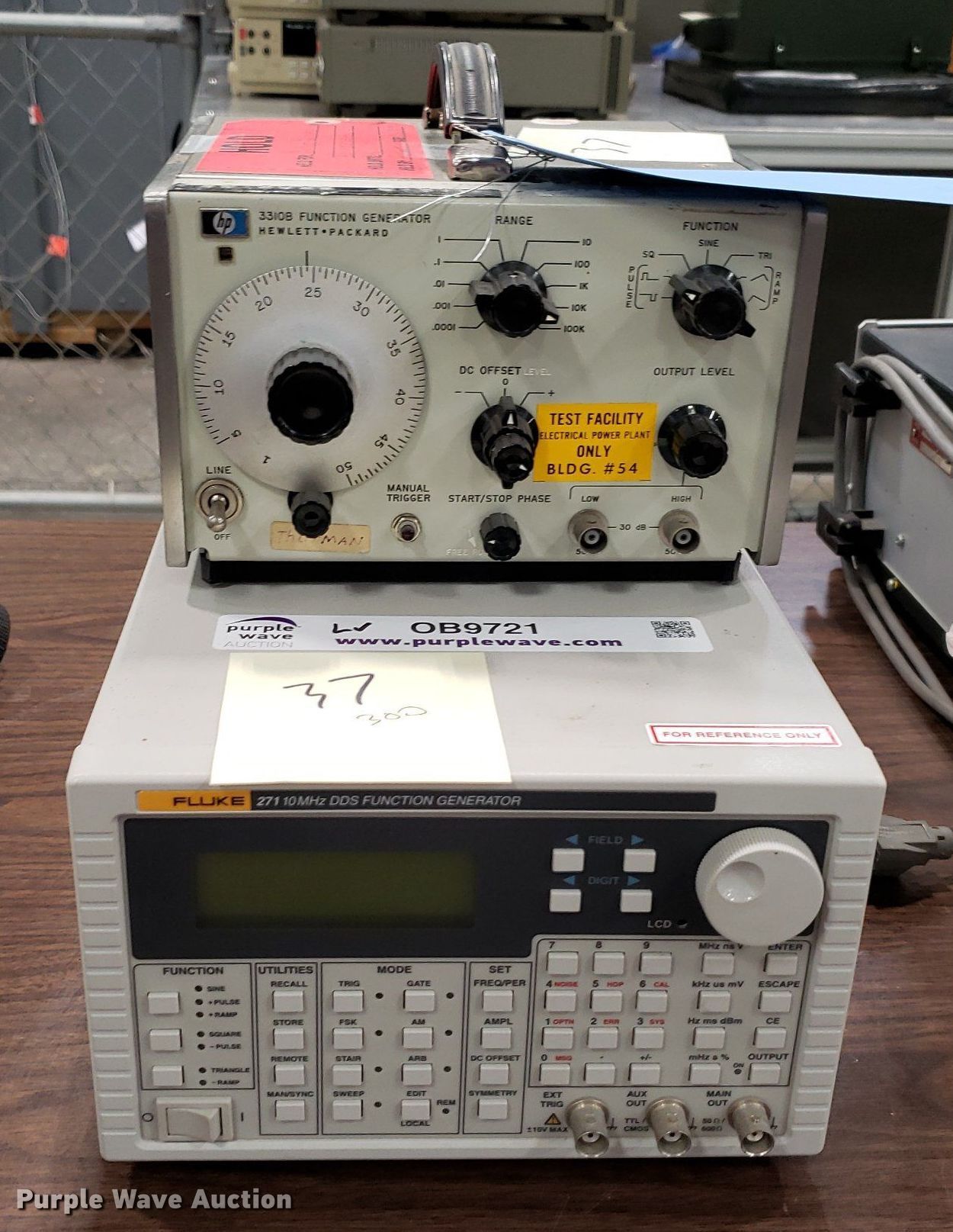 Purple Wave is selling a used Electronics in Kansas. This item is a Electronics with the following: Unit #: 37, Fluke 271 DDS 2423224 function generator, Serial: 9305141, Hewlett-Packard 3310B function generator, Serial: 49-2039