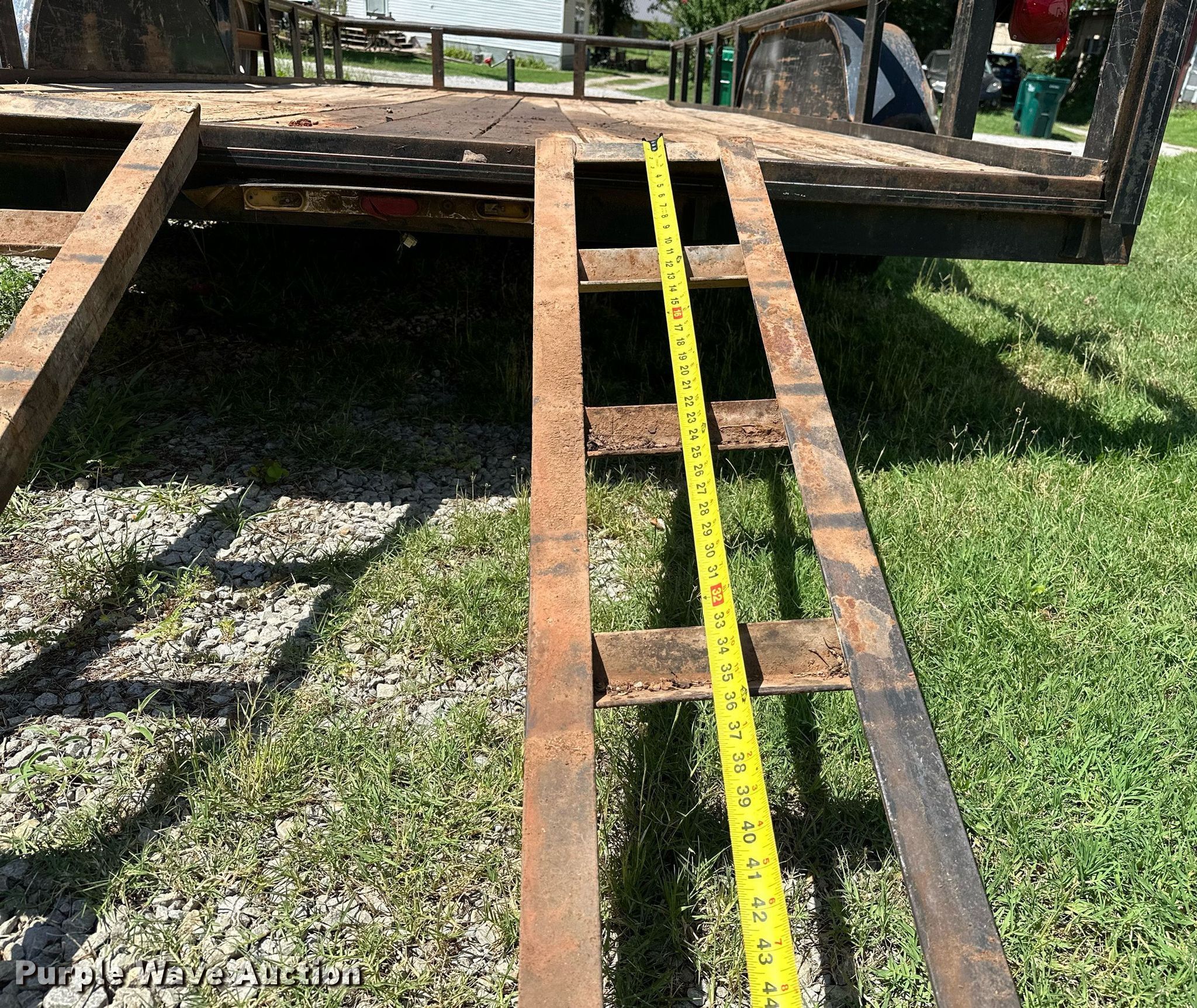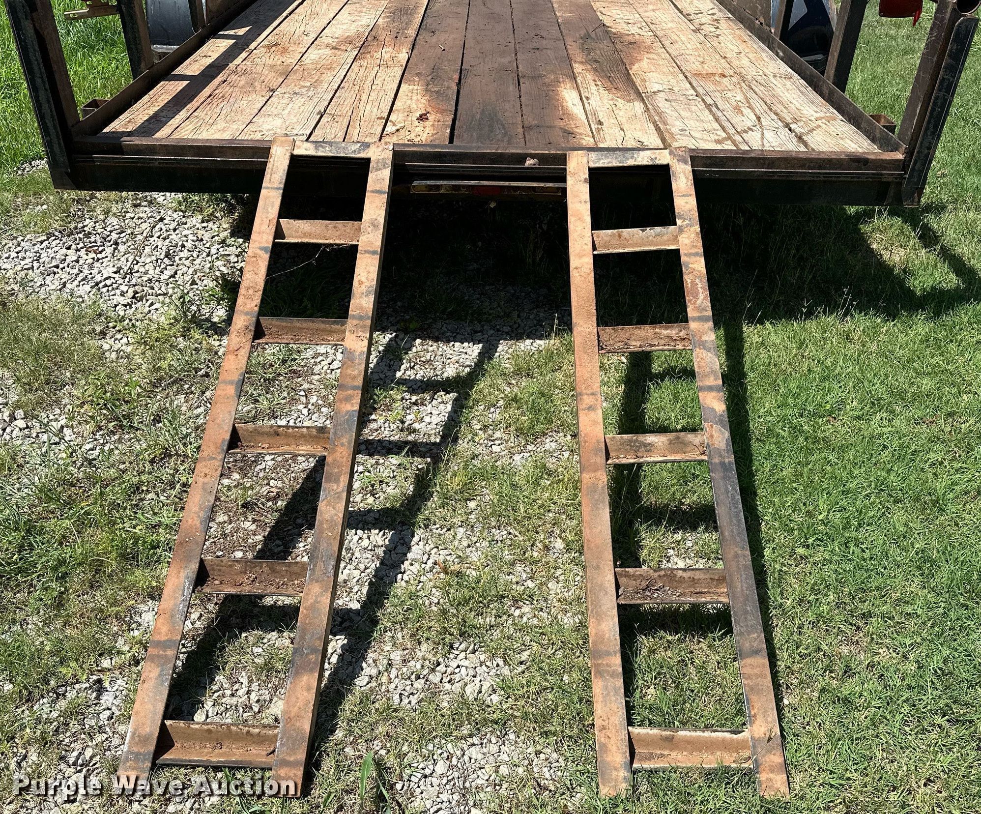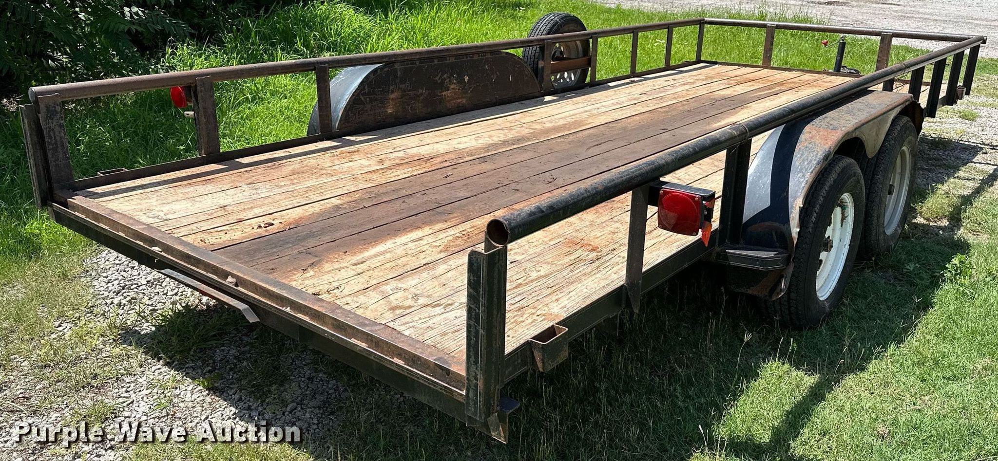 Purple Wave is selling a used Car or Utility Trailer in Oklahoma. This item is a Shop built utility trailer with the following: Overall: 21' 8" L x 102" W, Deck: 18' 2" L x 82" W, Ramps: Manual, Length: 60"